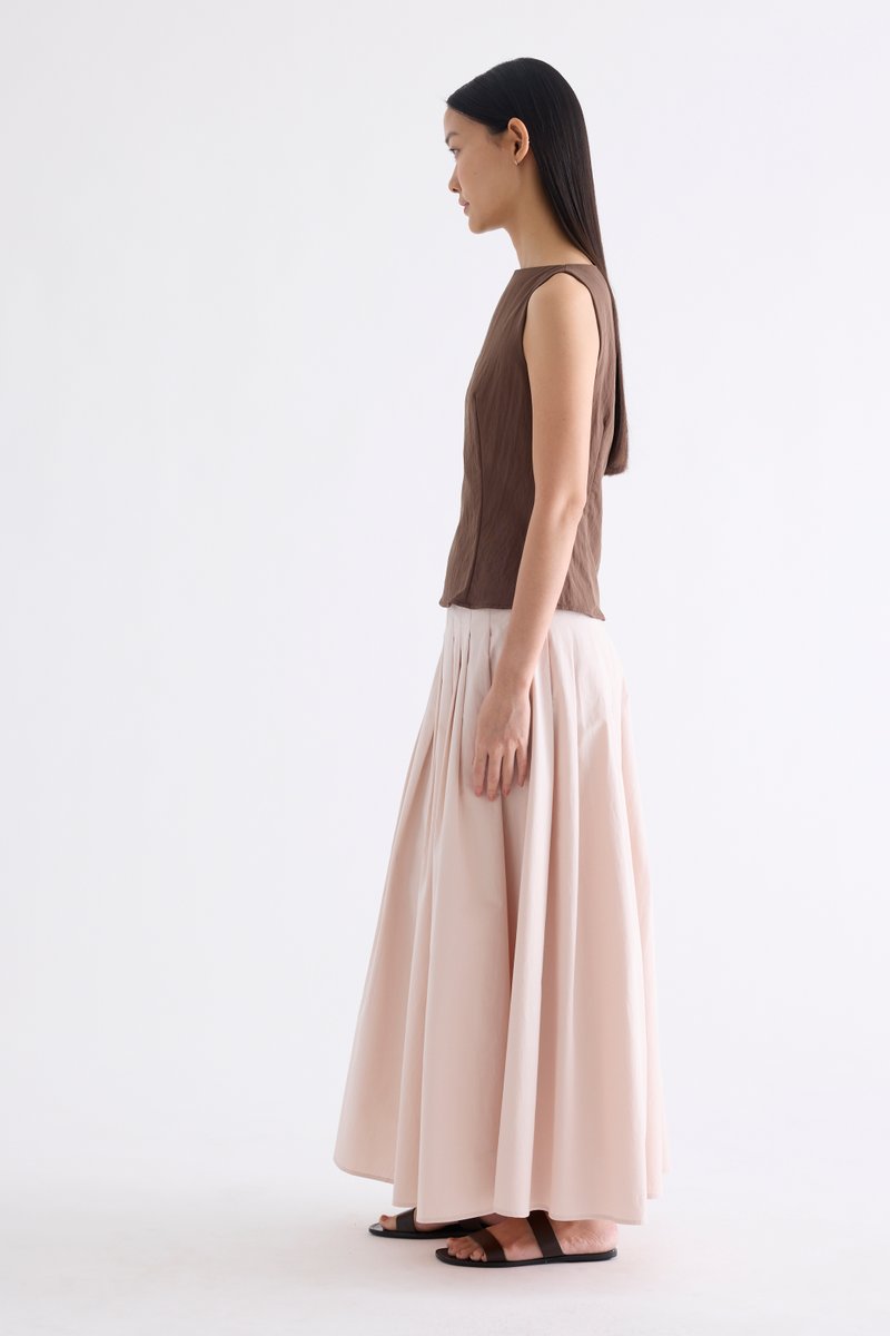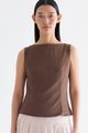 With an element of surprise. Made from smooth and softly structured fabric, this sleeveless tank features a boat neckline, panelled construction and buttoned keyhole opening at the back. Worn in a slim fit with a side zip closure.