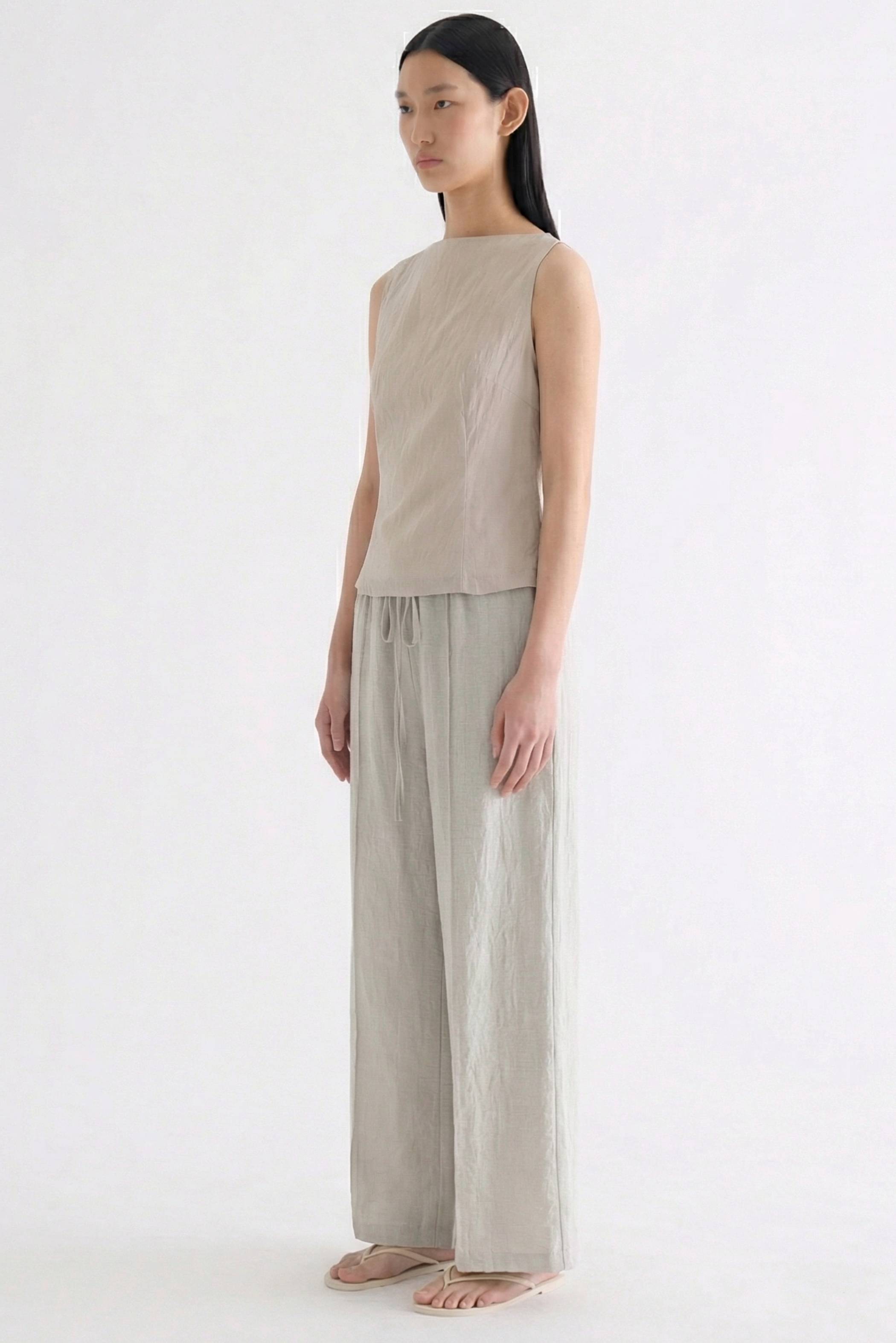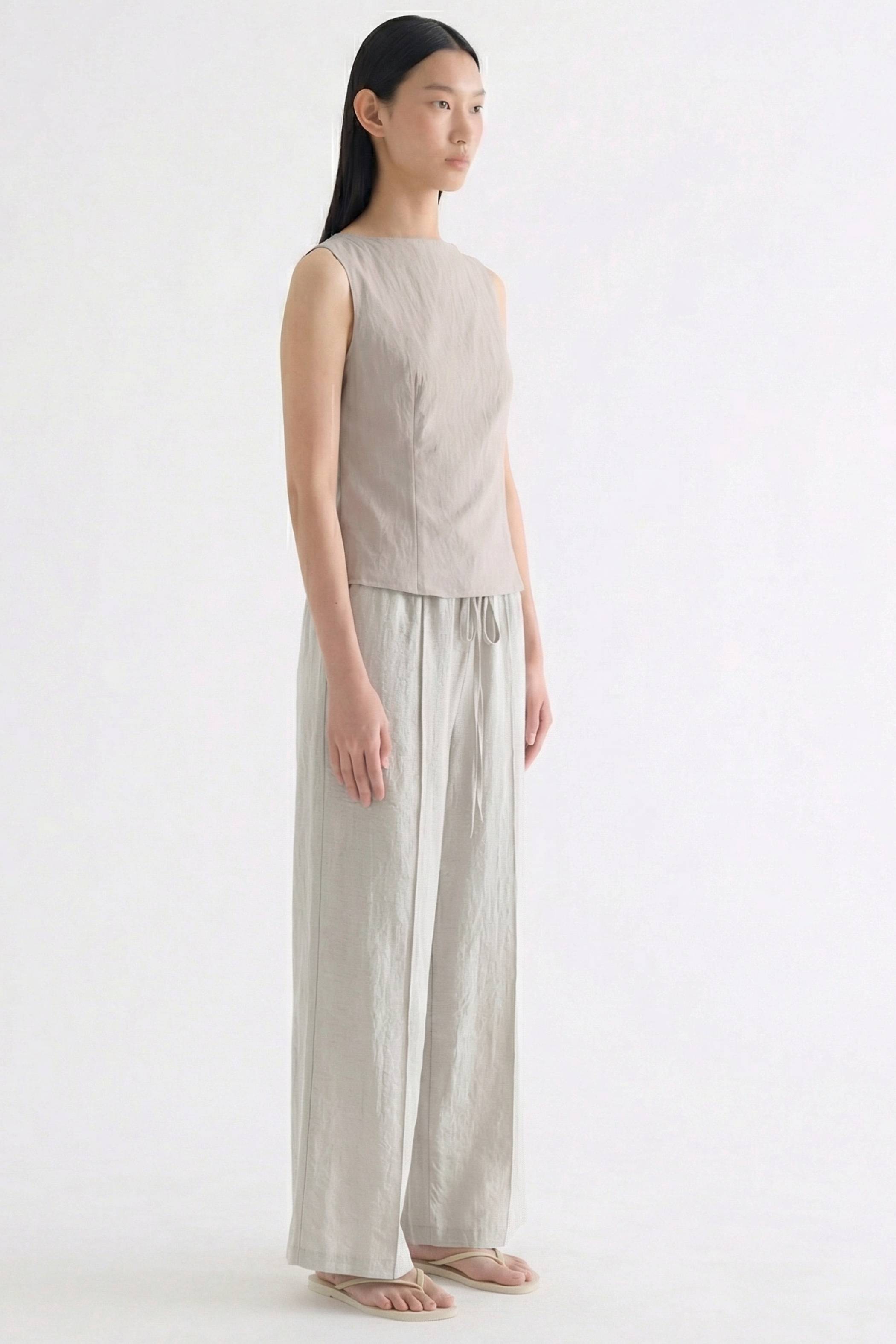 With an element of surprise. Made from smooth and softly structured fabric, this sleeveless tank features a boat neckline, panelled construction and buttoned keyhole opening at the back. Worn in a slim fit with a side zip closure.