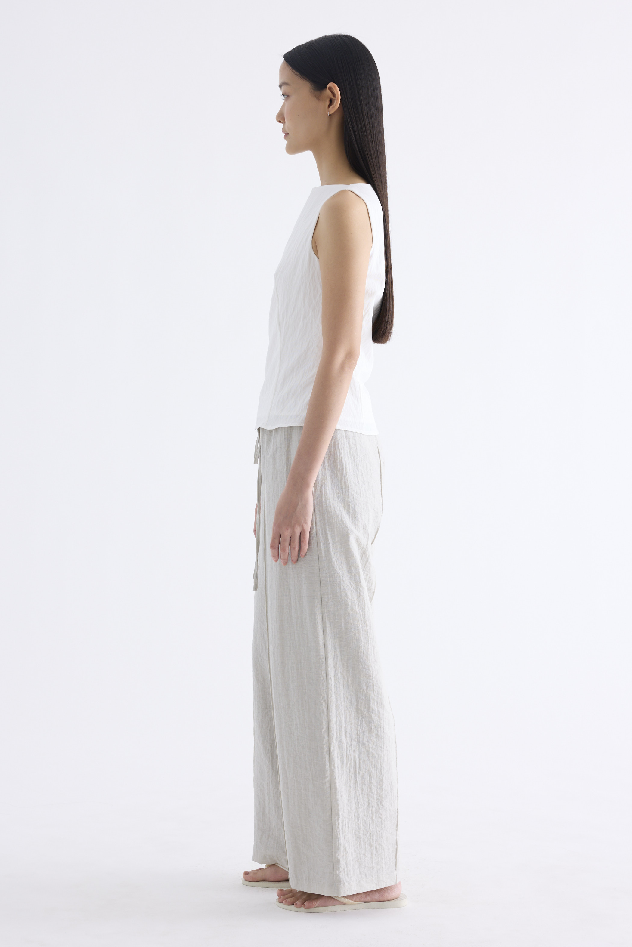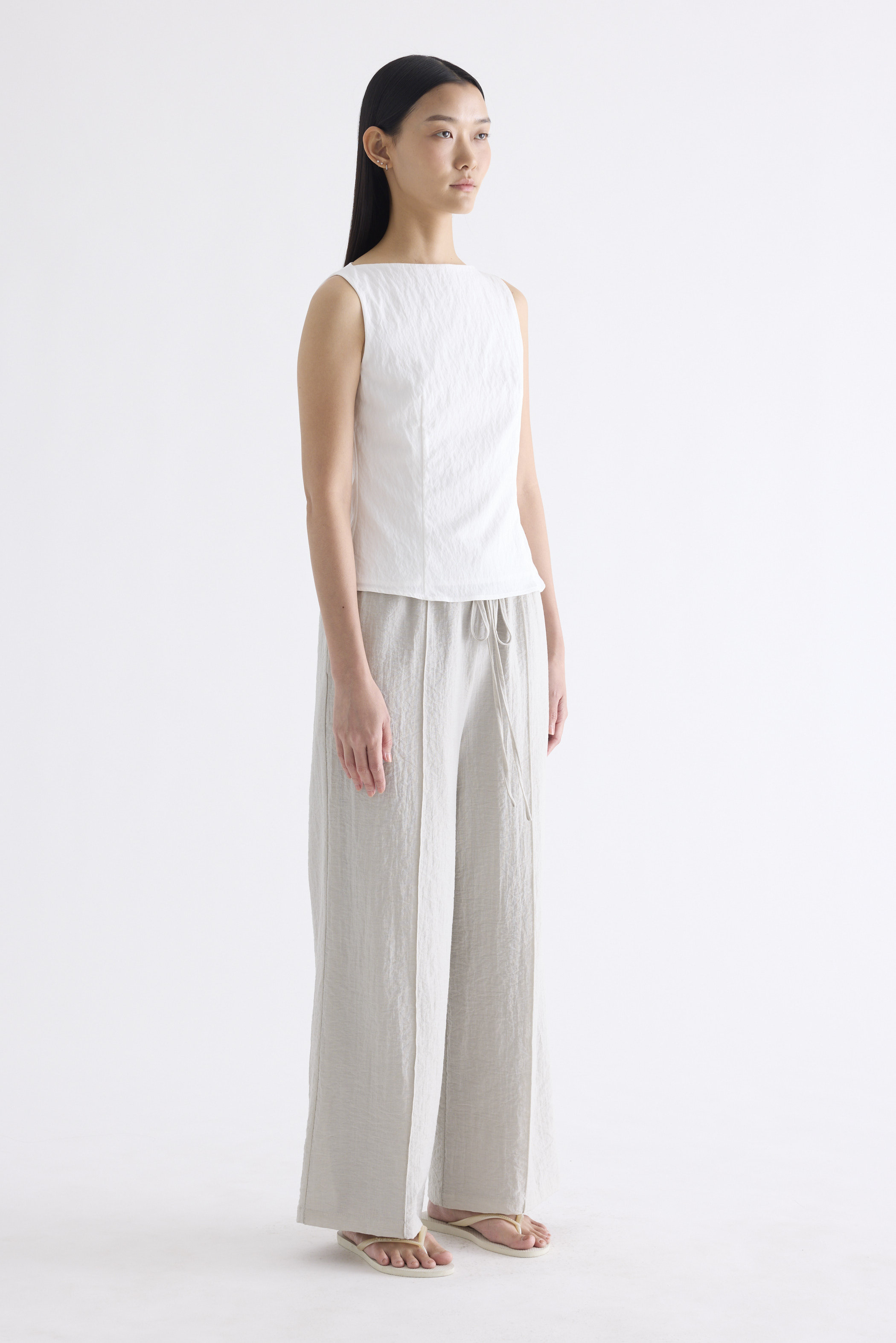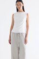 With an element of surprise. Made from smooth and softly structured fabric, this sleeveless tank features a boat neckline, panelled construction and buttoned keyhole opening at the back. Worn in a slim fit with a side zip closure.