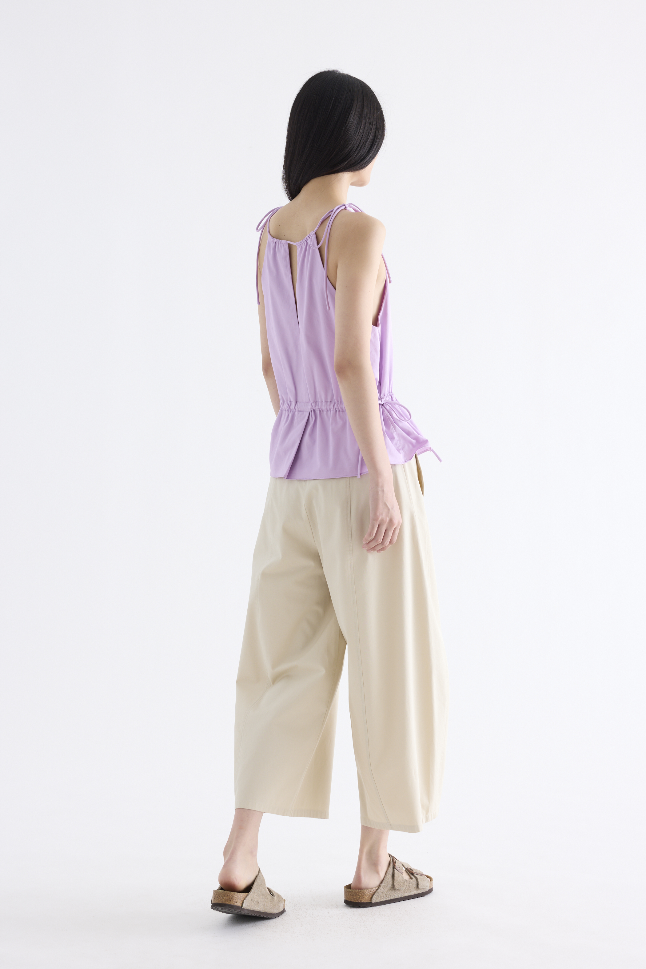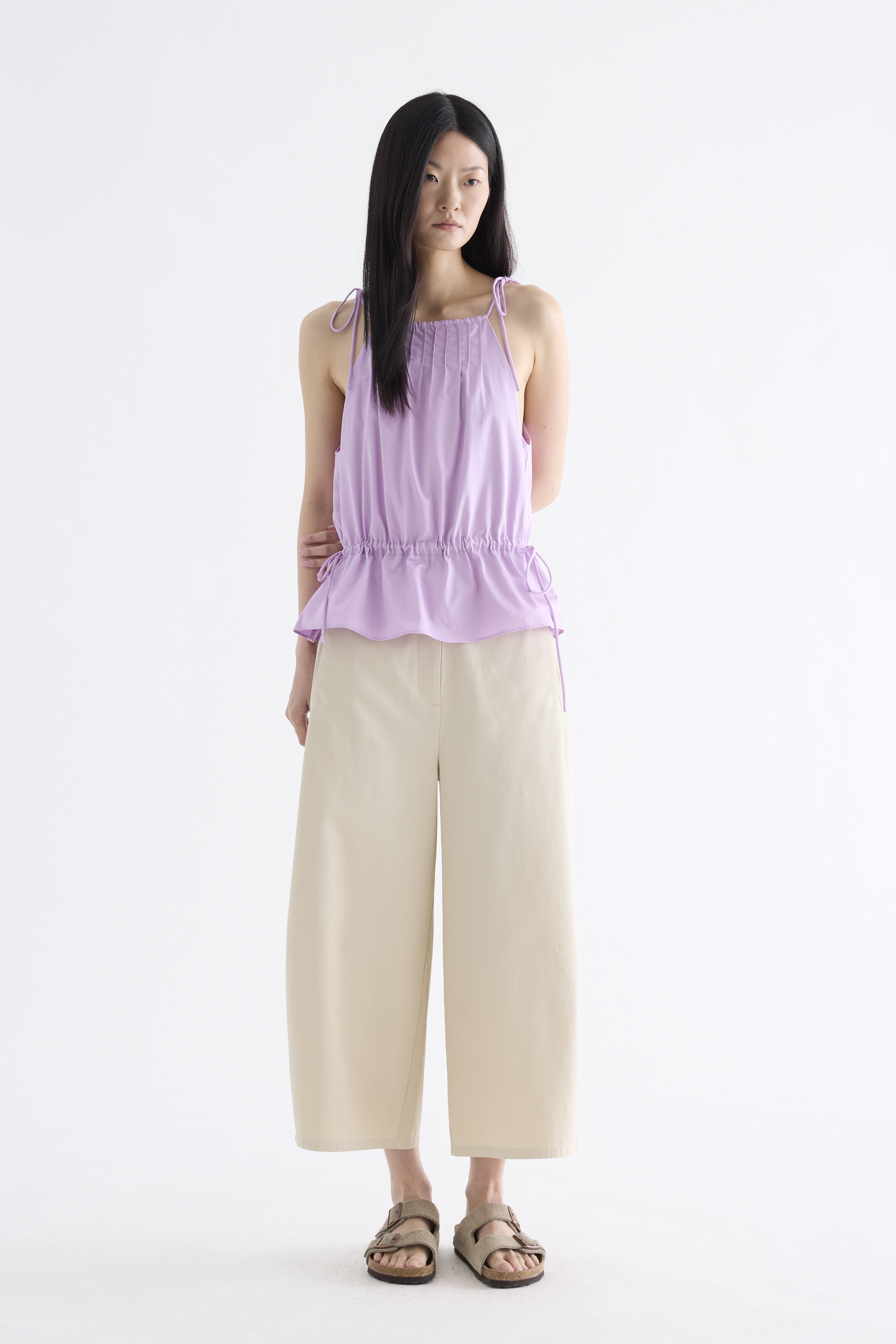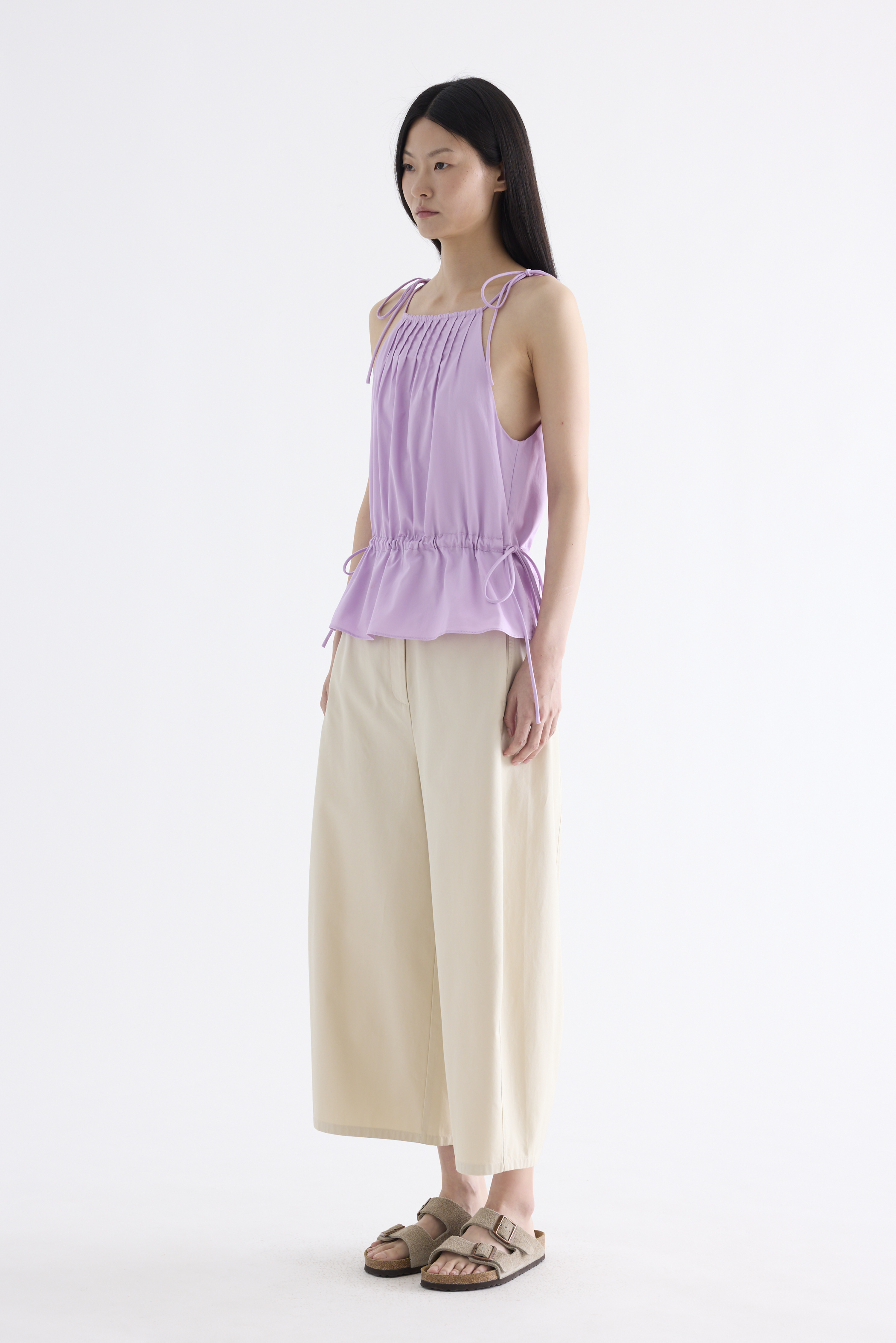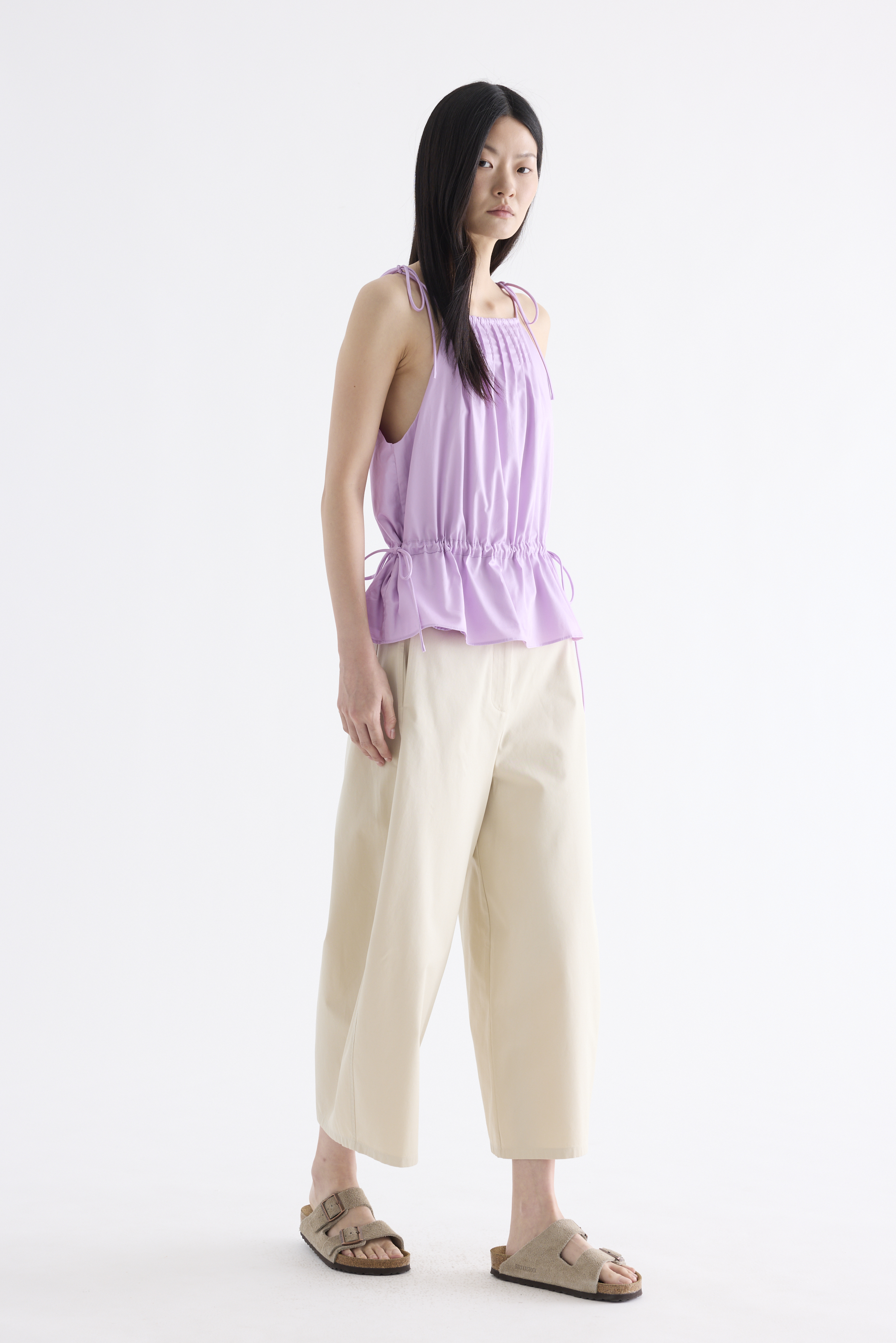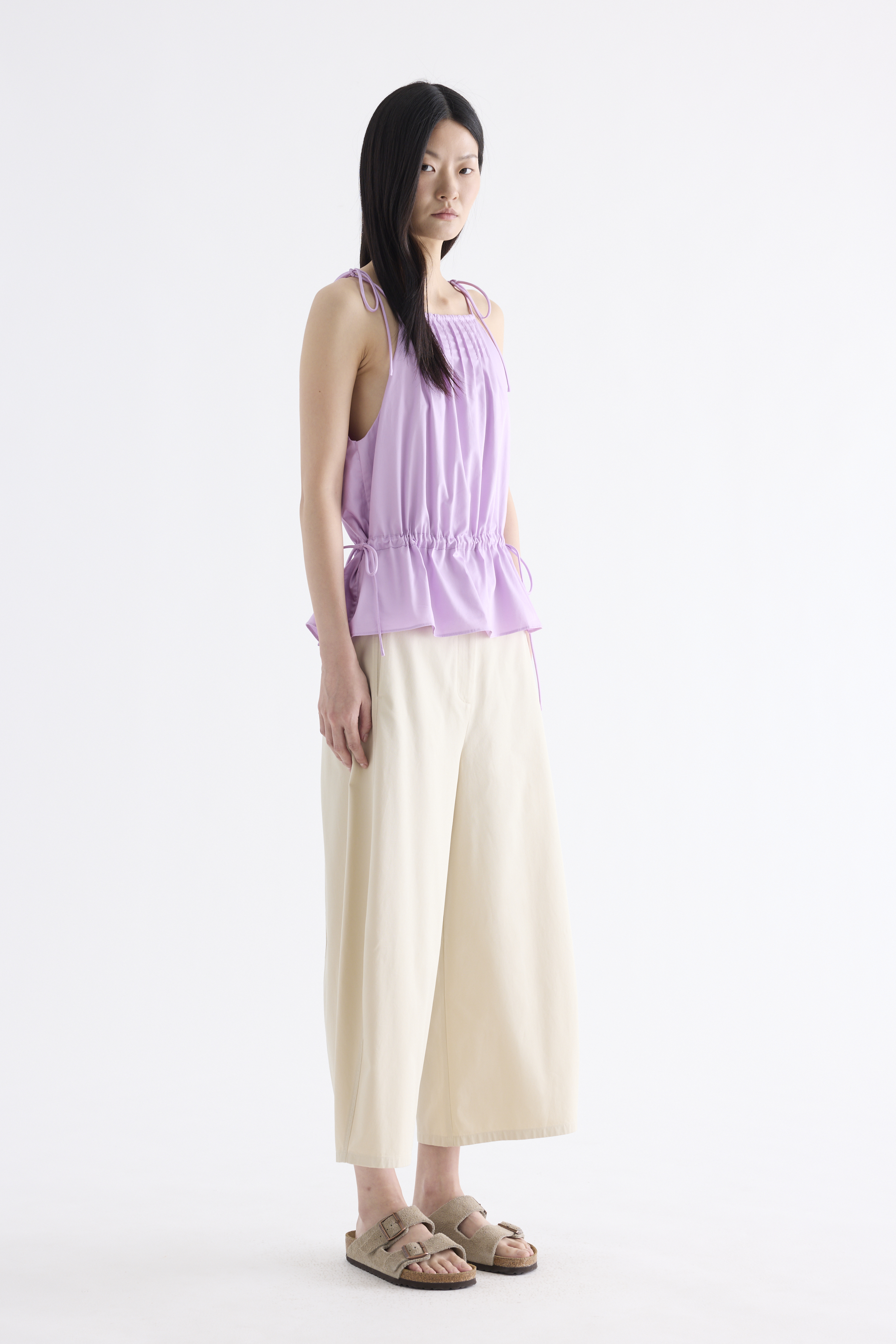 From the Postscript collection. Cut from soft and smooth cotton, this sleeveless top features an adjustable drawstring halter neckline, self-tying shoulder straps, front pleats and a statement back slit. Its fit is adjustable via a drawstring waist-tie.