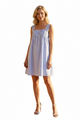 Clean lines. Made from crisp and softly structured cotton, this sleeveless dress features an empire silhouette, a square neckline, a pin-tucked bust, wide lace-trimmed shoulder straps and front buttons. Fits relaxed and above the knee.