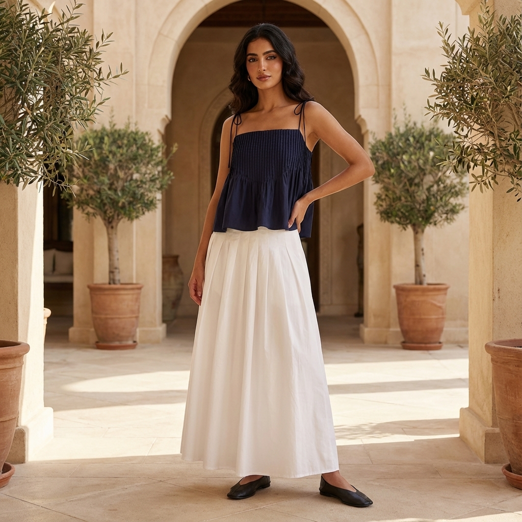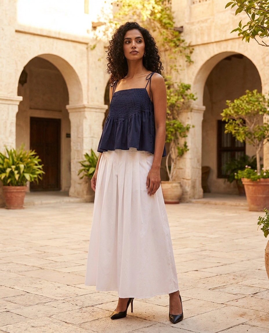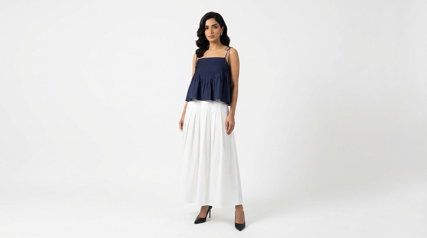 Tactile. Made from light and crisp cotton, this sleeveless top features pin-tuck pleats, a straight neckline and slim self-tying shoulder straps. Worn in a relaxed fit.