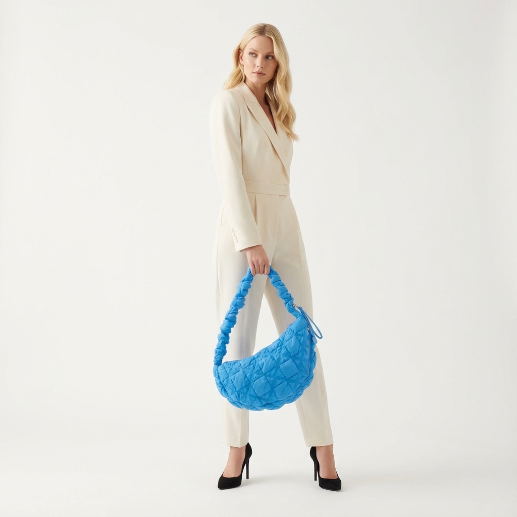 Made from smooth and fully lined nylon, Cozy Large has an ultra-soft, quilted exterior and a spacious, asymmetrical hobo shape ideal for holding more belongings. It also features a zipped opening furnished with a metal Carlyn-logo slider, as well as zipped interior and exterior pockets for easy organisation. An adjustable drawstring strap allows for toting in the hands, on the shoulder or across the body.
