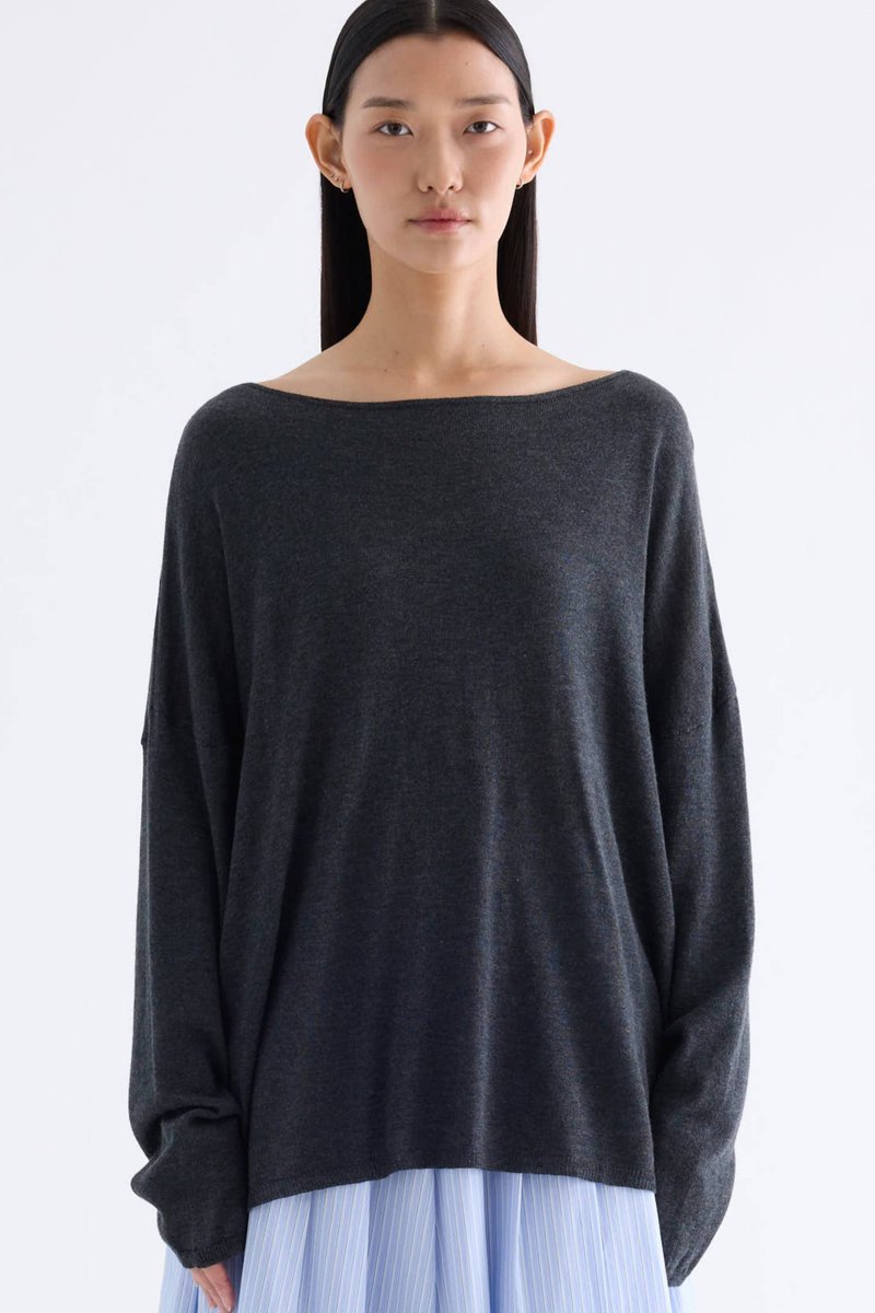 Get cosy. Made from soft and smooth knit, this top features long sleeves, dropped shoulders and a wide neckline. Fits relaxed and oversized.