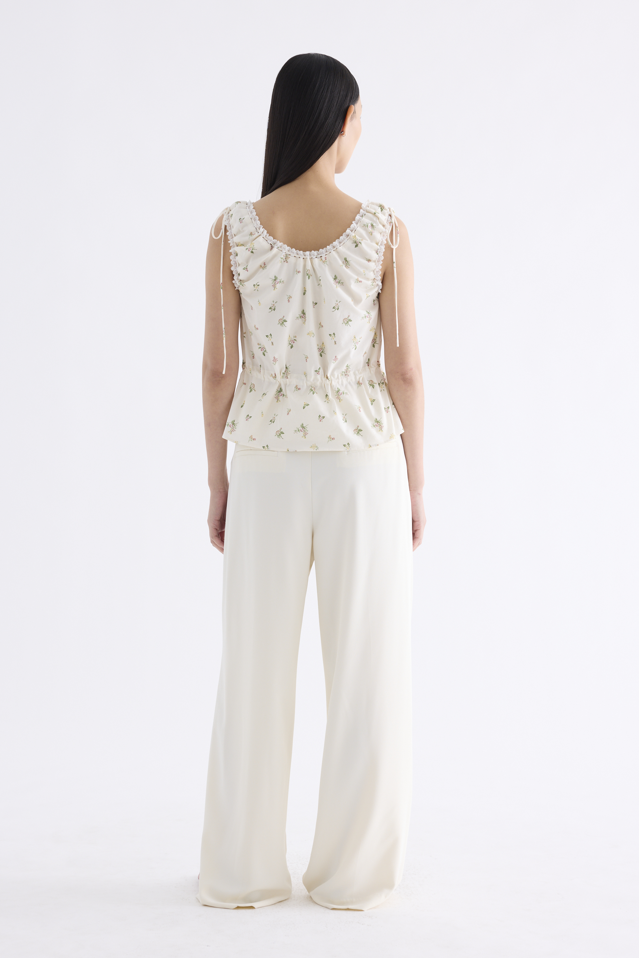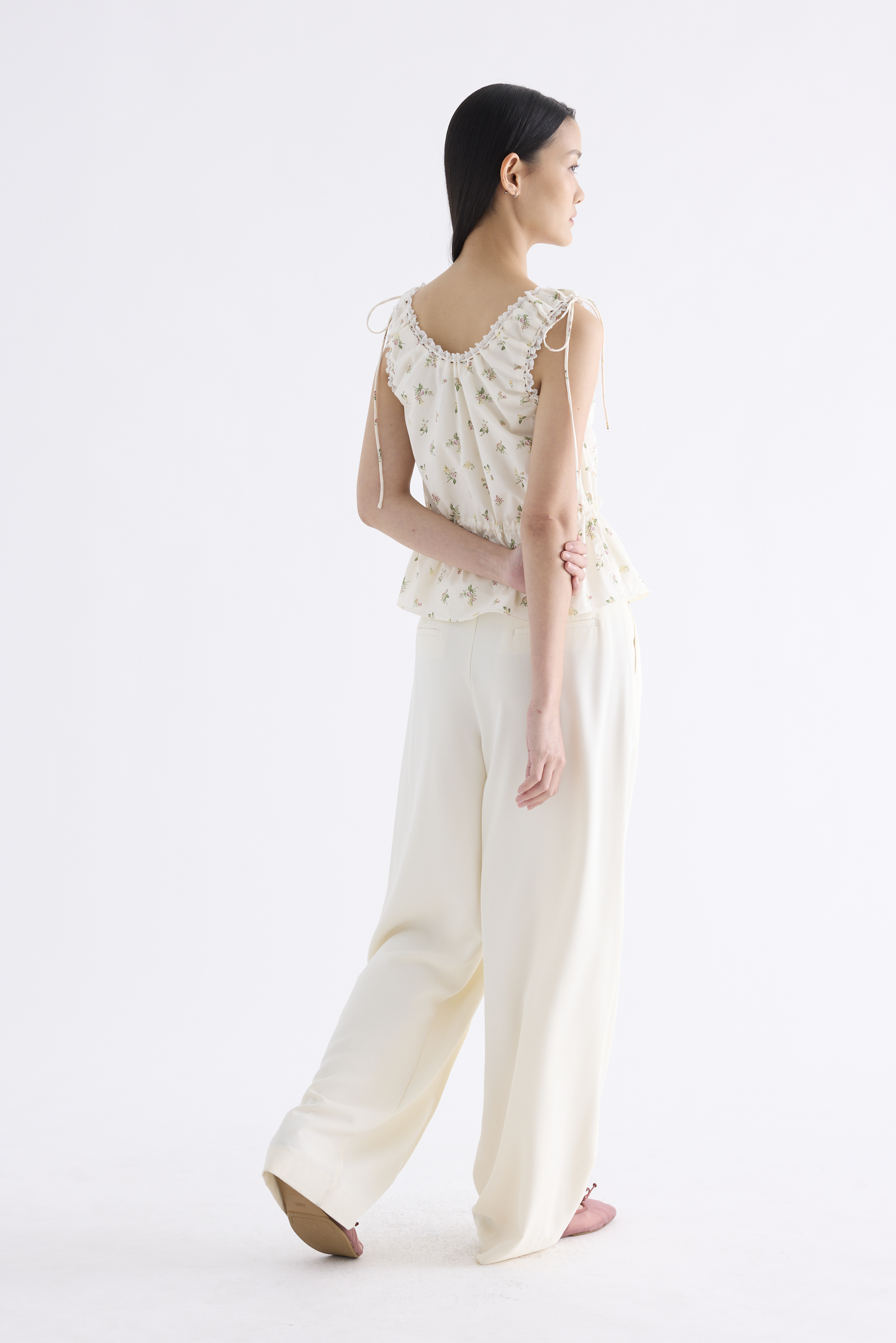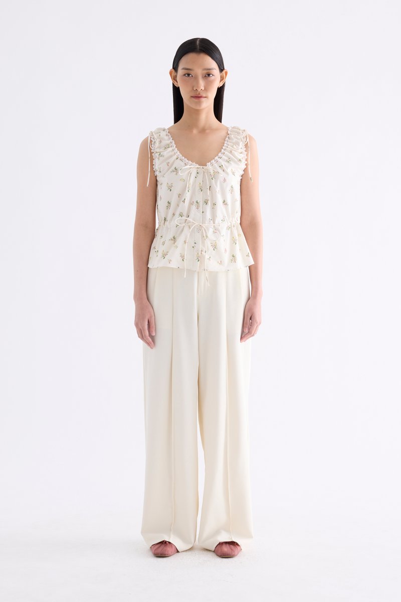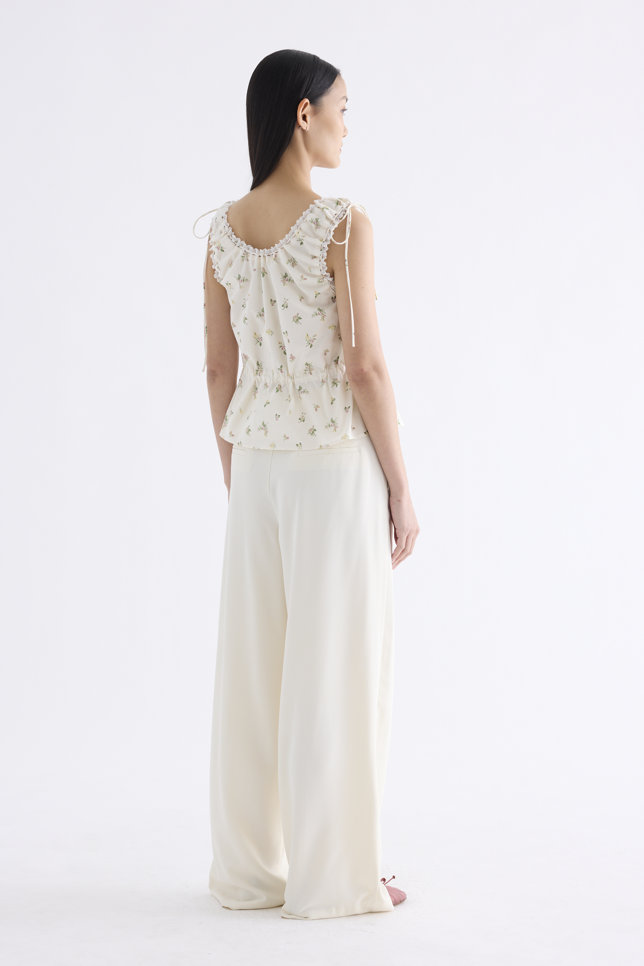 From the Postscript collection. This sleeveless top features a lace-trimmed, drawstring neckline with a front tie-strap, drawstring arm openings with shoulder tie-straps, as well as a button-down front. Its fit is adjustable via a drawstring waist tie.