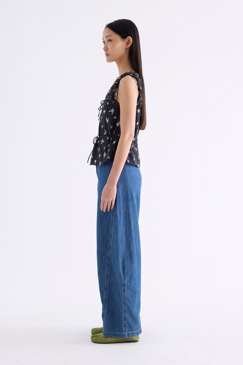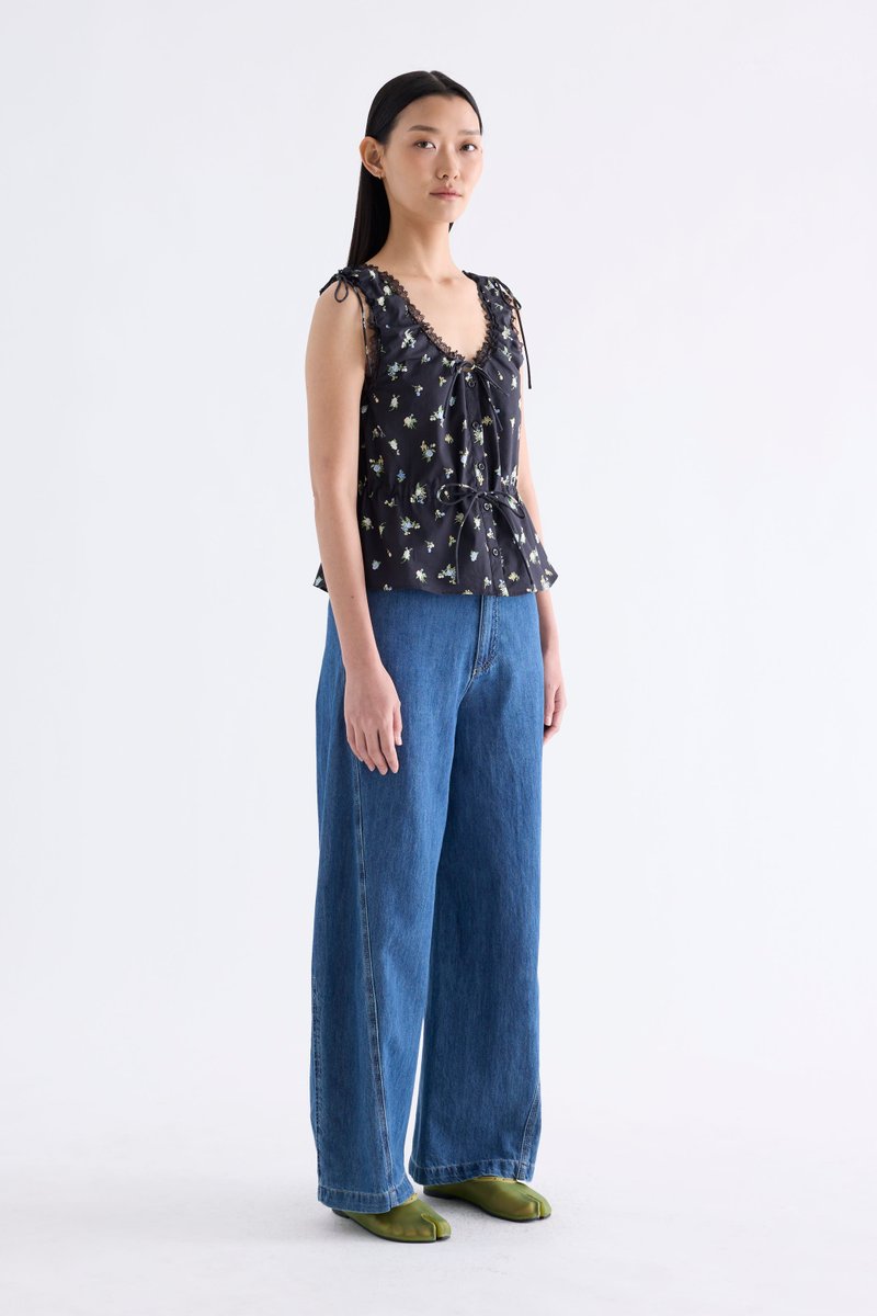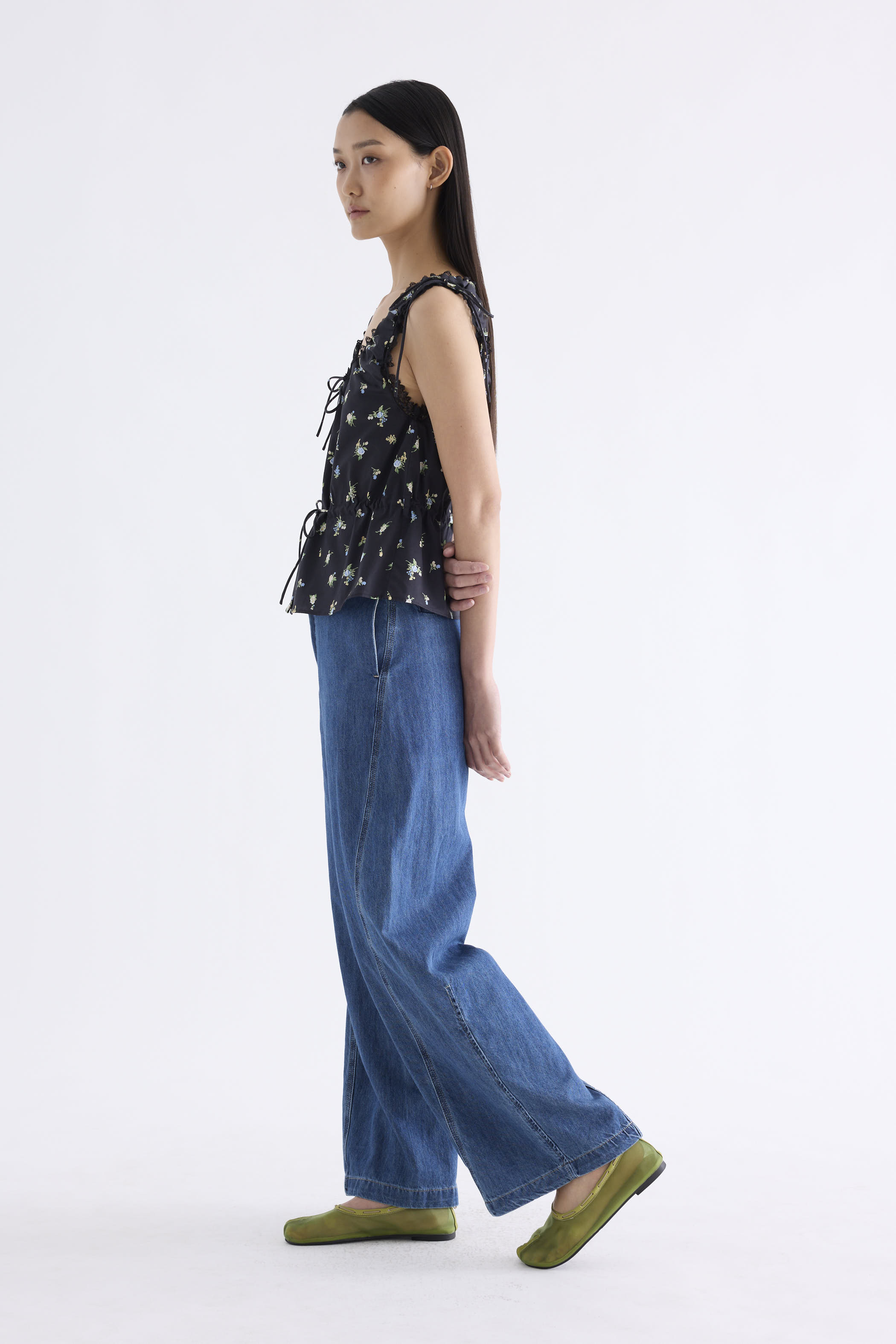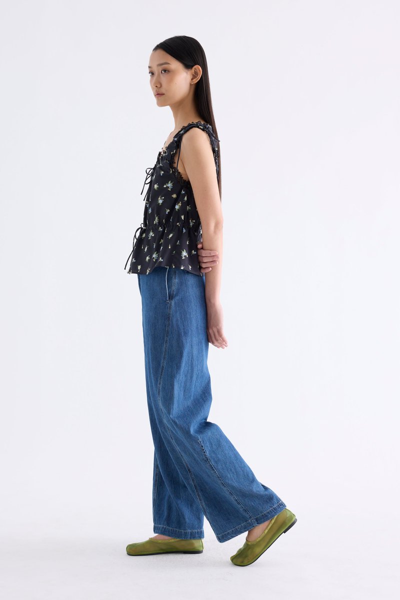 From the Postscript collection. This sleeveless top features a lace-trimmed, drawstring neckline with a front tie-strap, drawstring arm openings with shoulder tie-straps, as well as a button-down front. Its fit is adjustable via a drawstring waist tie.