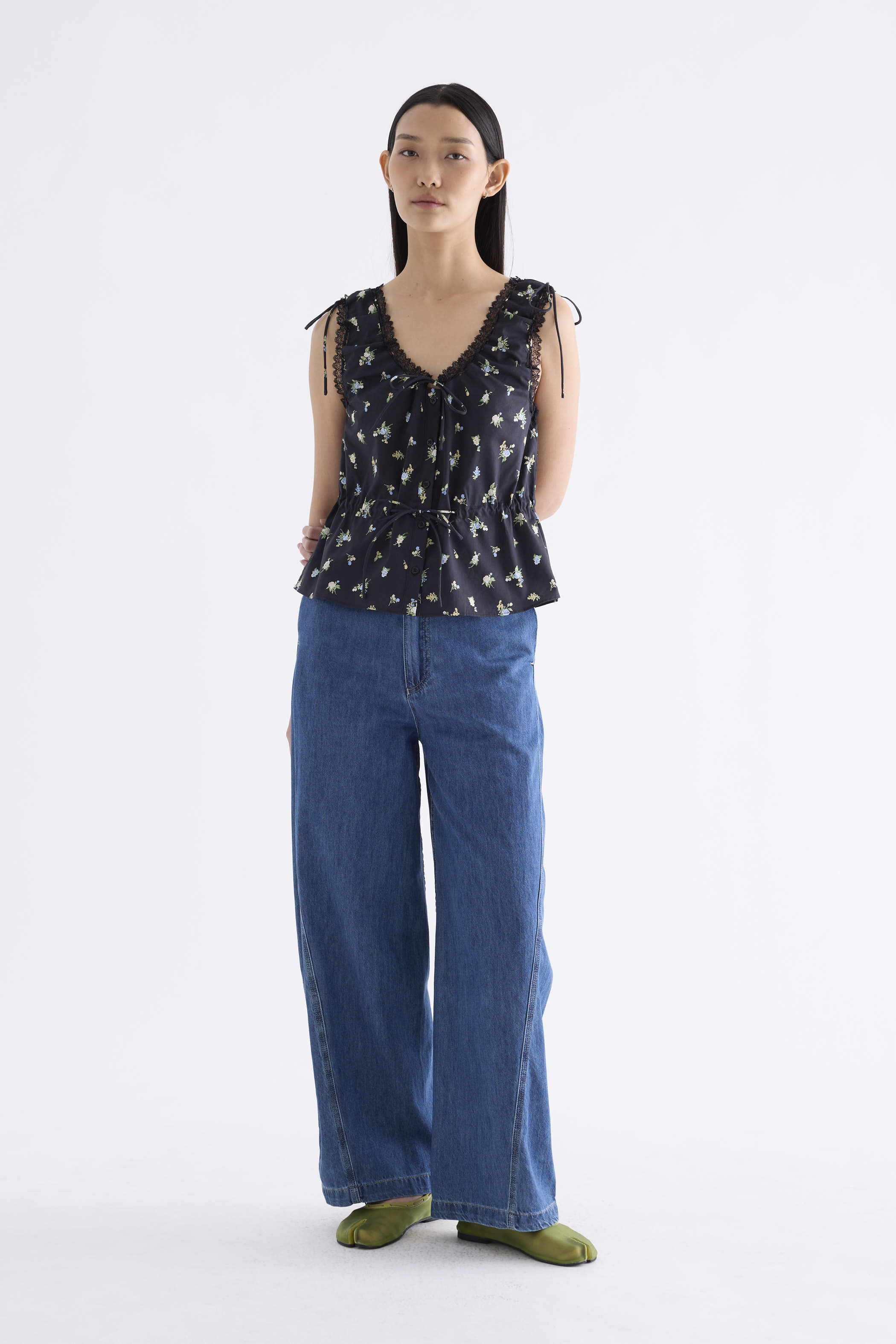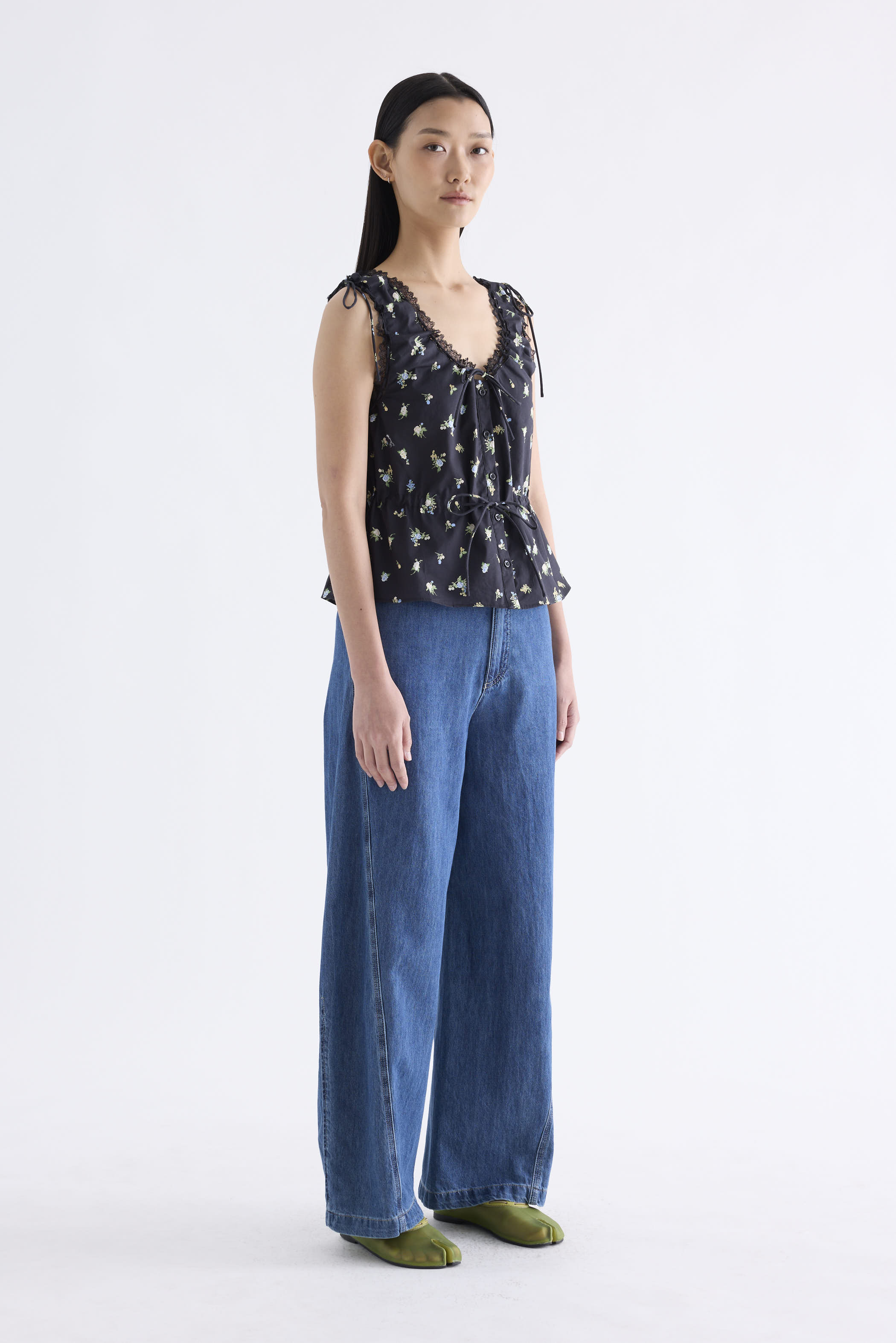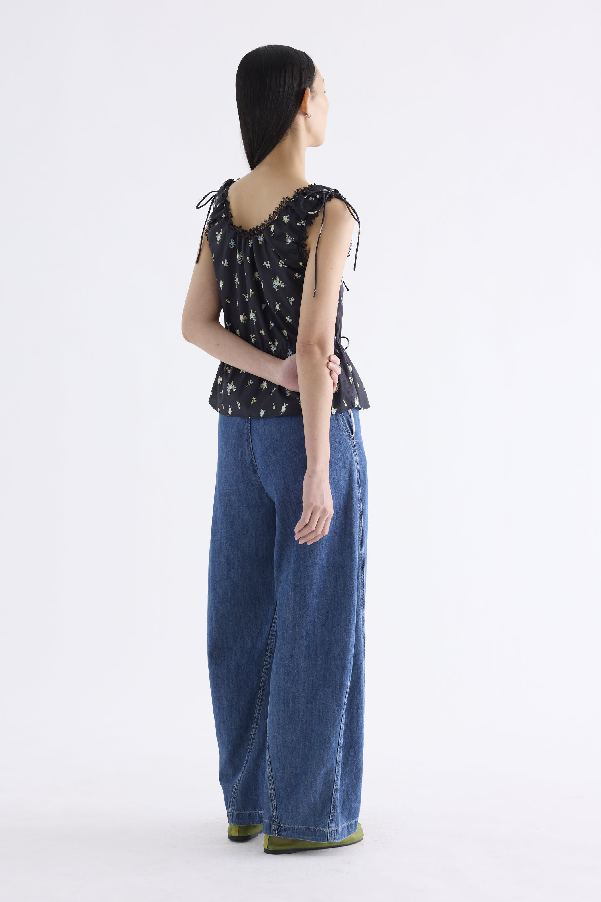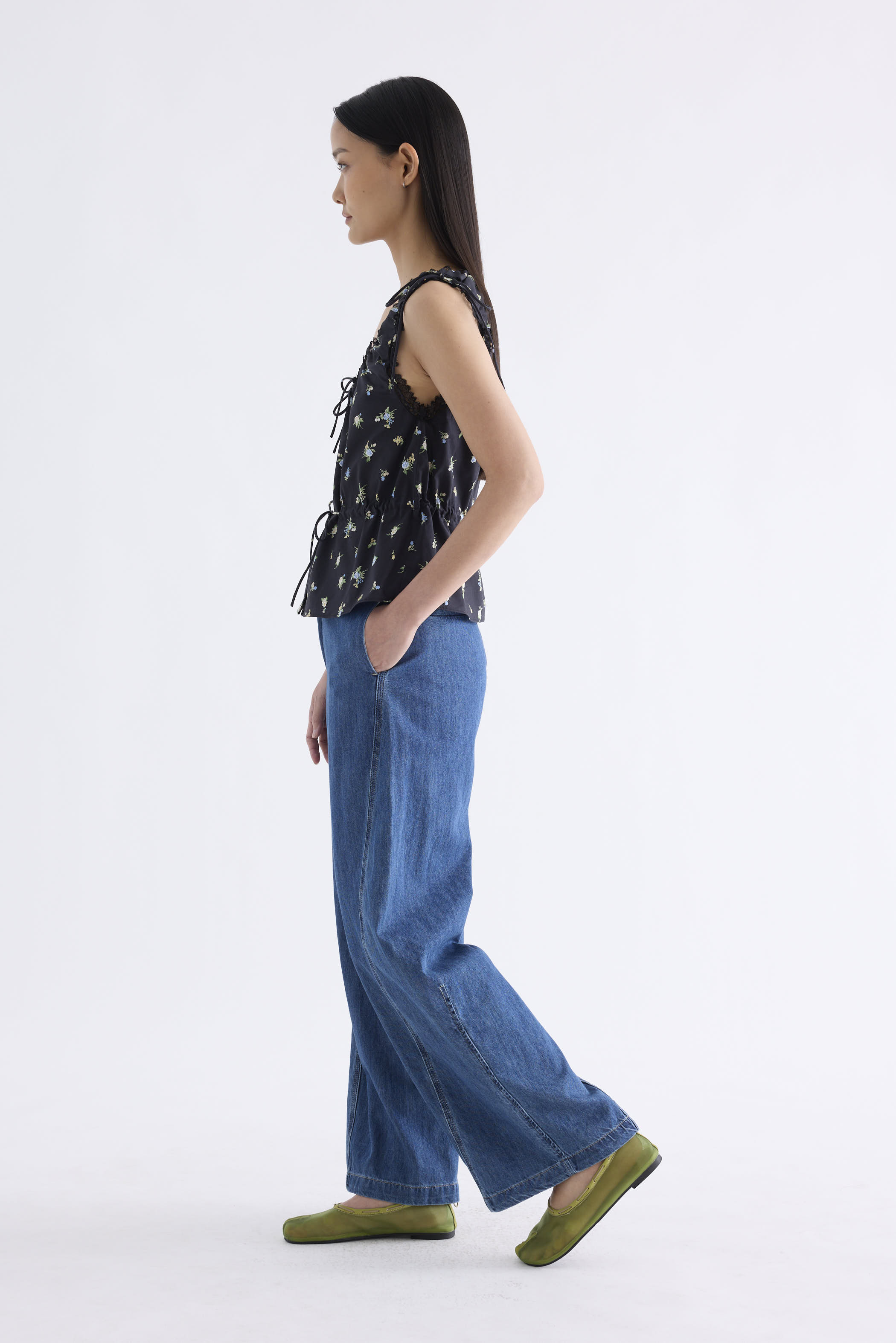 From the Postscript collection. This sleeveless top features a lace-trimmed, drawstring neckline with a front tie-strap, drawstring arm openings with shoulder tie-straps, as well as a button-down front. Its fit is adjustable via a drawstring waist tie.