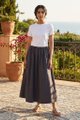 Double the detail. Made from crisp and softly structured cotton broderie, this maxi skirt features a drawstring waistband with side-ties and a flared A-line silhouette.