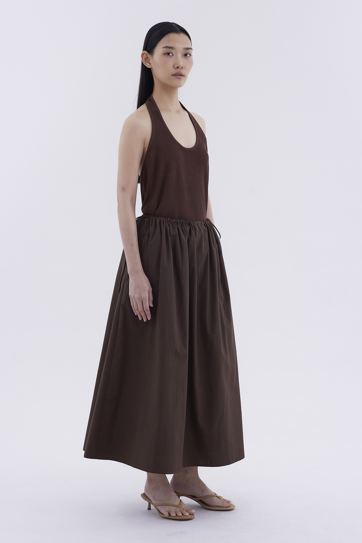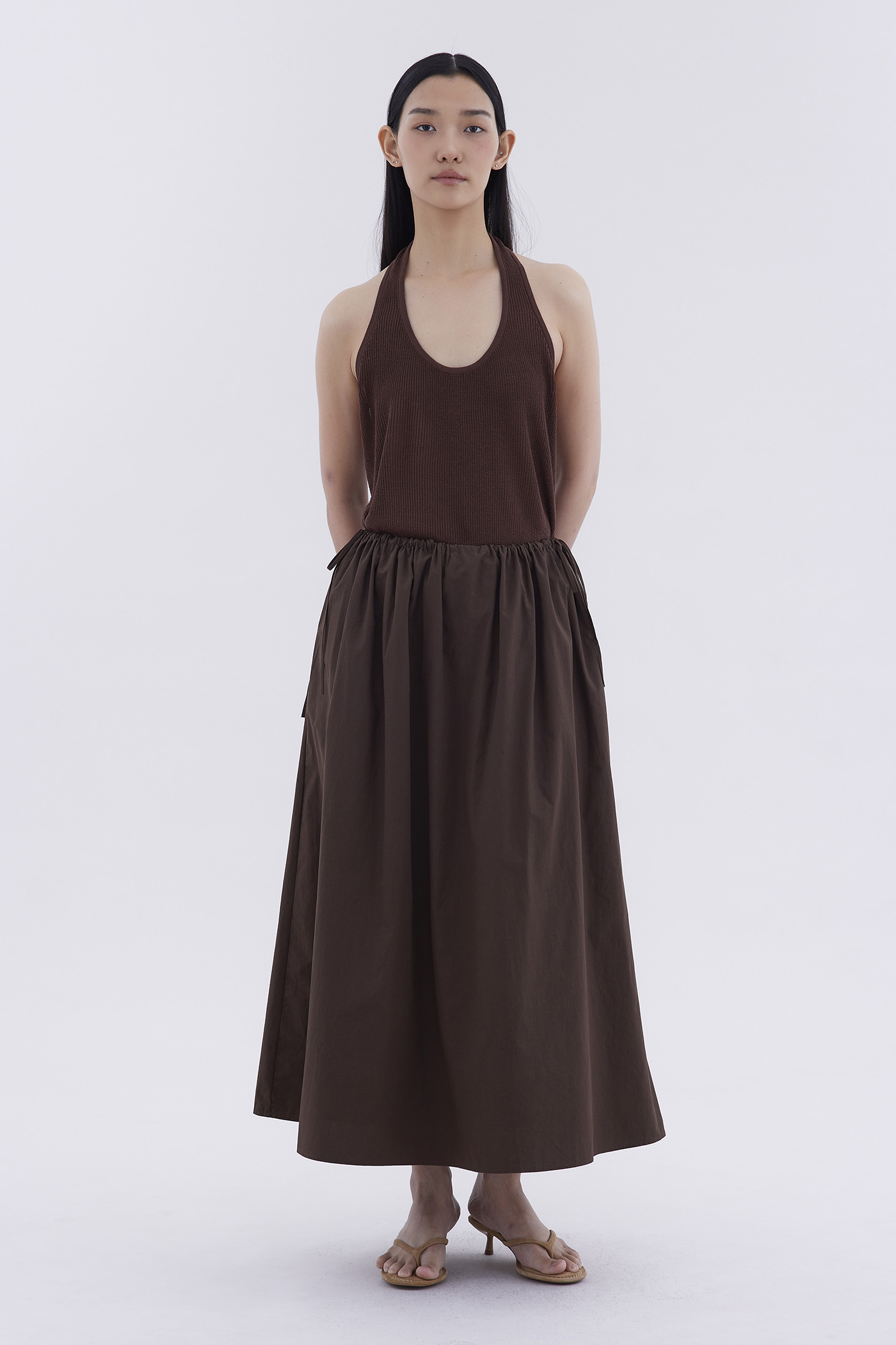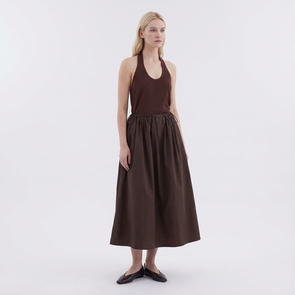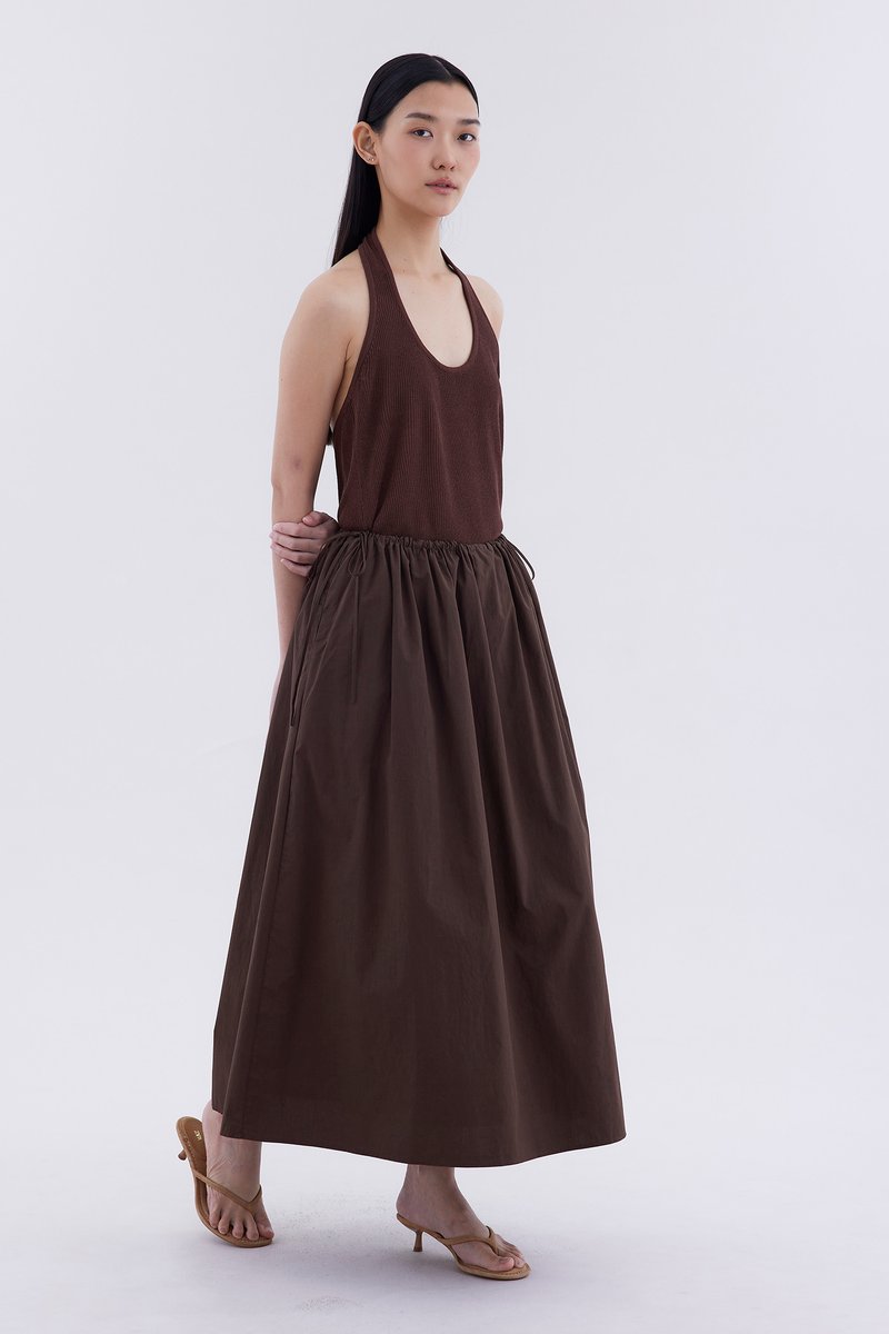 Double the detail. Made from crisp and softly structured cotton broderie, this maxi skirt features a drawstring waistband with side-ties and a flared A-line silhouette.