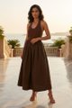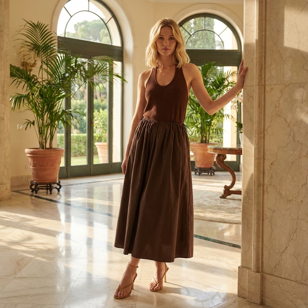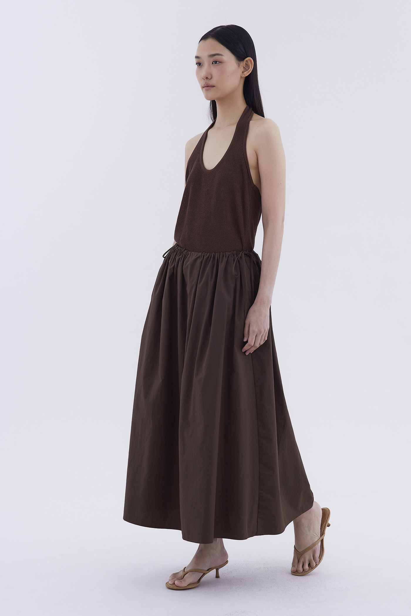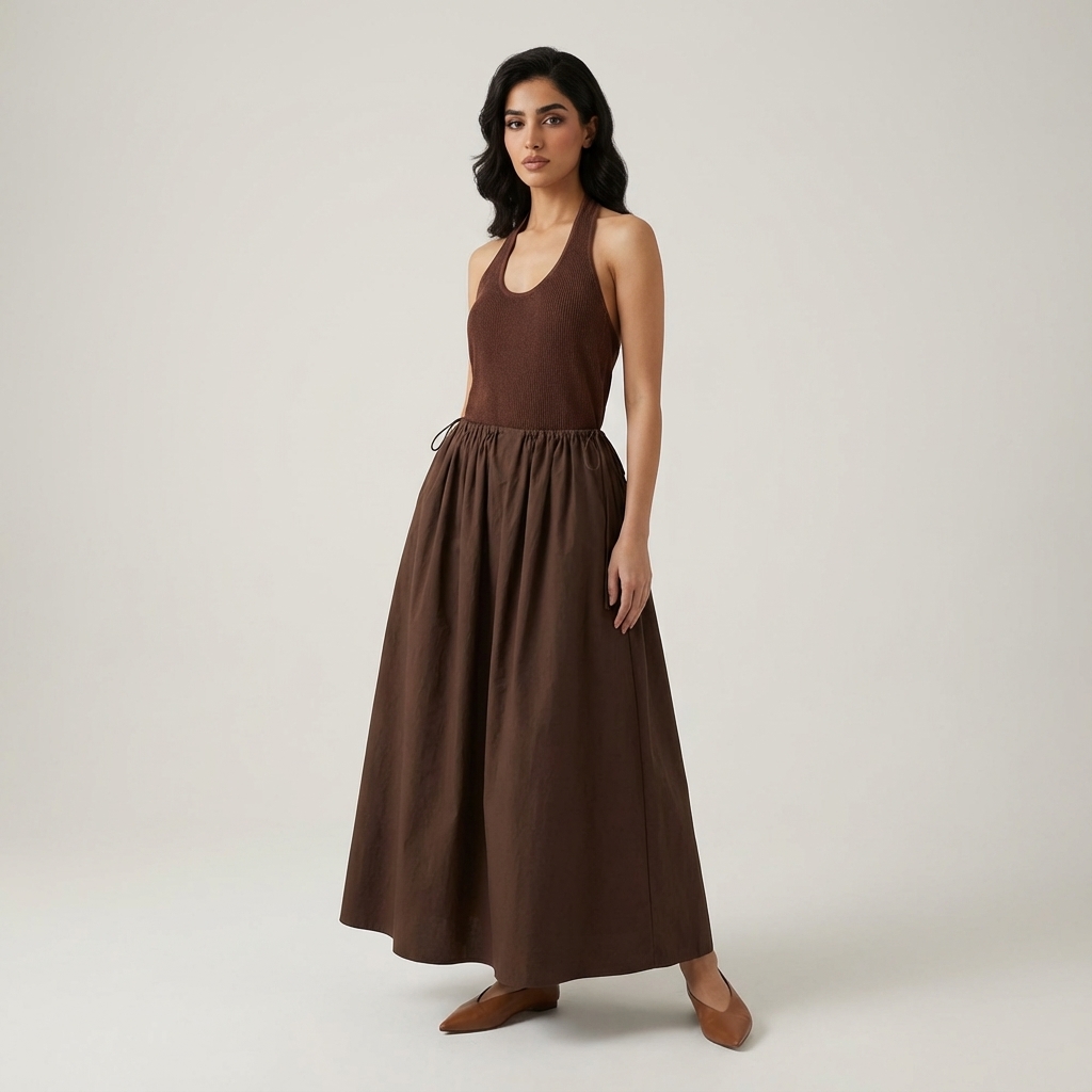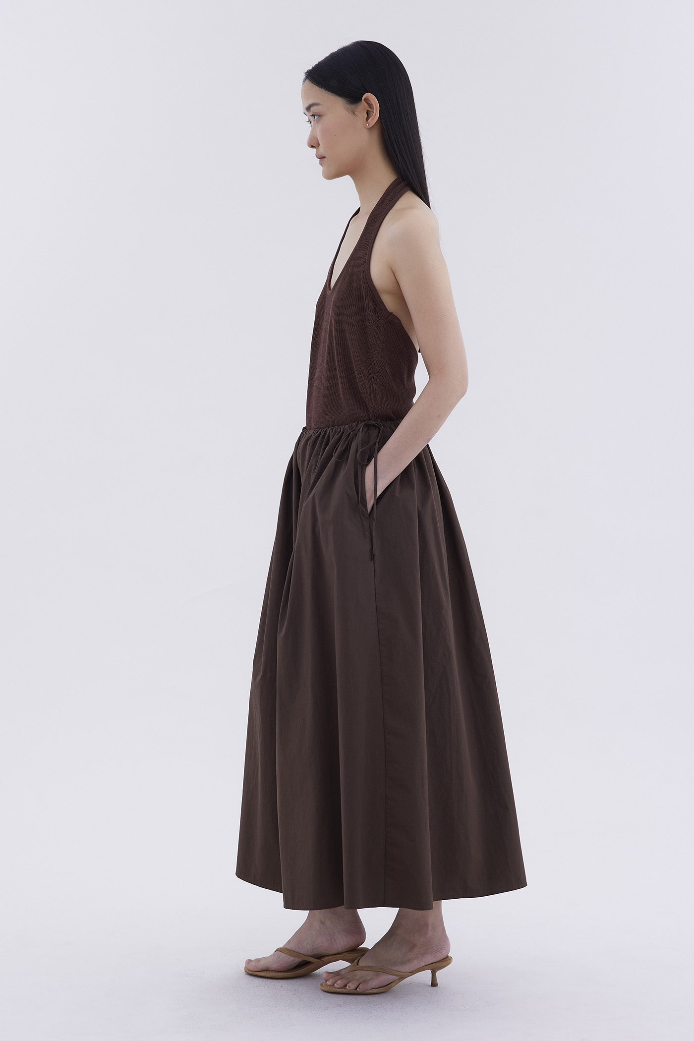 Double the detail. Made from crisp and softly structured cotton broderie, this maxi skirt features a drawstring waistband with side-ties and a flared A-line silhouette.
