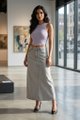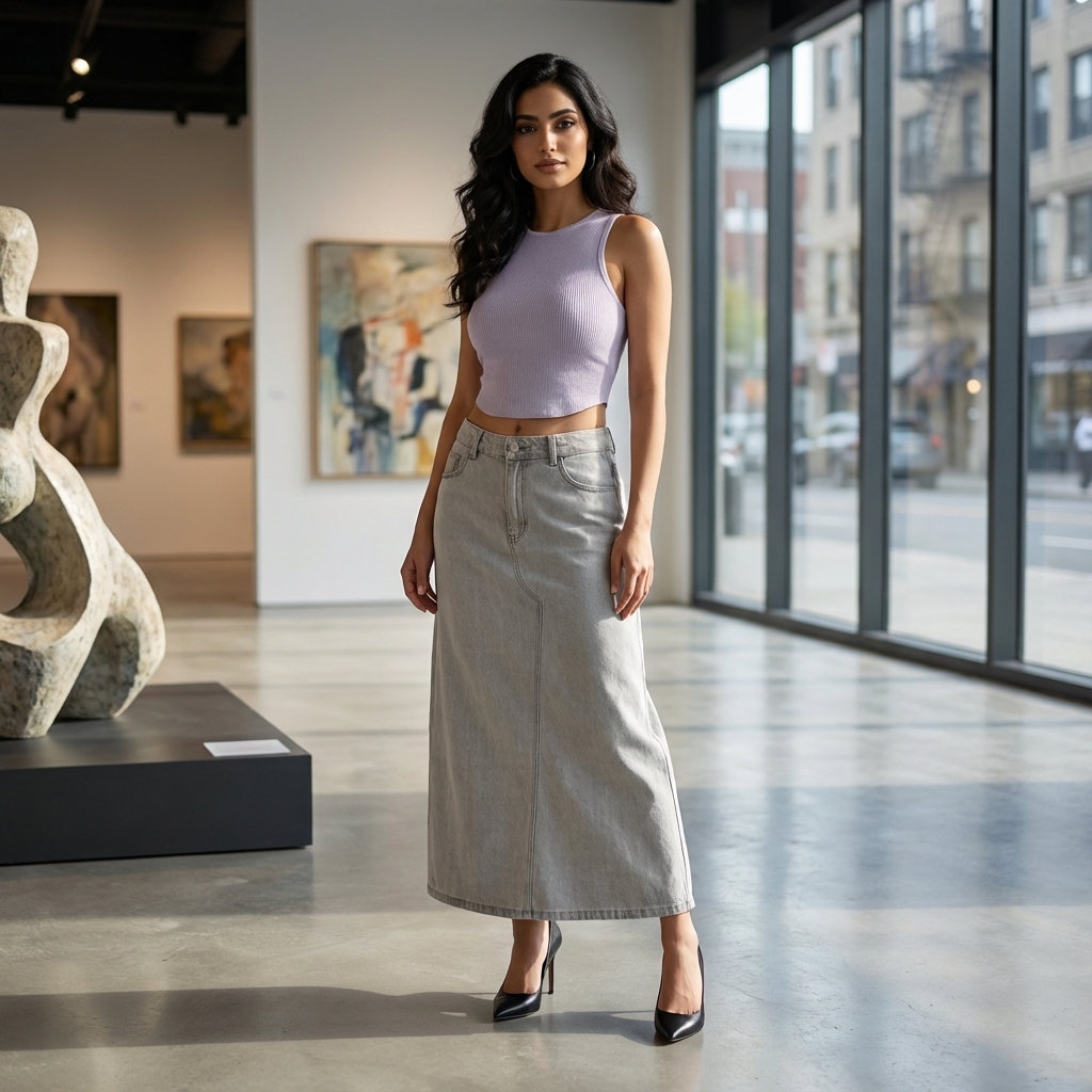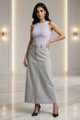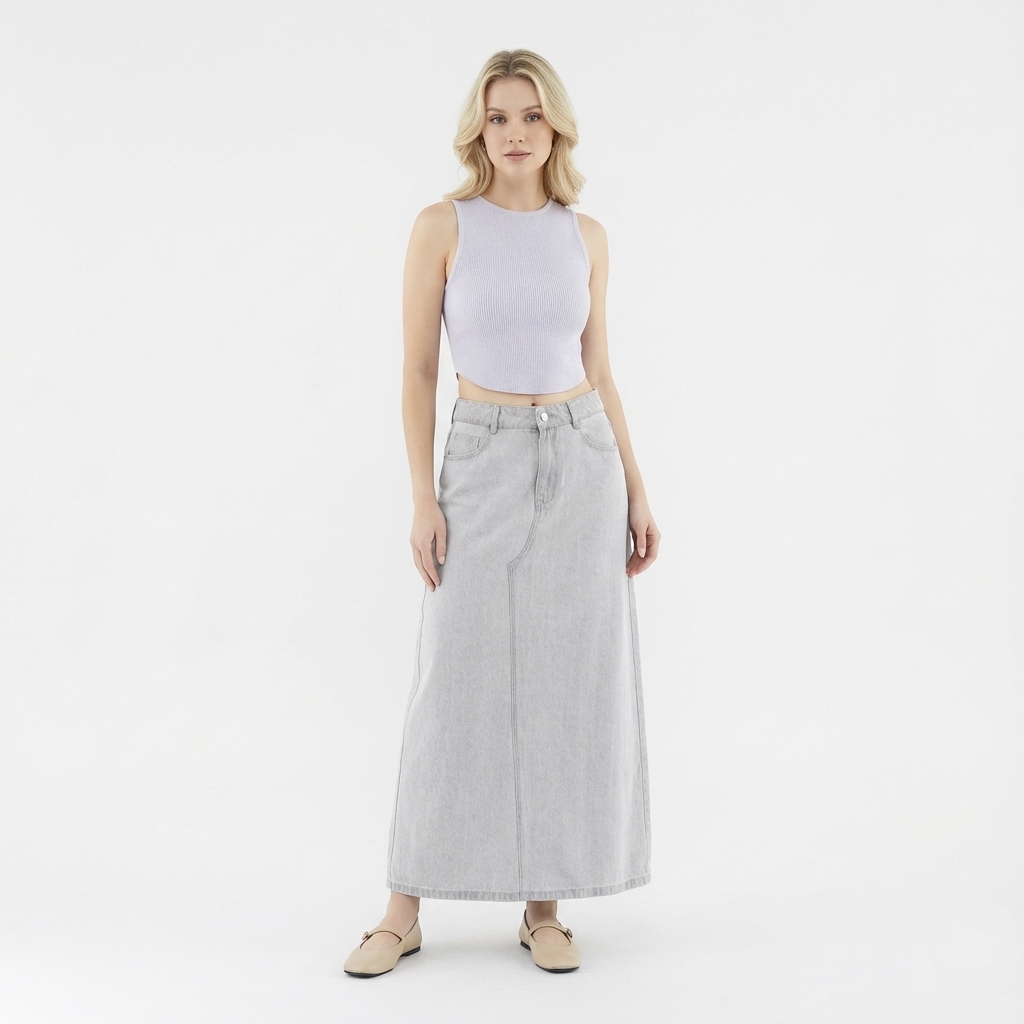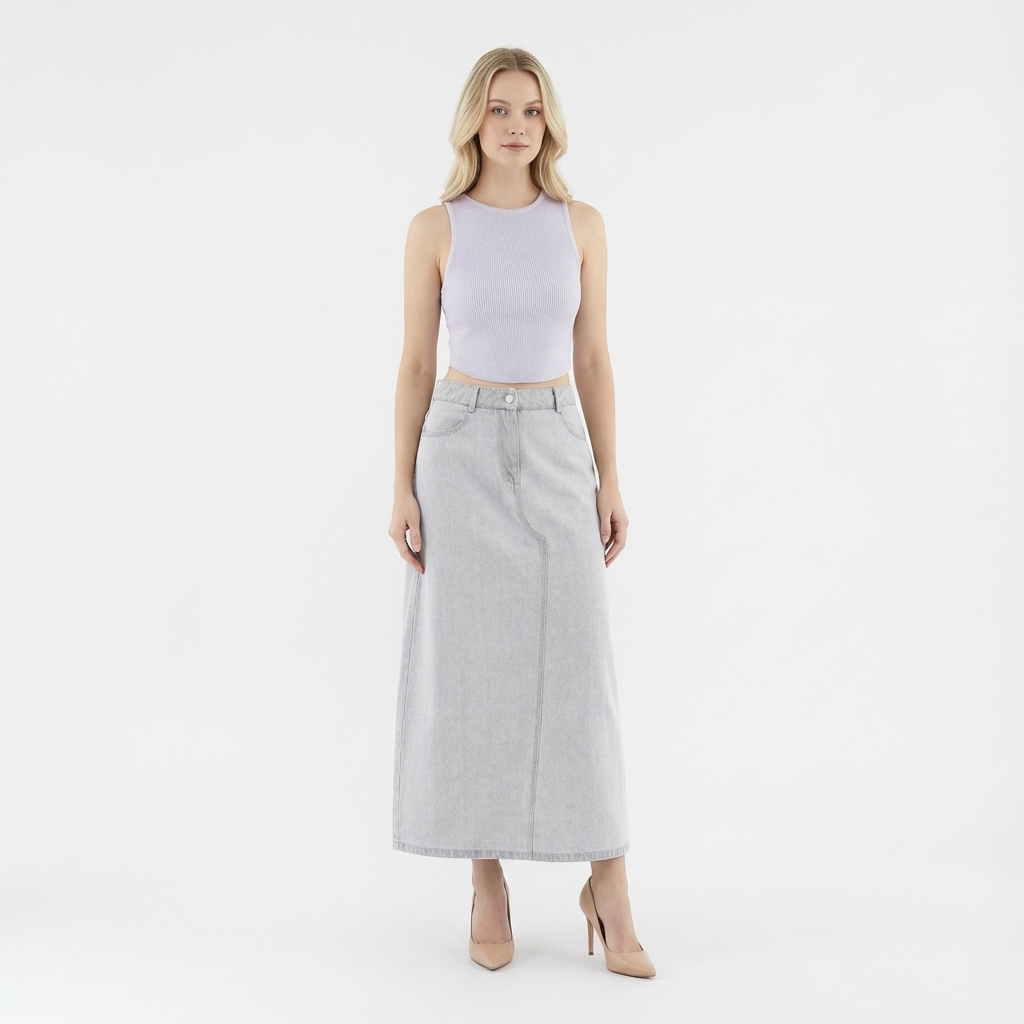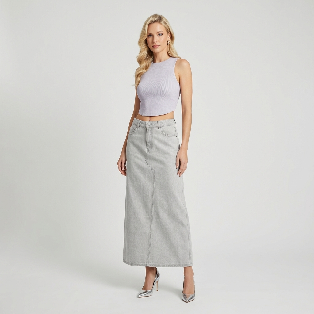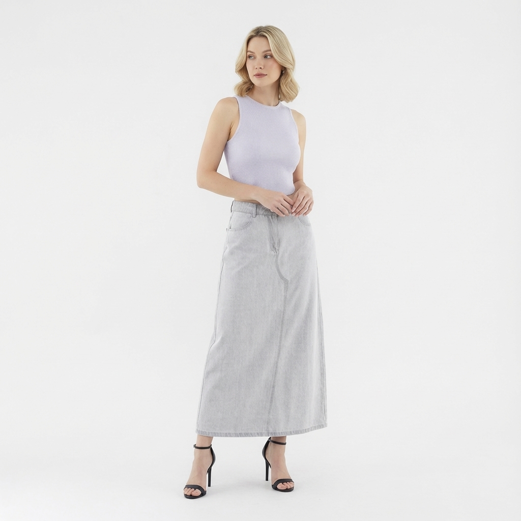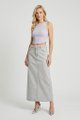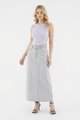 Never over denims. Made from softly structured cotton, this mid-waisted denim skirt features a slim A-line silhouette, belt loops and a front zip and button closure. Fits relaxed in a maxi length.