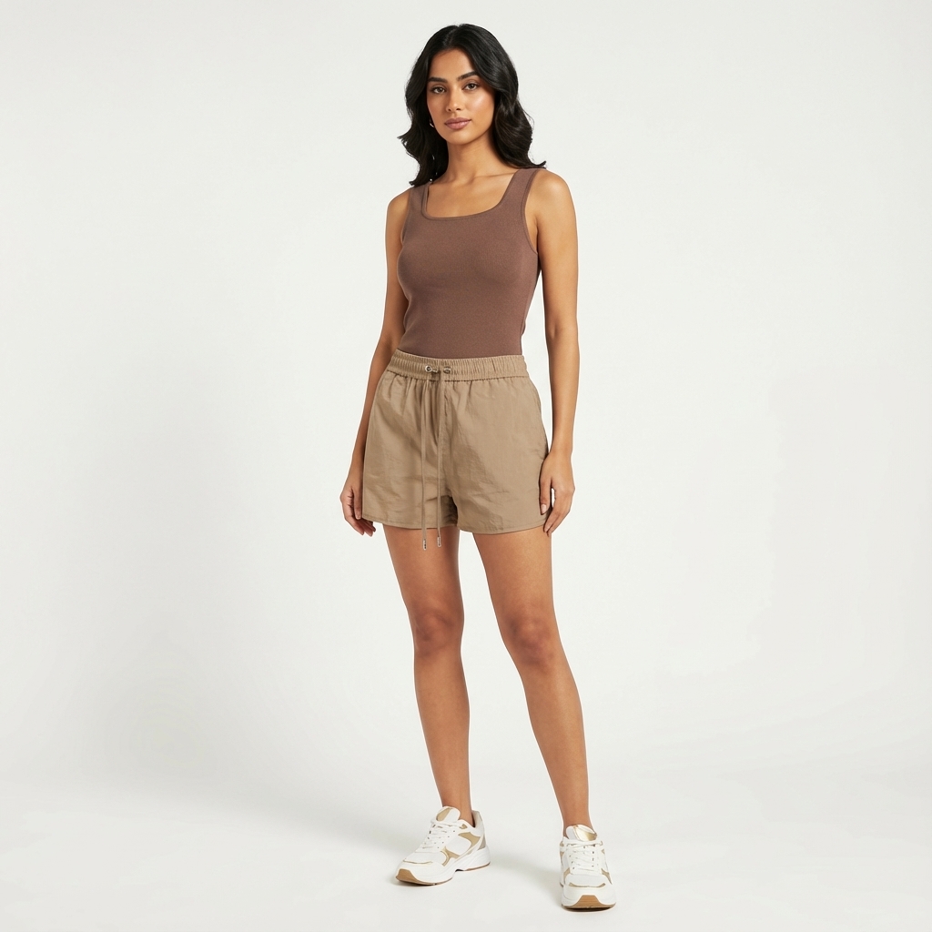 On repeat. Cut from crisp and non-stretch nylon, these shorts feature an elasticated drawstring waistband and curved hemline. Worn in a relaxed fit.