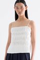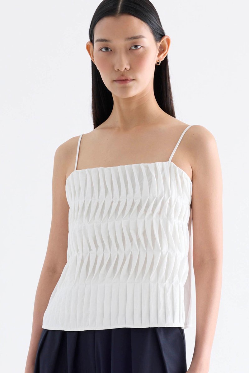 Statement lines. Made from softly structured fabric, this sleeveless top features twisted pleats at the front, slim adjustable shoulder straps, a straight neckline and a partially elasticated back. Worn in a slim fit.