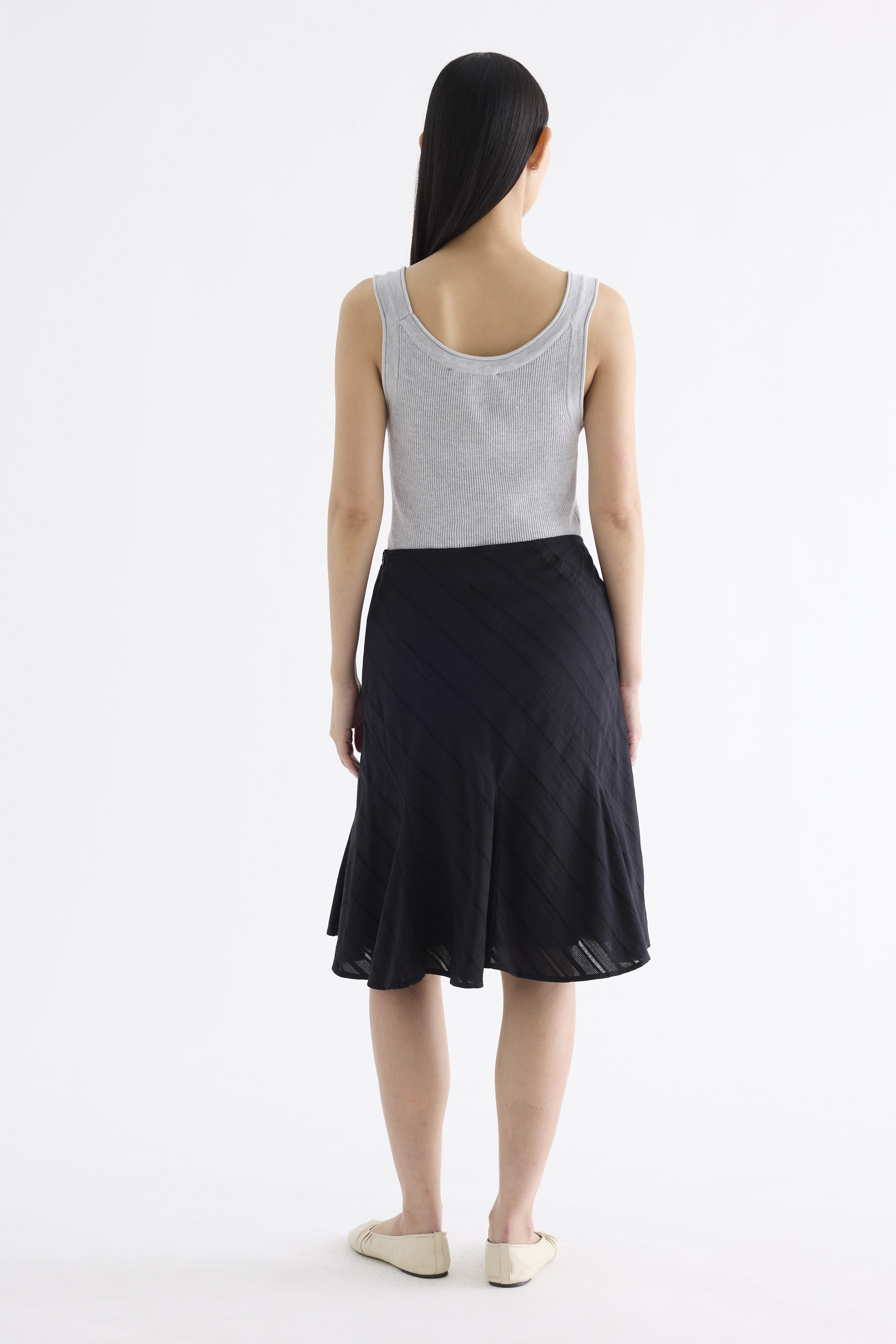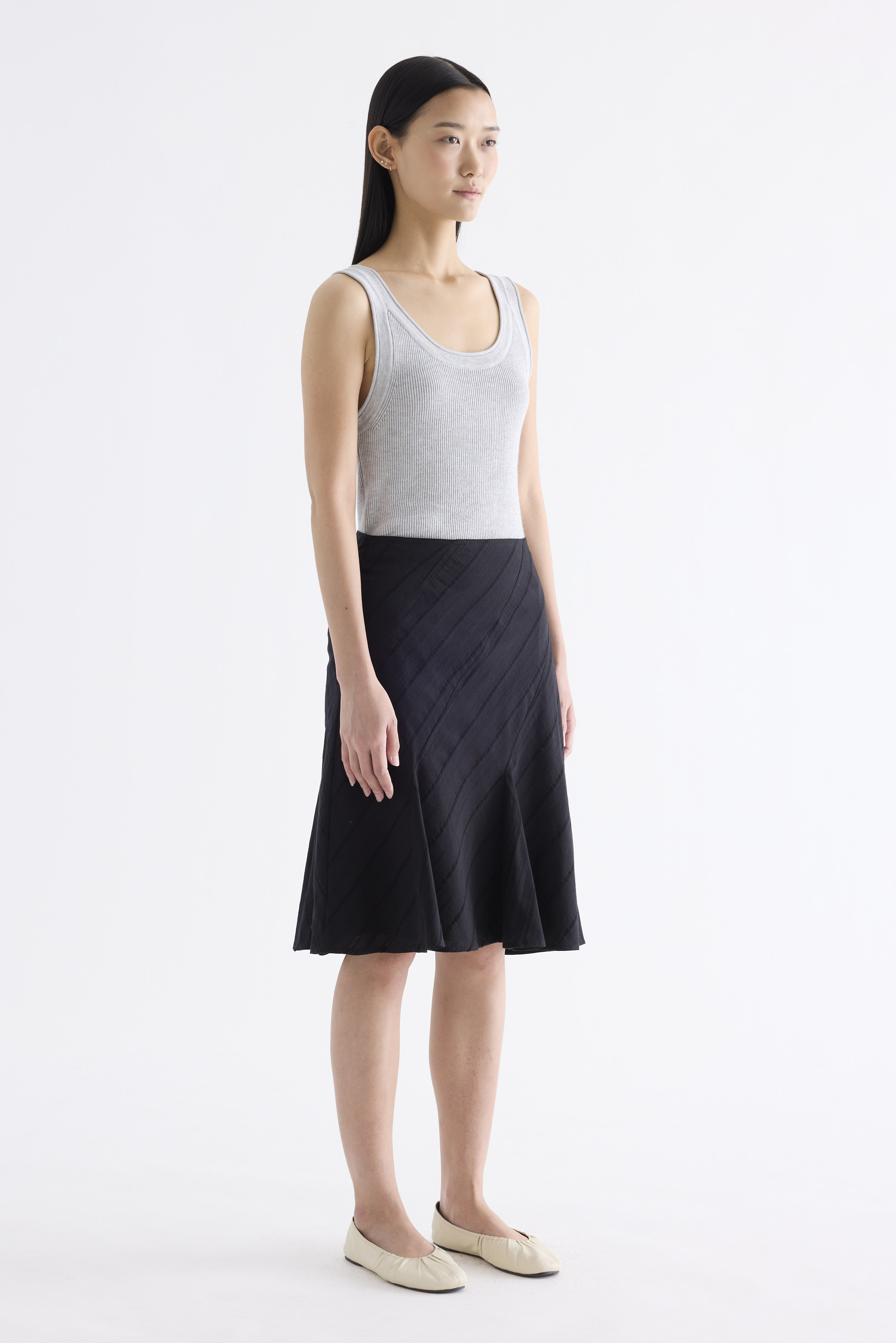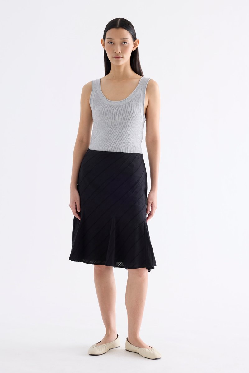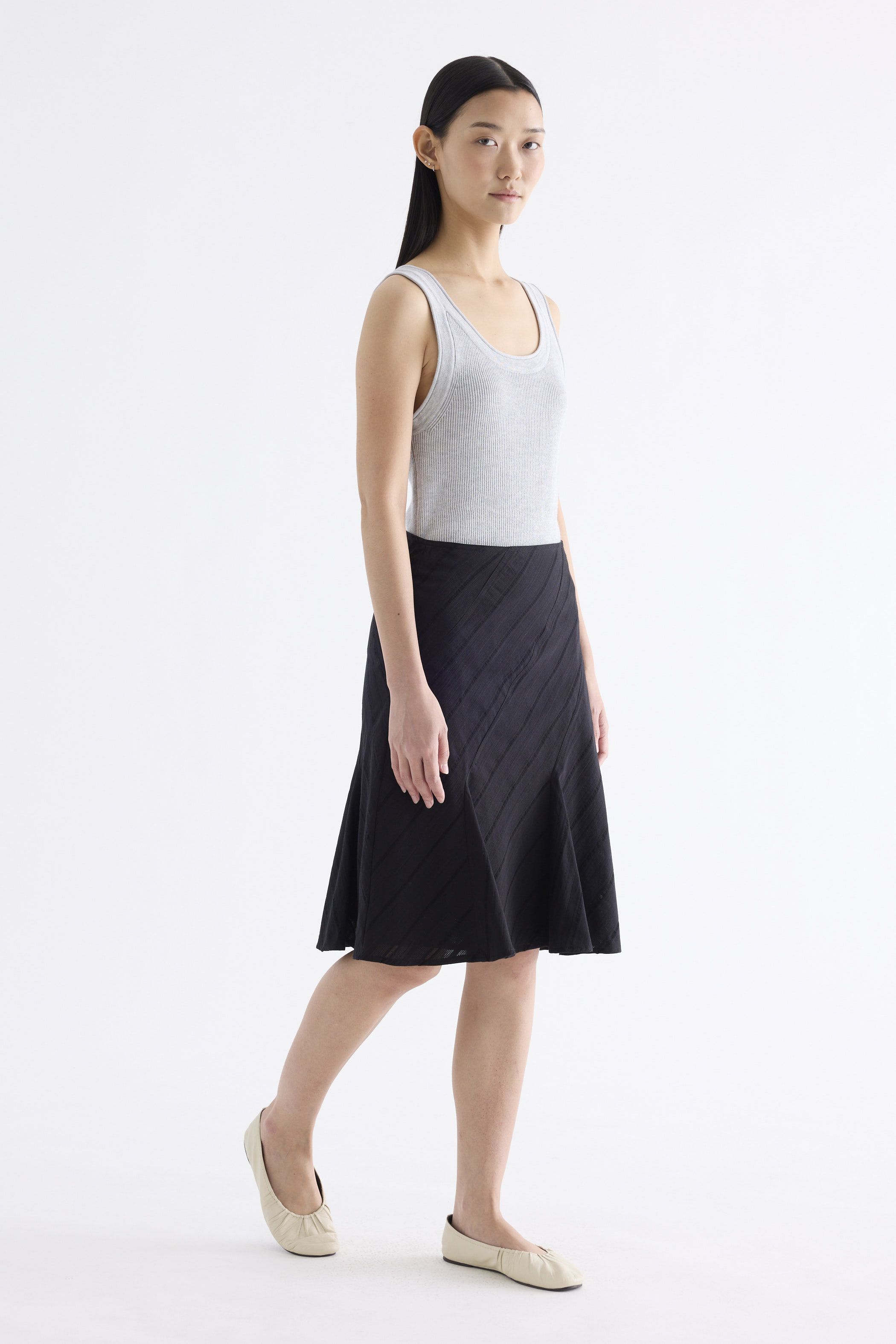 Textural. Made from airy and striped cotton, this knee-length skirt features a flared hem and side zip closure. Fits slim in an A-line silhouette.