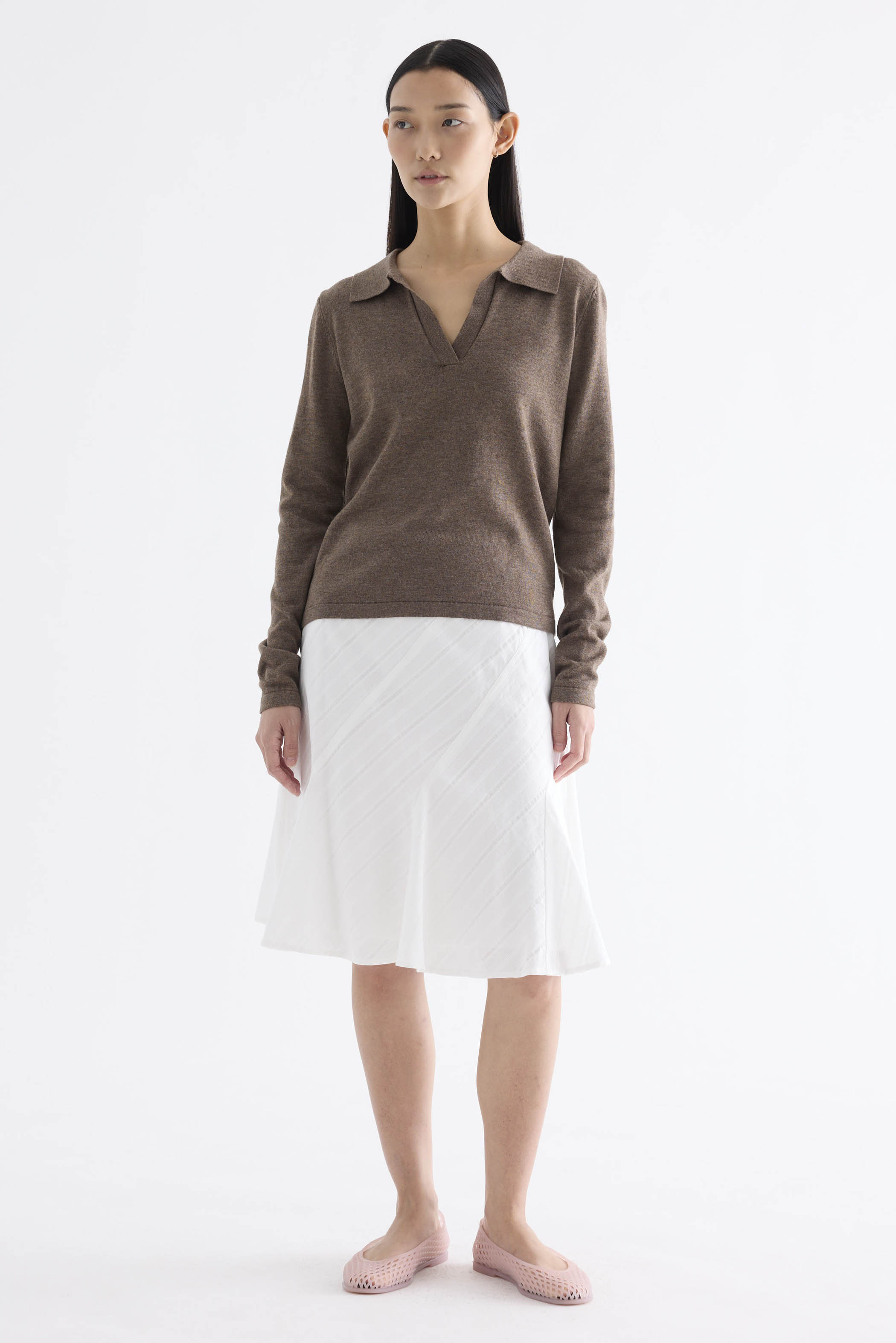 Textural. Made from airy and striped cotton, this knee-length skirt features a flared hem and side zip closure. Fits slim in an A-line silhouette.