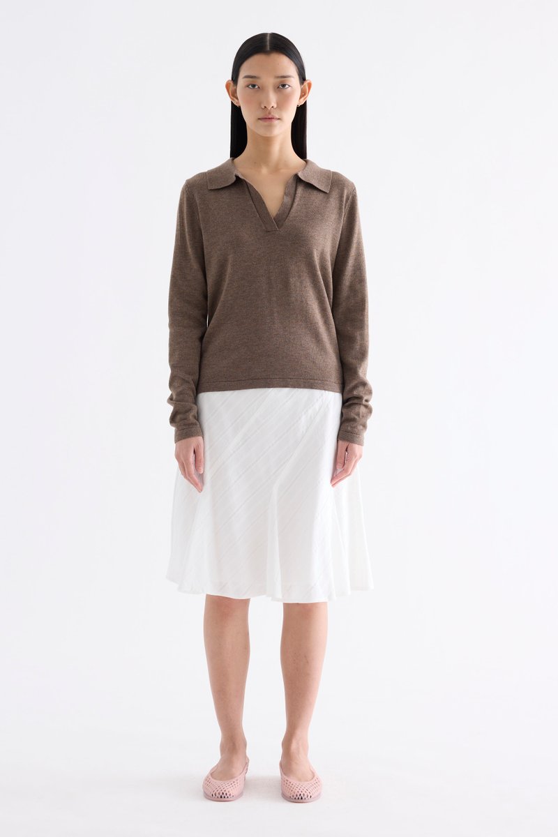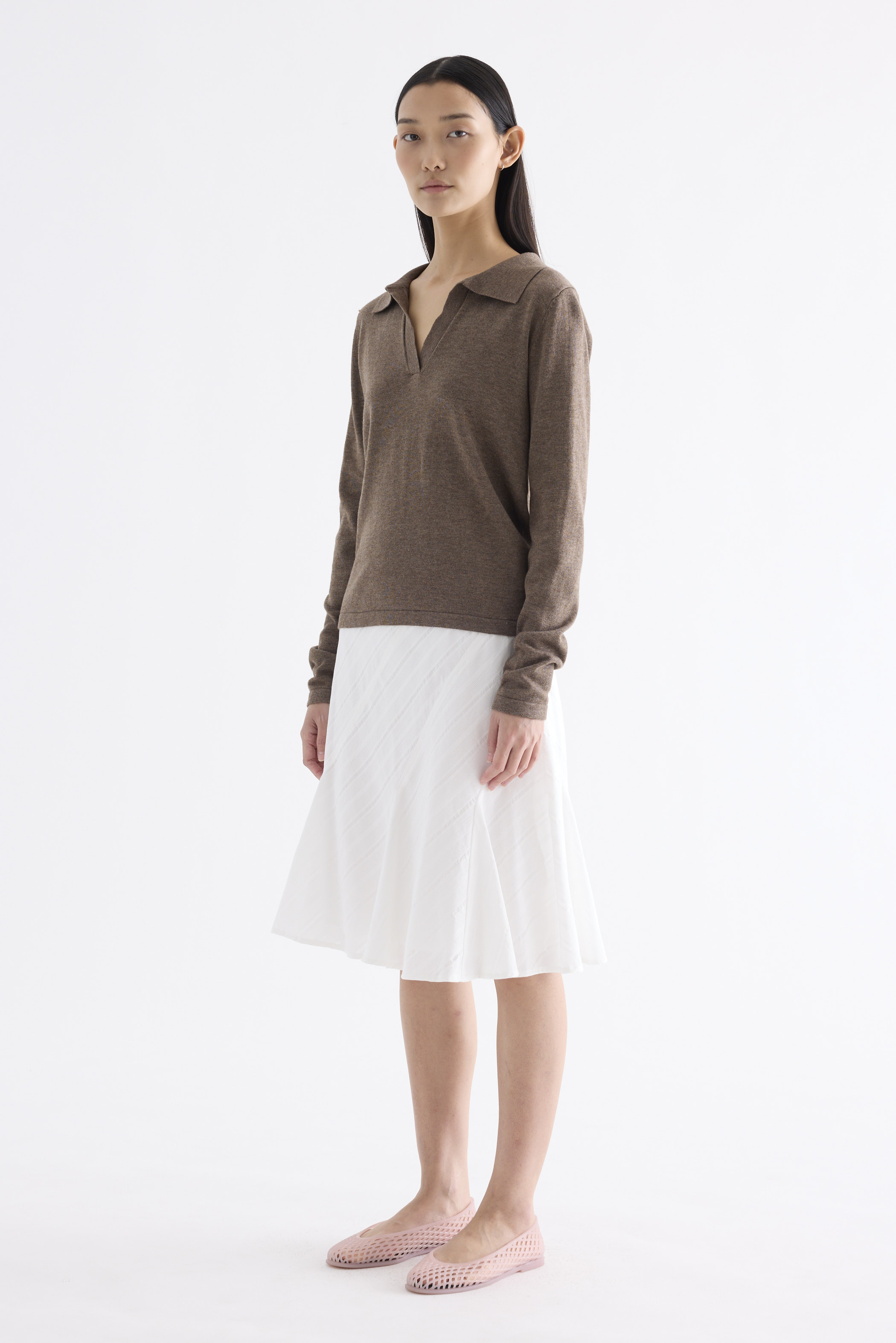 Textural. Made from airy and striped cotton, this knee-length skirt features a flared hem and side zip closure. Fits slim in an A-line silhouette.