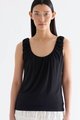 For the love of textures. Made from smooth and stretchy fabric, this sleeveless top features a U-shaped neckline and ruched shoulder straps. Worn in a slim fit.