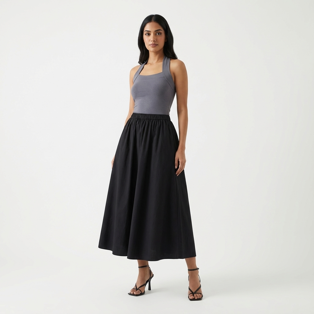 On rotation. Made from a soft and stretchy fabric, this sleeveless top features a square halter neckline, wide shoulder straps, an open back and ruching at the side. Worn in a slim fit.
