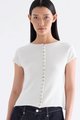 Subtle details. Made from soft and cosy knit, this top features a round neckline, button-down front and rolled hem. Worn in a slim fit.