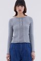 Layering essential. Made from soft and stretchy cable knit, this top features a round neckline, front buttons and a raw hem. Worn in a slim fit.