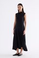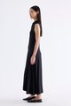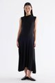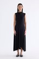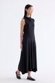Go with the flow. Made from smooth and stretchy fabric, this sleeveless maxi dress features a draped neckline, an asymmetrical waist panel and a waterfall hem. Worn in a relaxed, body-skimming fit.