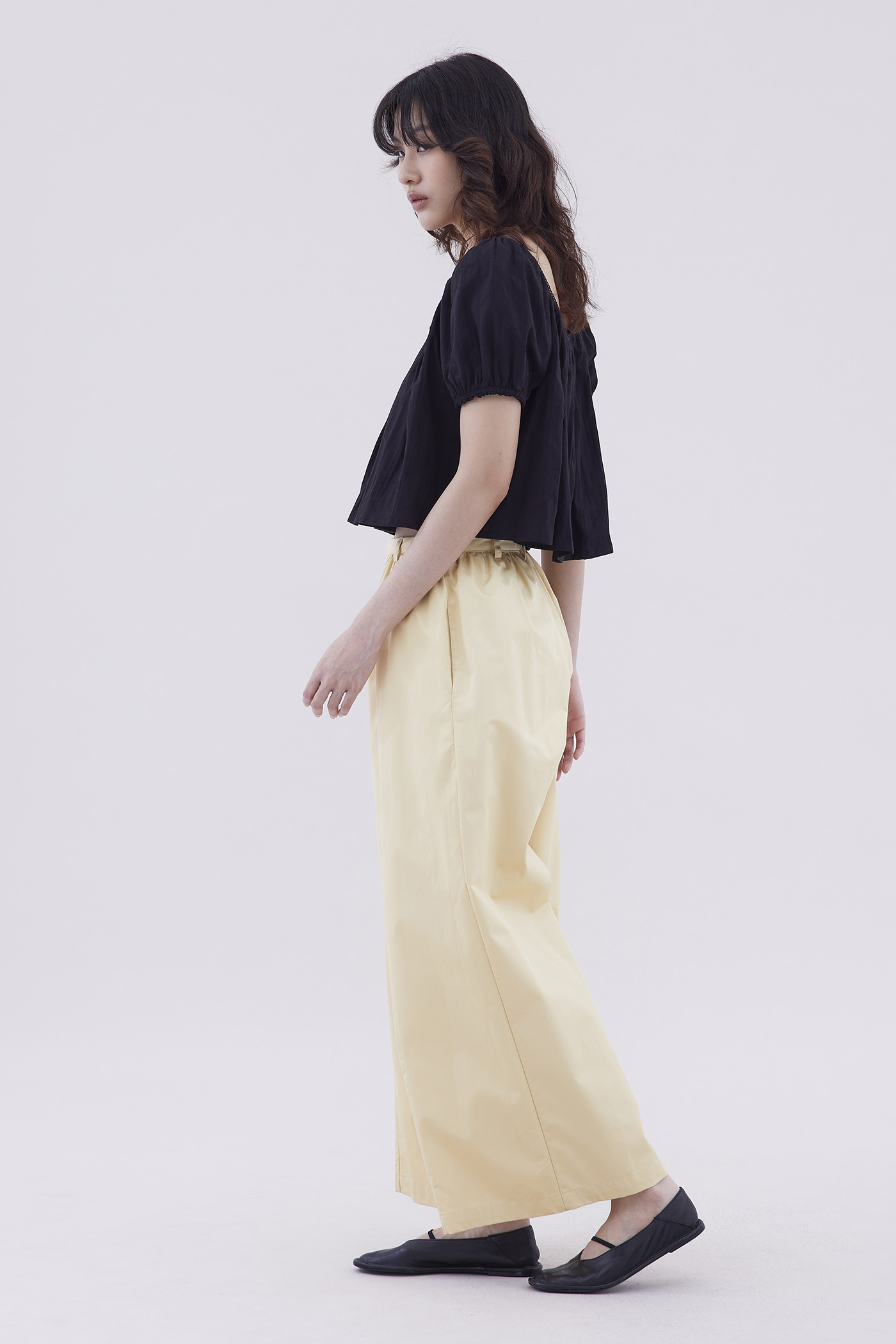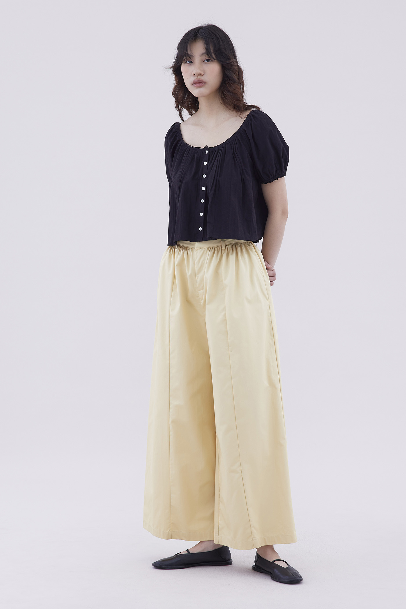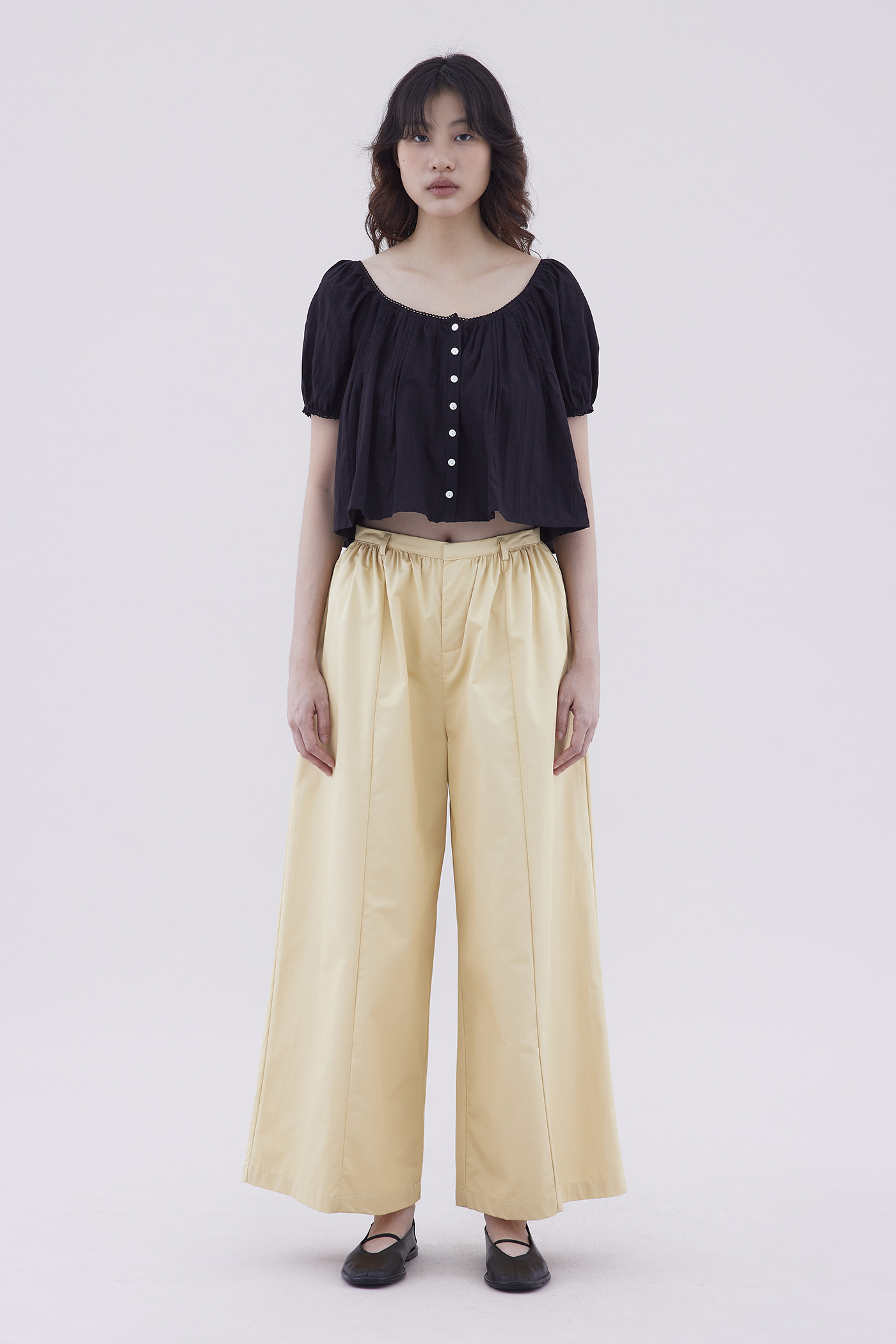 Go big or go home. Cut from crisp and softly structured cotton, these high-rise pants feature gathered wide legs, belt loops, and a front zip and buckle closure. Worn in a relaxed fit.