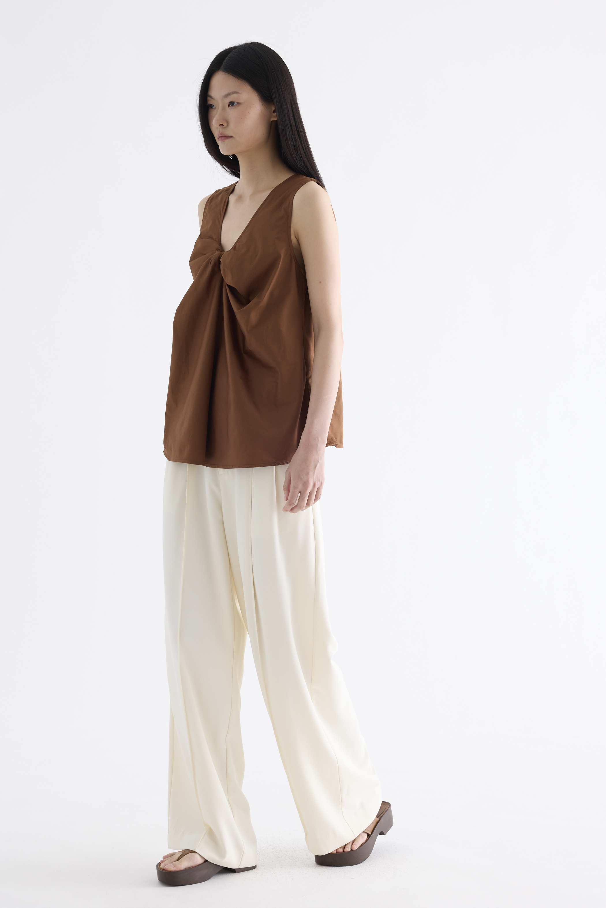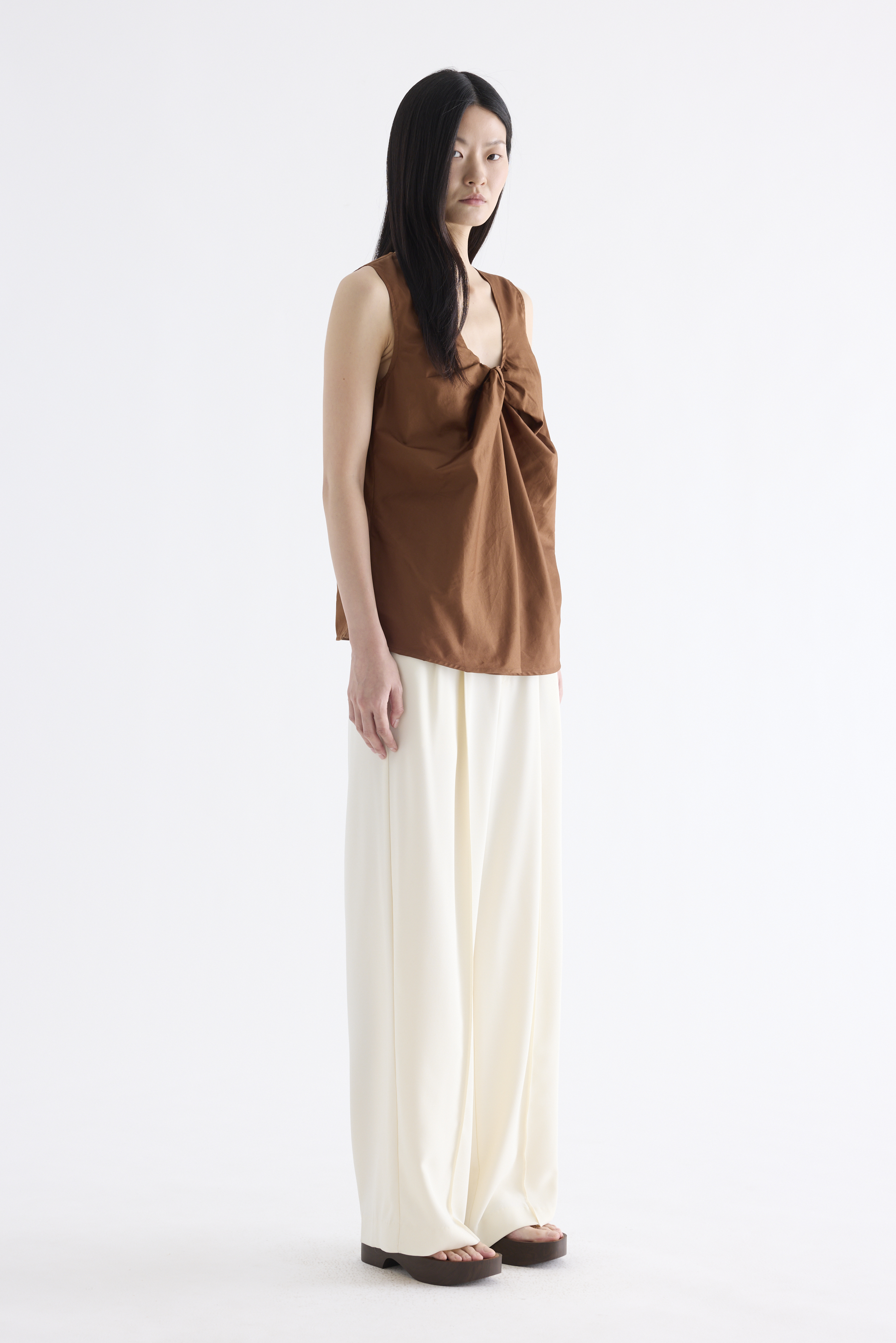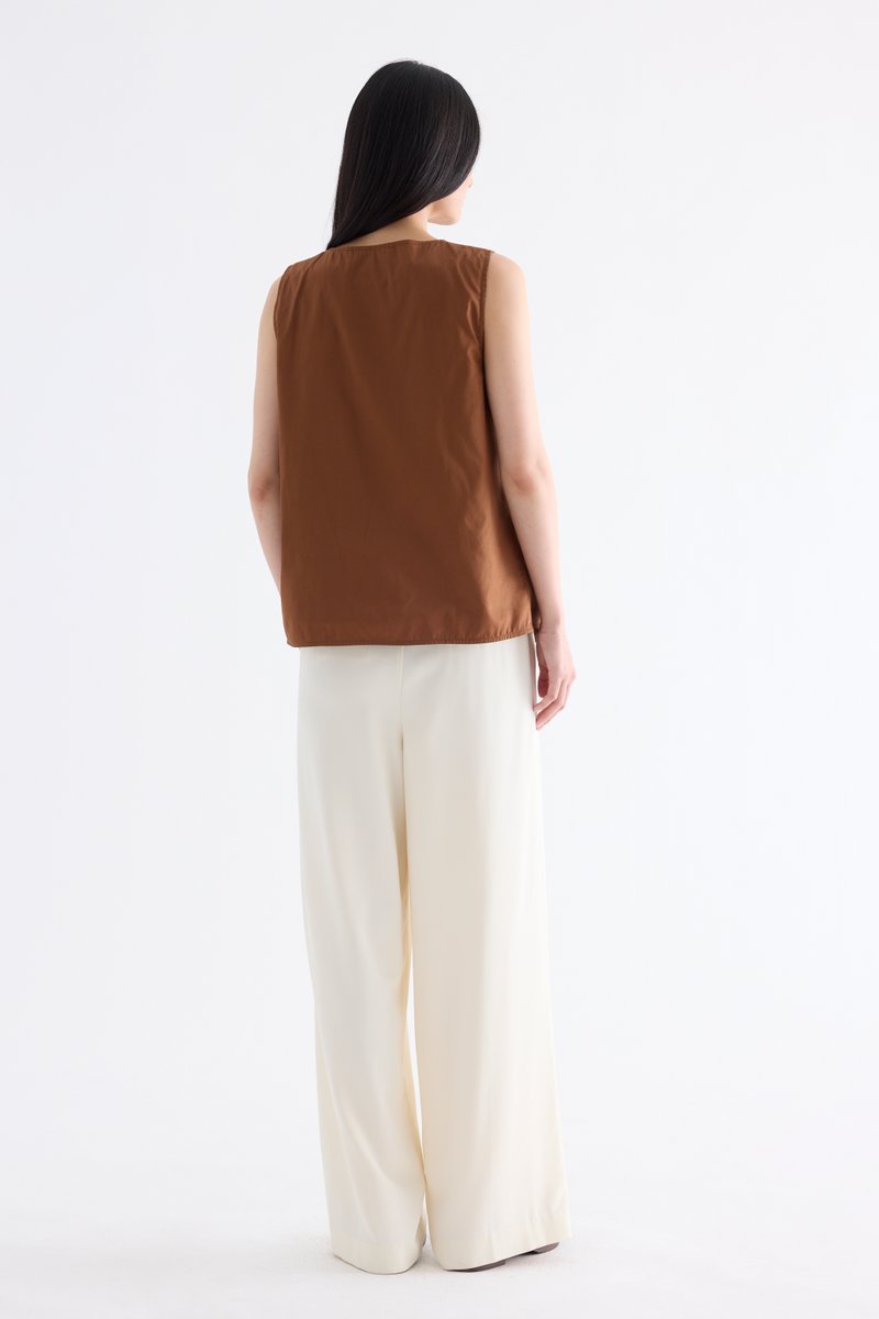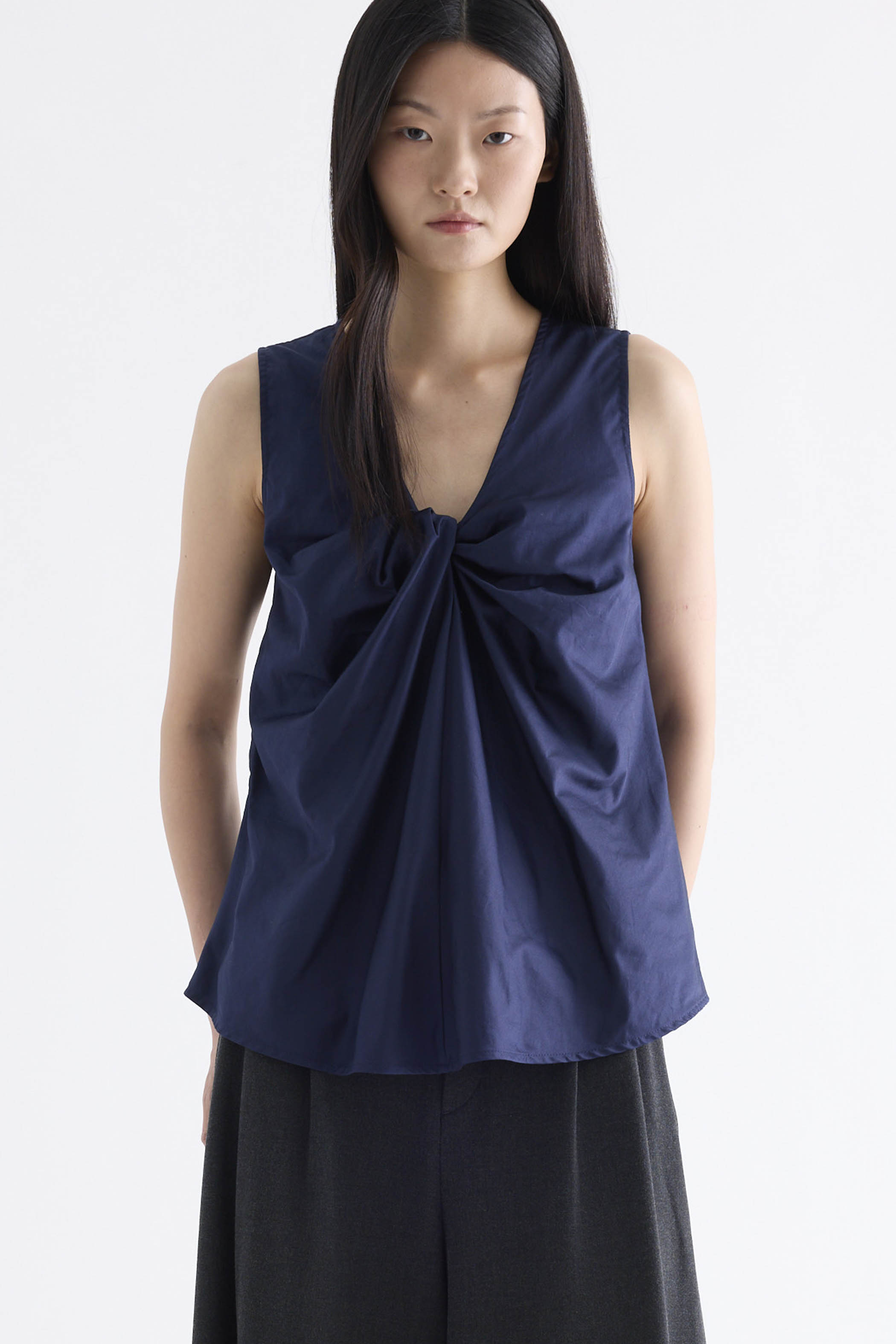 From the Postscript collection. Cut from fully lined cotton with a light and crisp finish, this sleeveless top features a V-neckline with a statement front twist, and a gently flared silhouette. Worn in a relaxed fit.