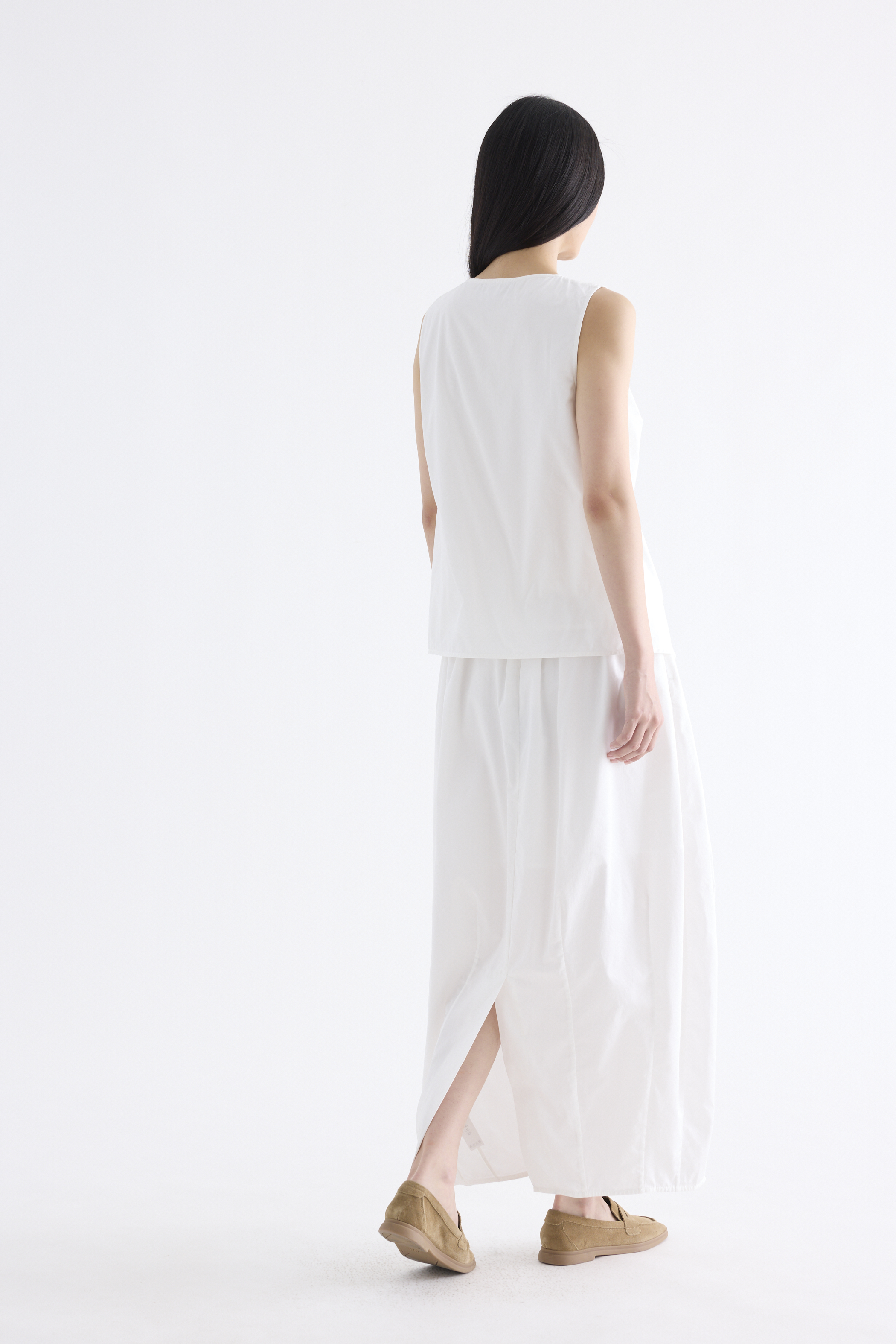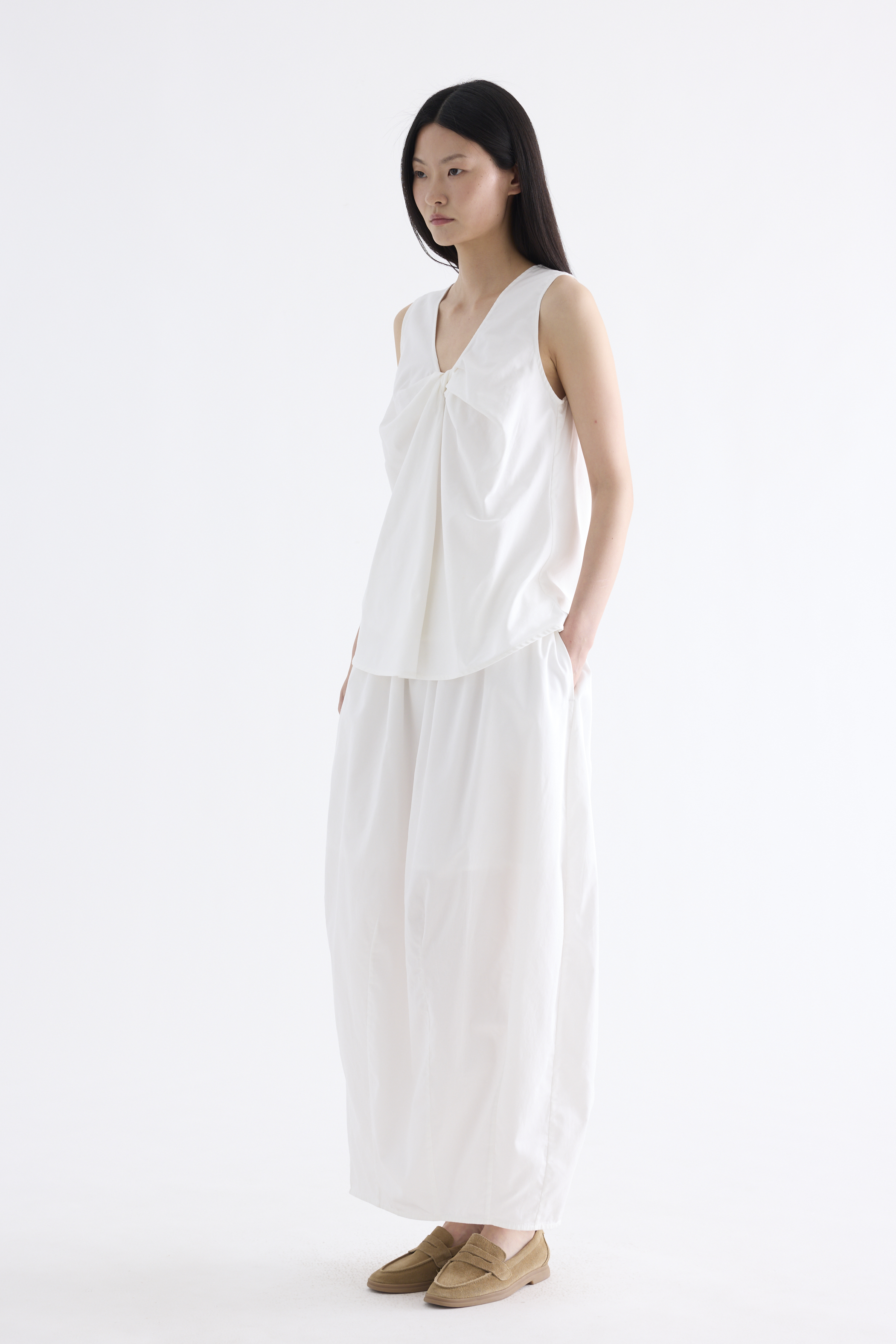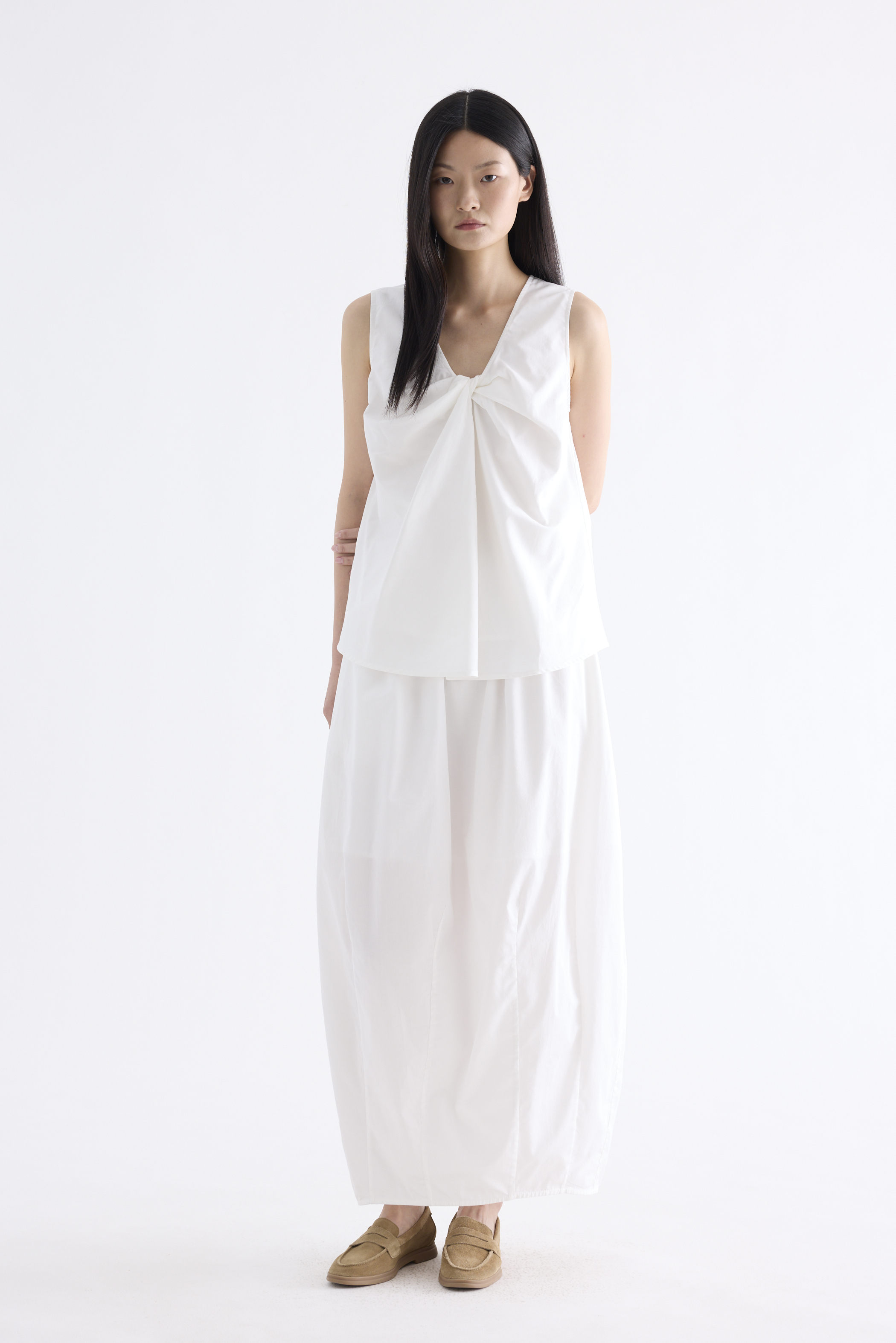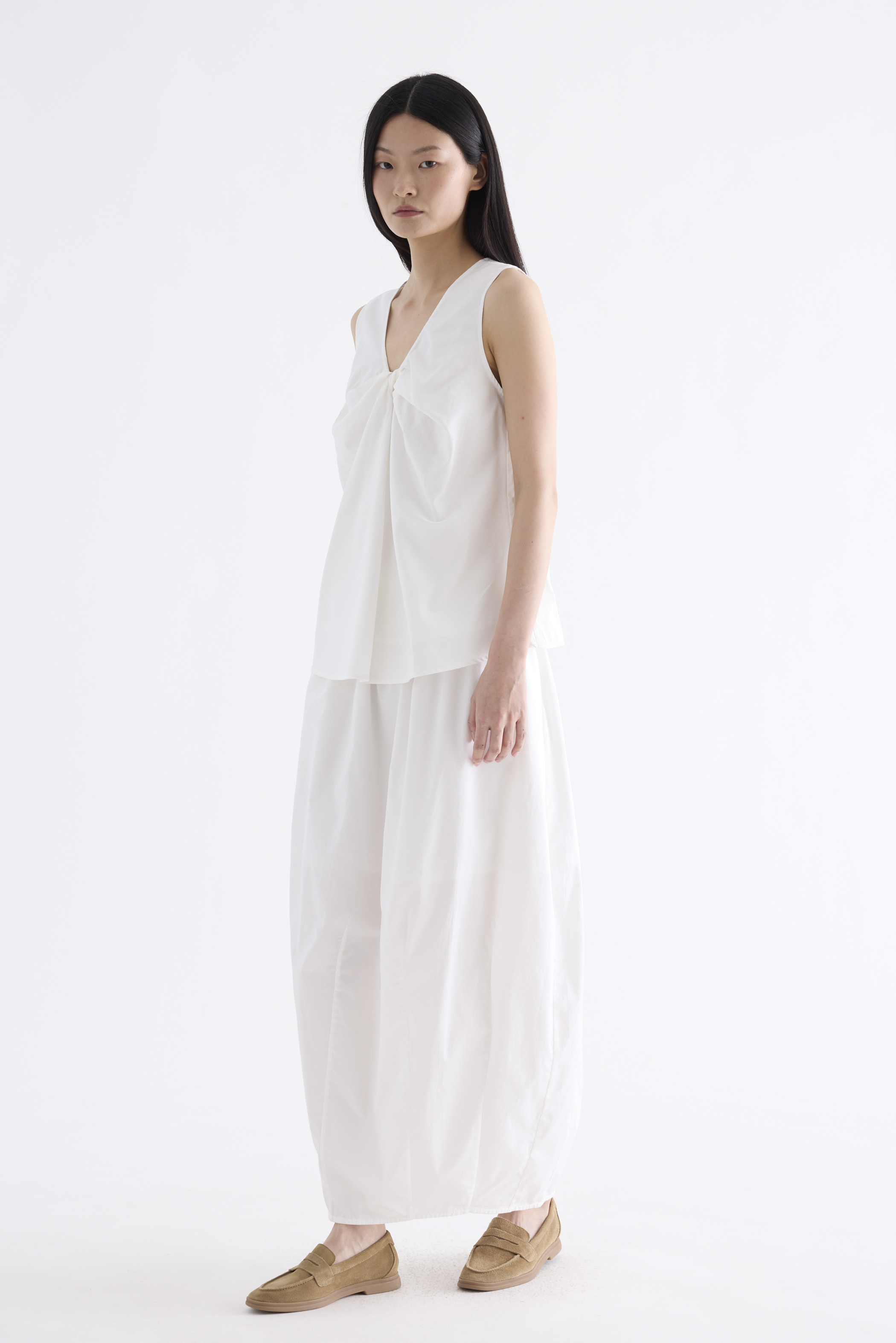 From the Postscript collection. Cut from fully lined cotton with a light and crisp finish, this sleeveless top features a V-neckline with a statement front twist, and a gently flared silhouette. Worn in a relaxed fit.