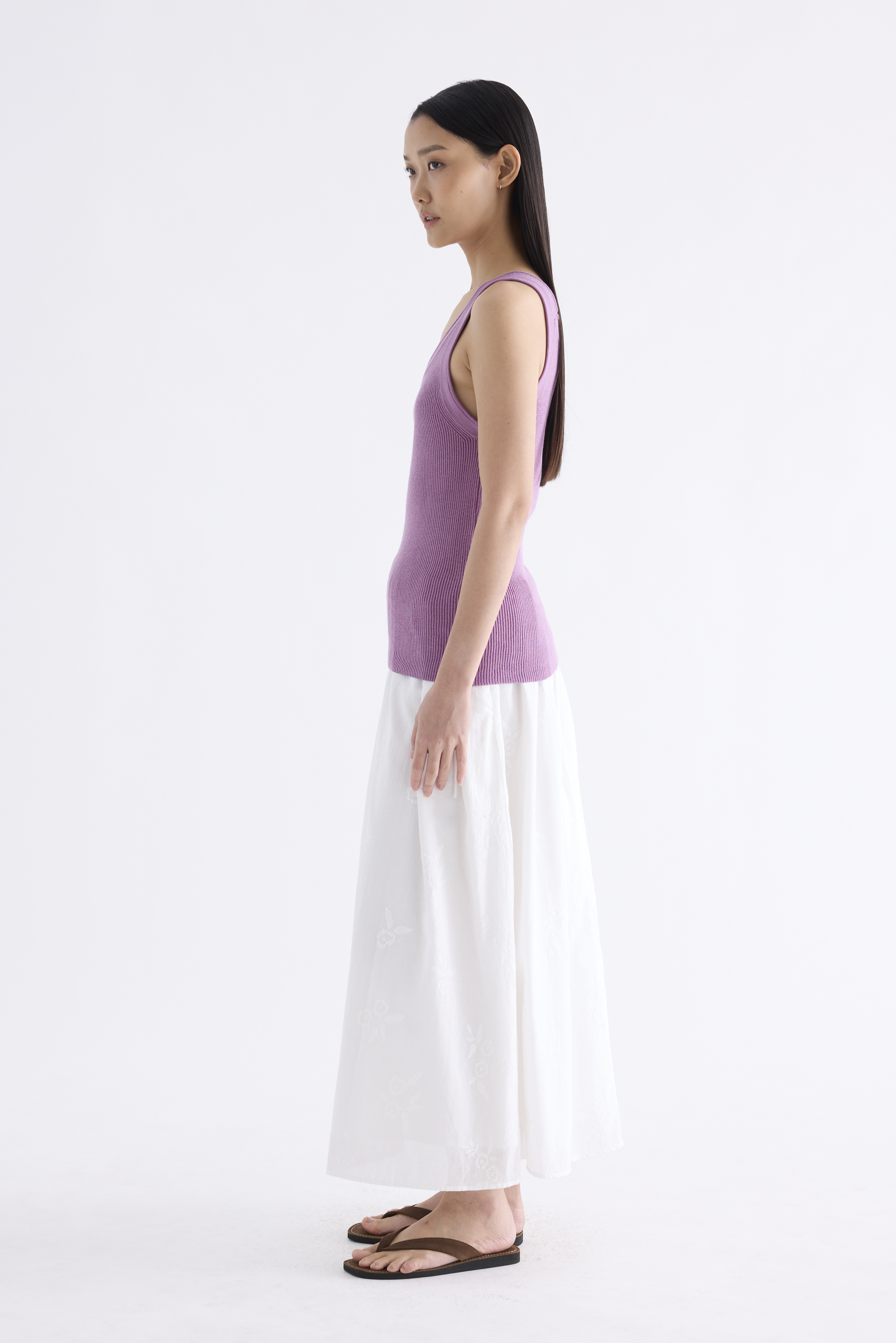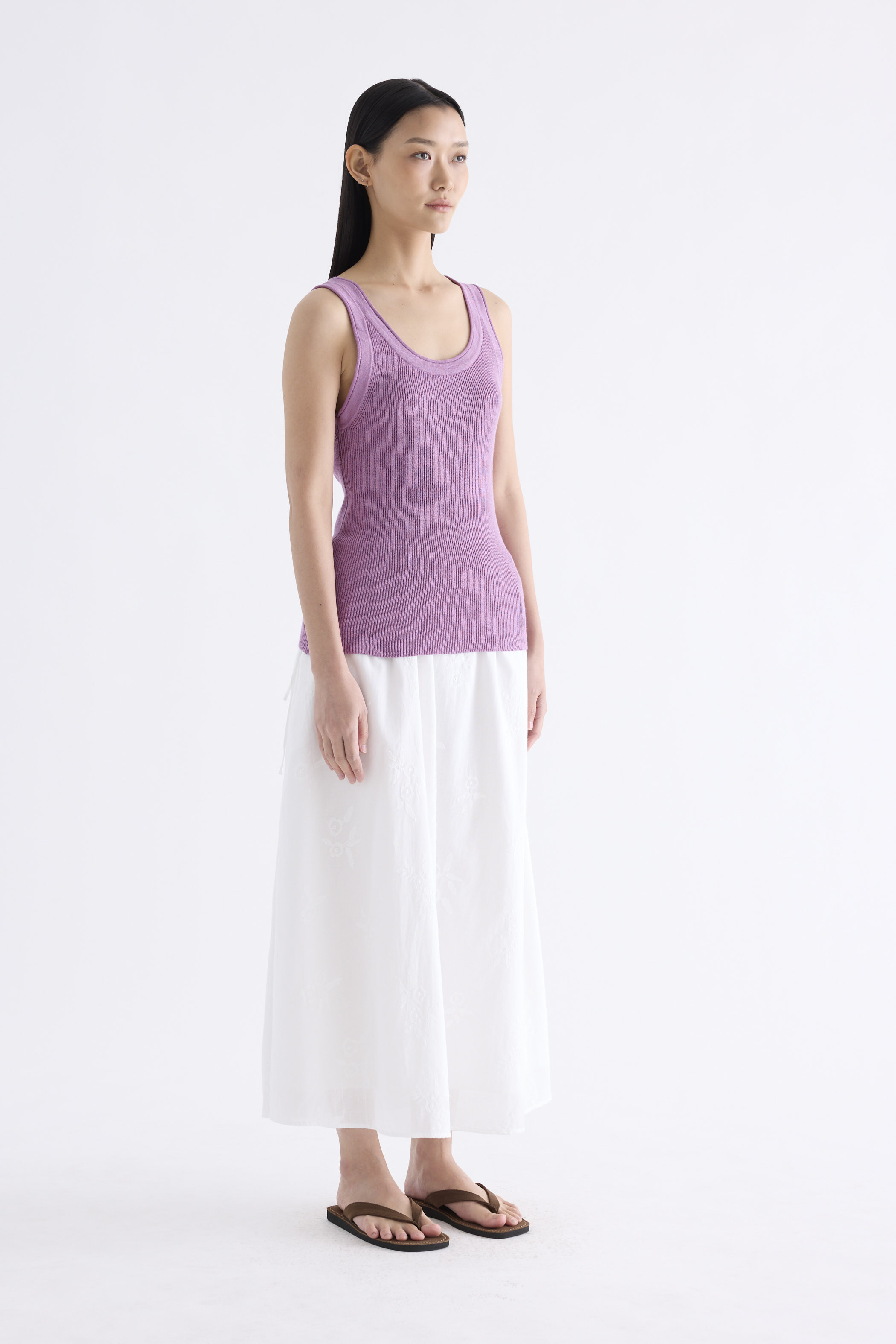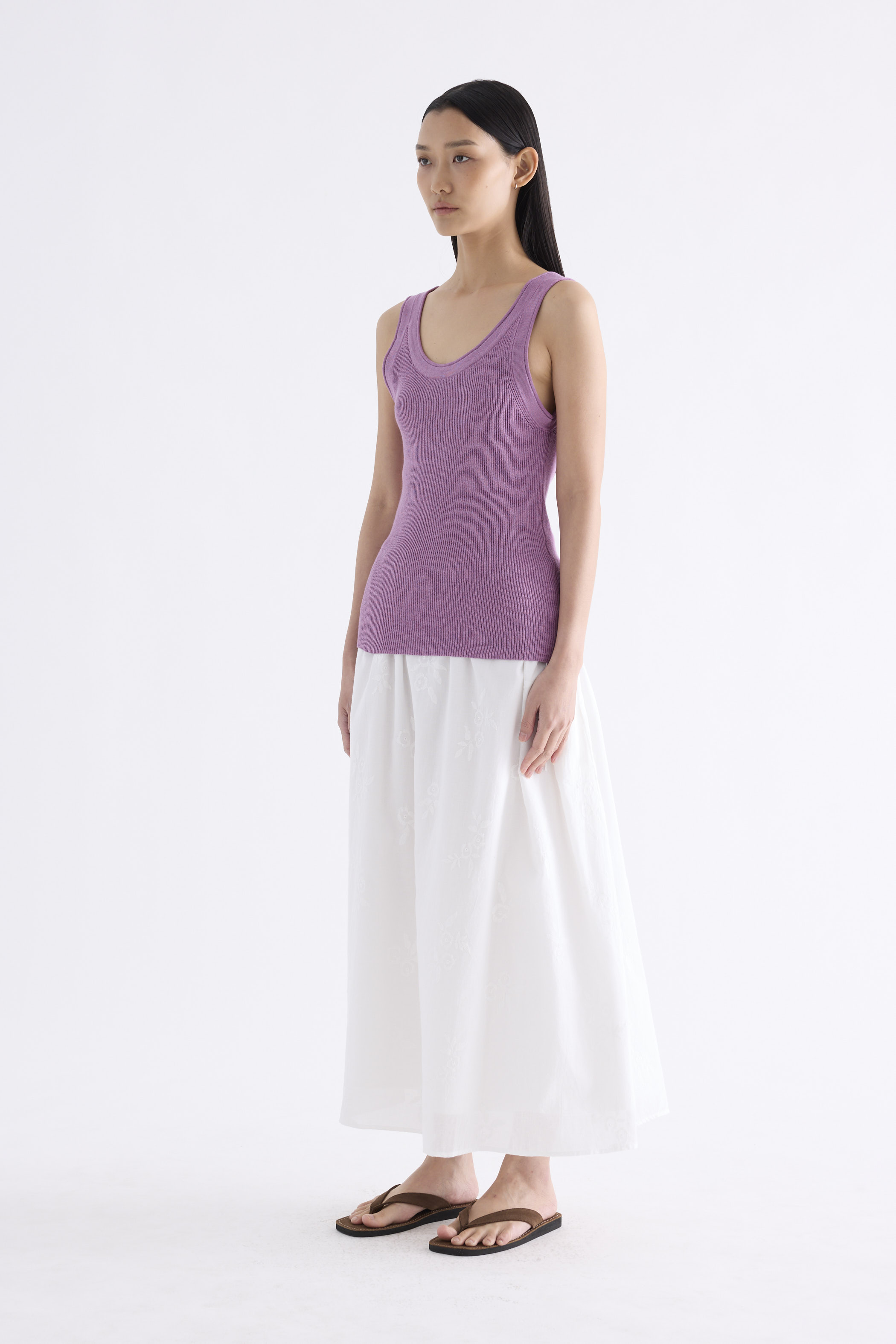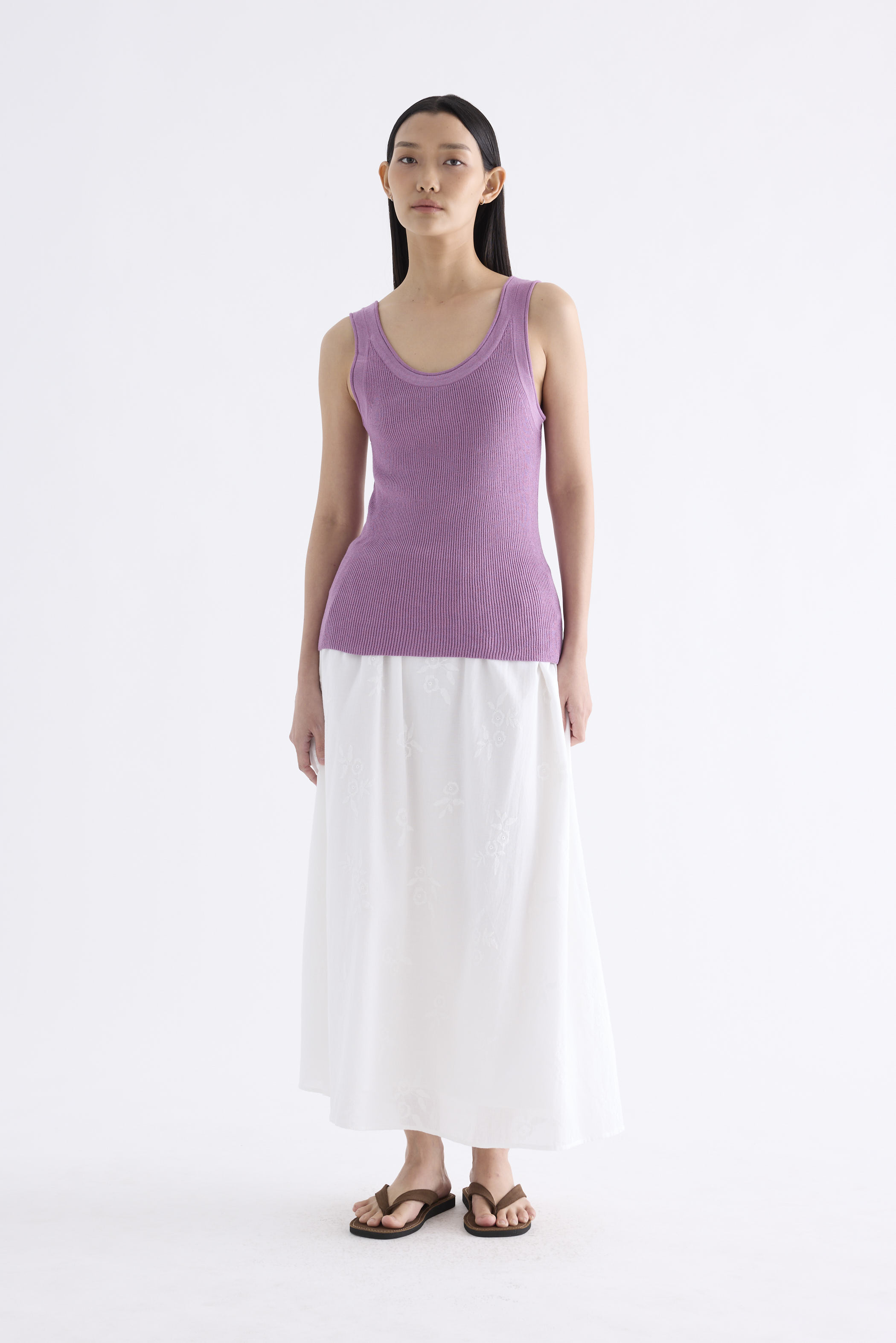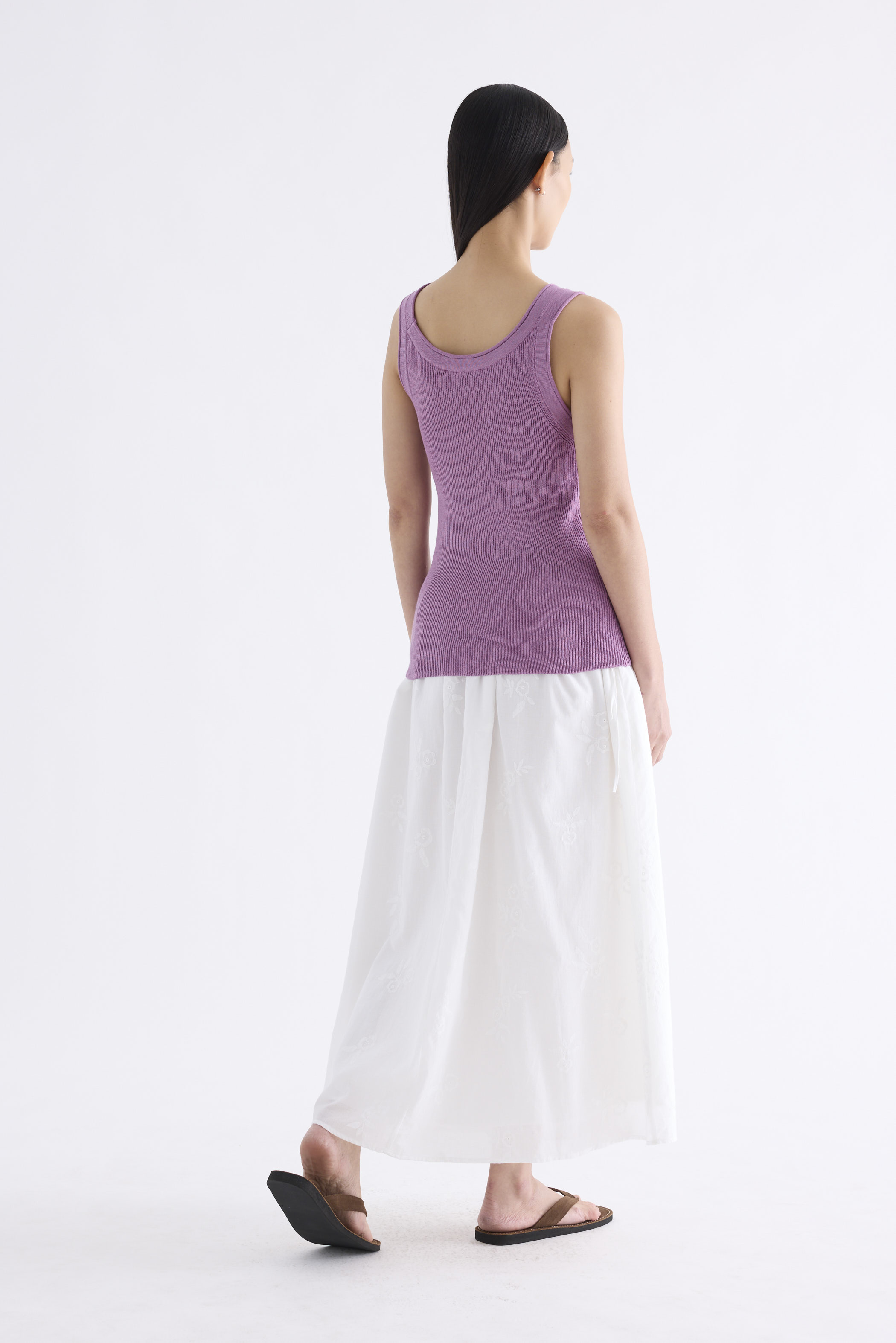Mix-and-match essential. Made from soft and ribbed knit, this sleeveless tank features a scooped neckline and fitted silhouette.