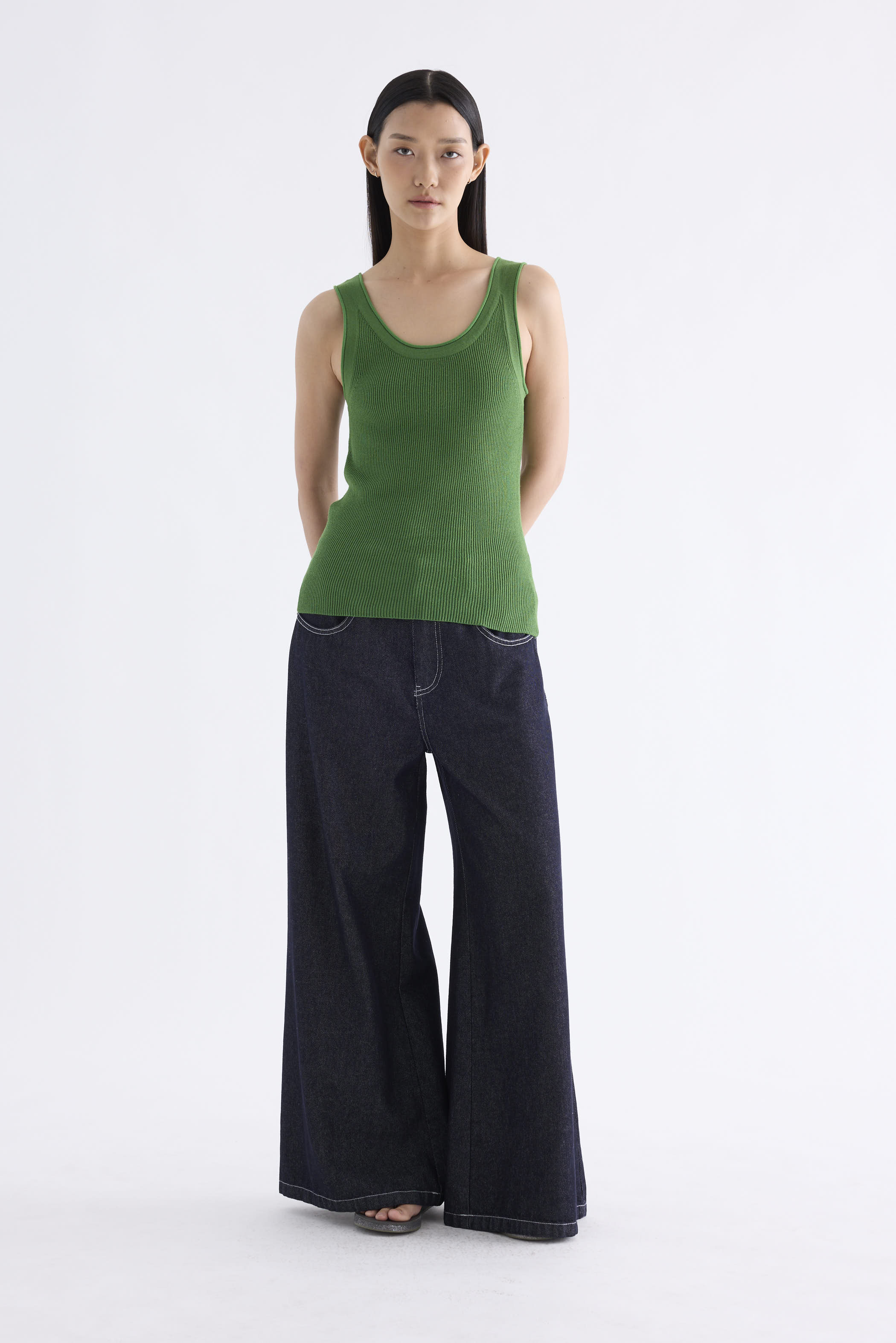 Mix-and-match essential. Made from soft and ribbed knit, this sleeveless tank features a scooped neckline and fitted silhouette.