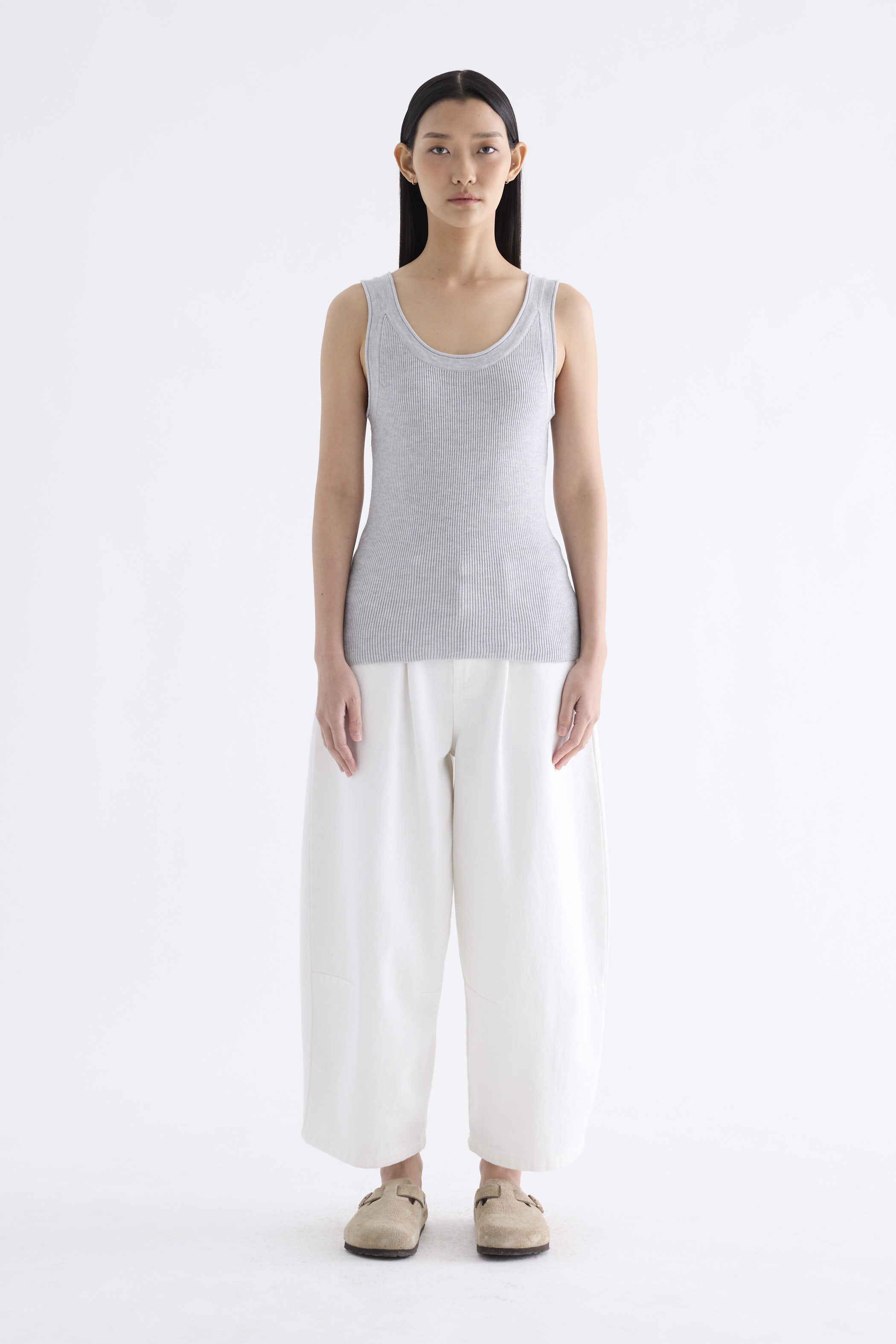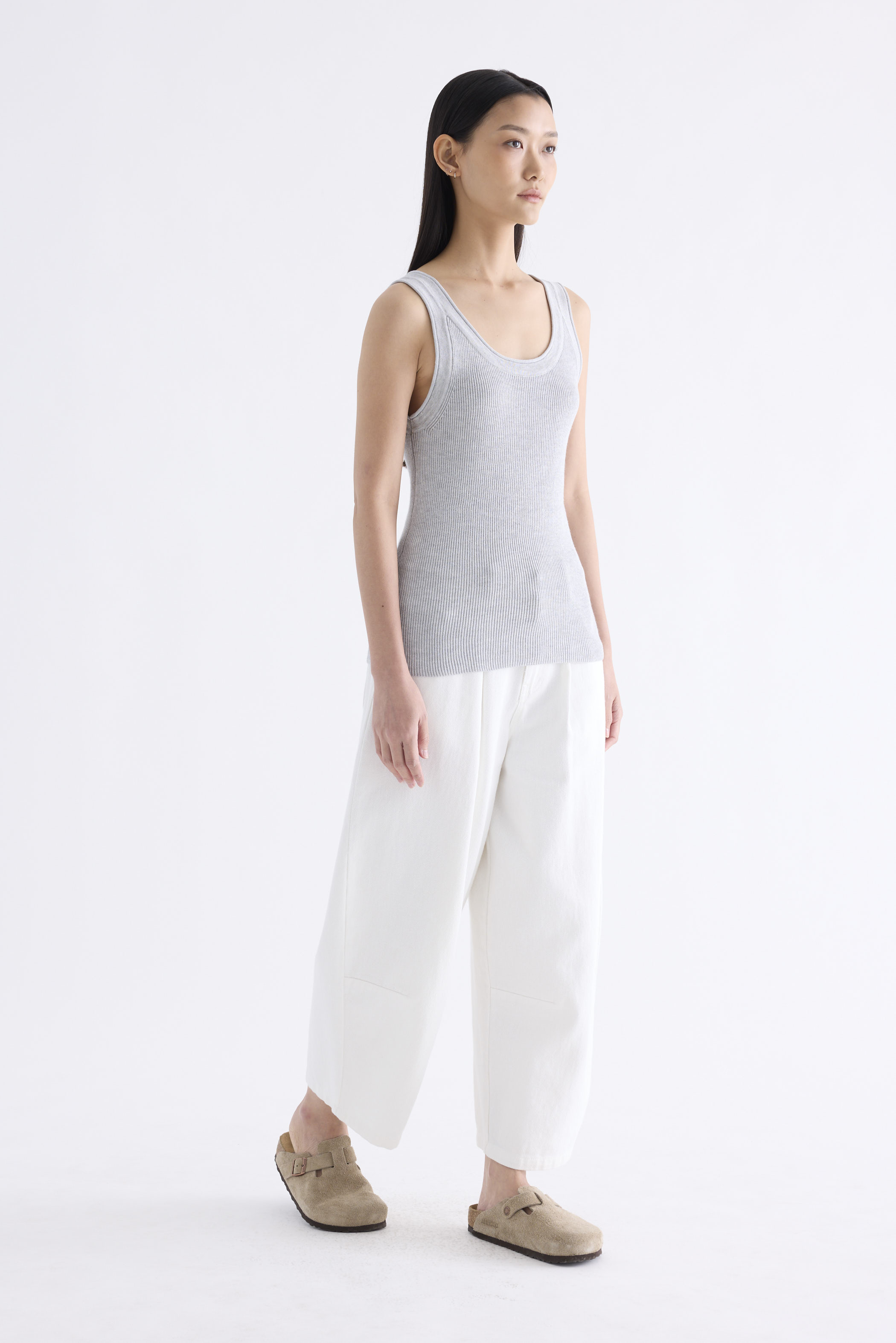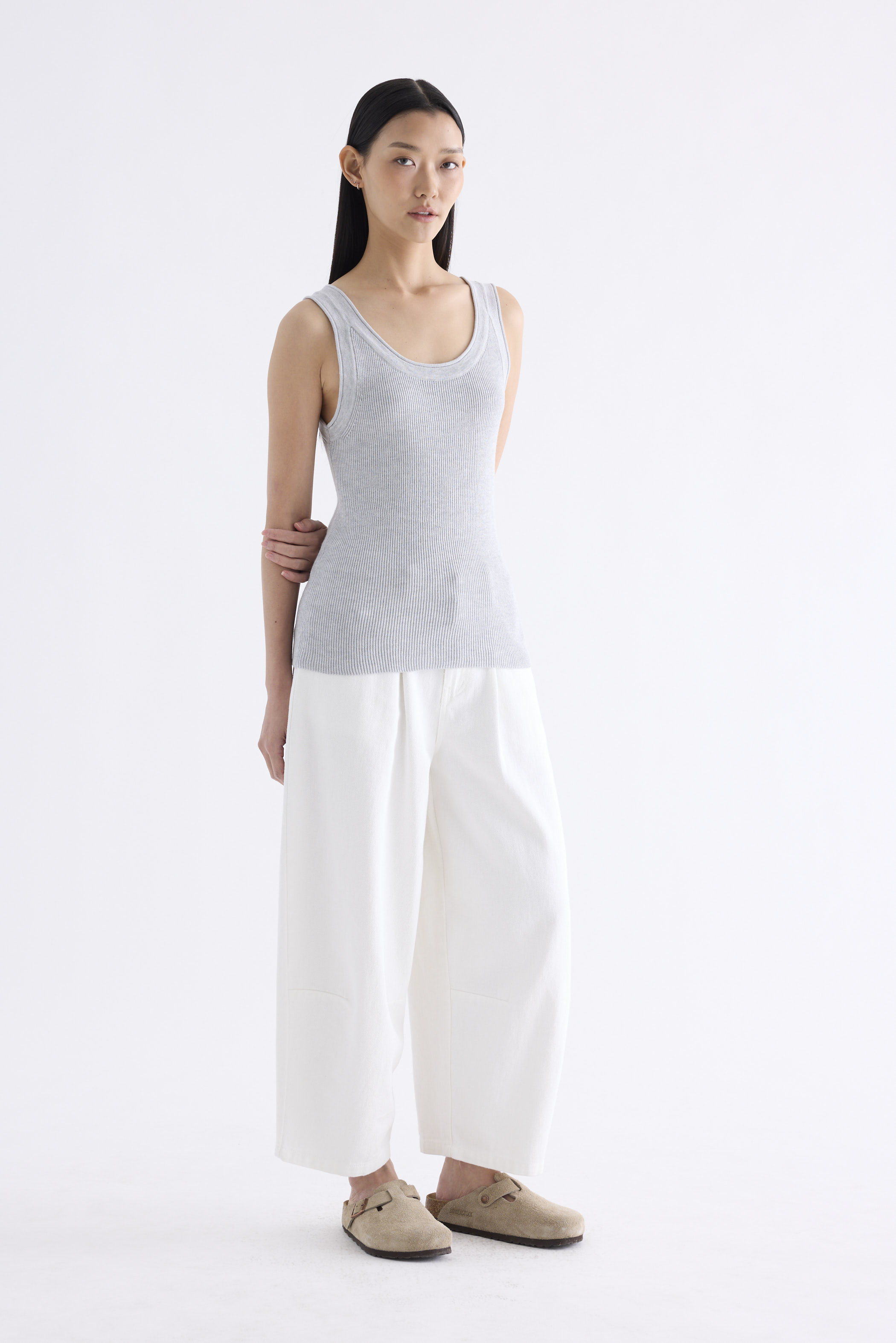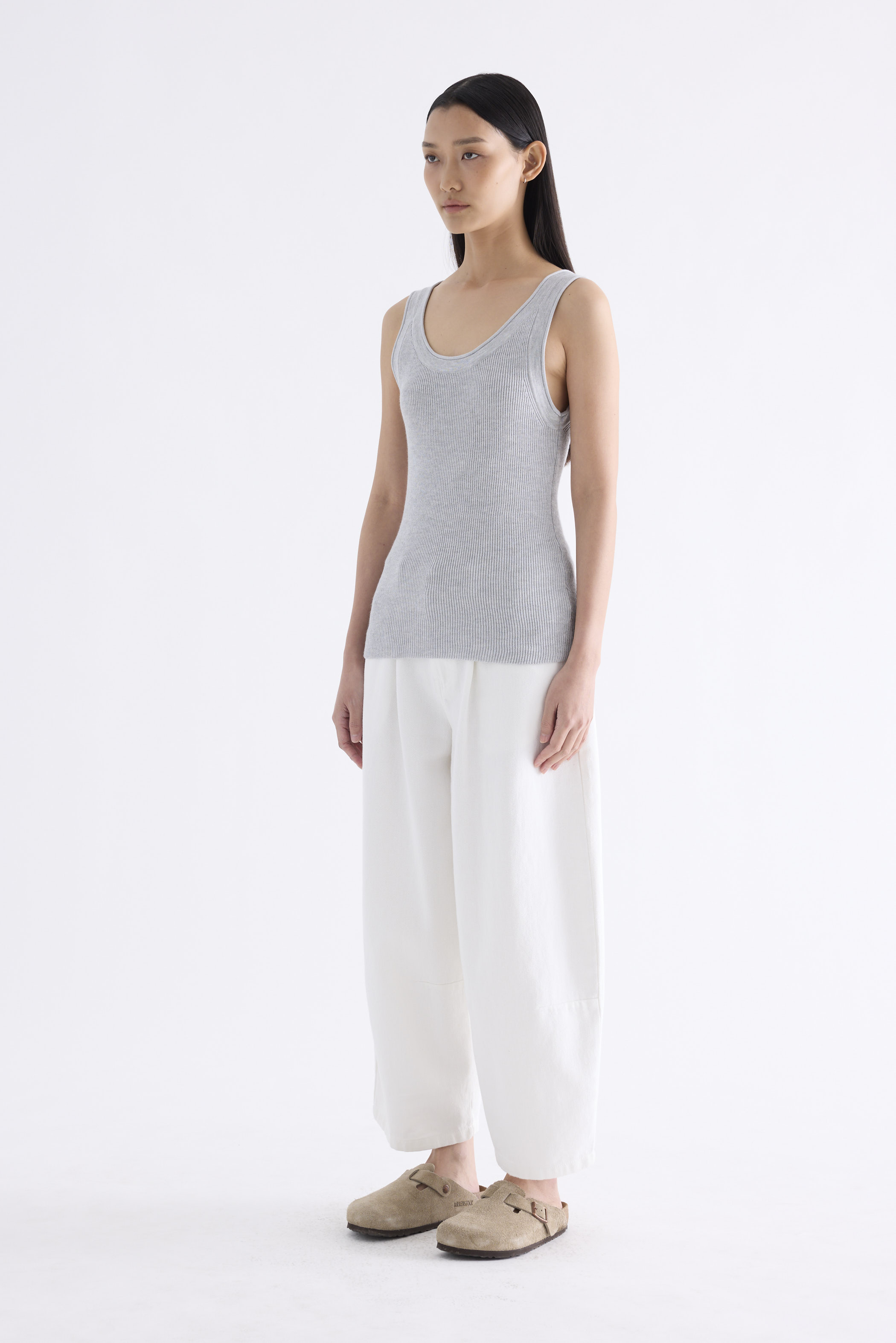 Mix-and-match essential. Made from soft and ribbed knit, this sleeveless tank features a scooped neckline and fitted silhouette.
