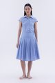 Feeling preppy. Made from crisp and softly structured cotton, this knee-length skirt features pleats, a waist tie-strap and a side zip closure. Fits slim in an A-line silhouette.