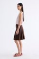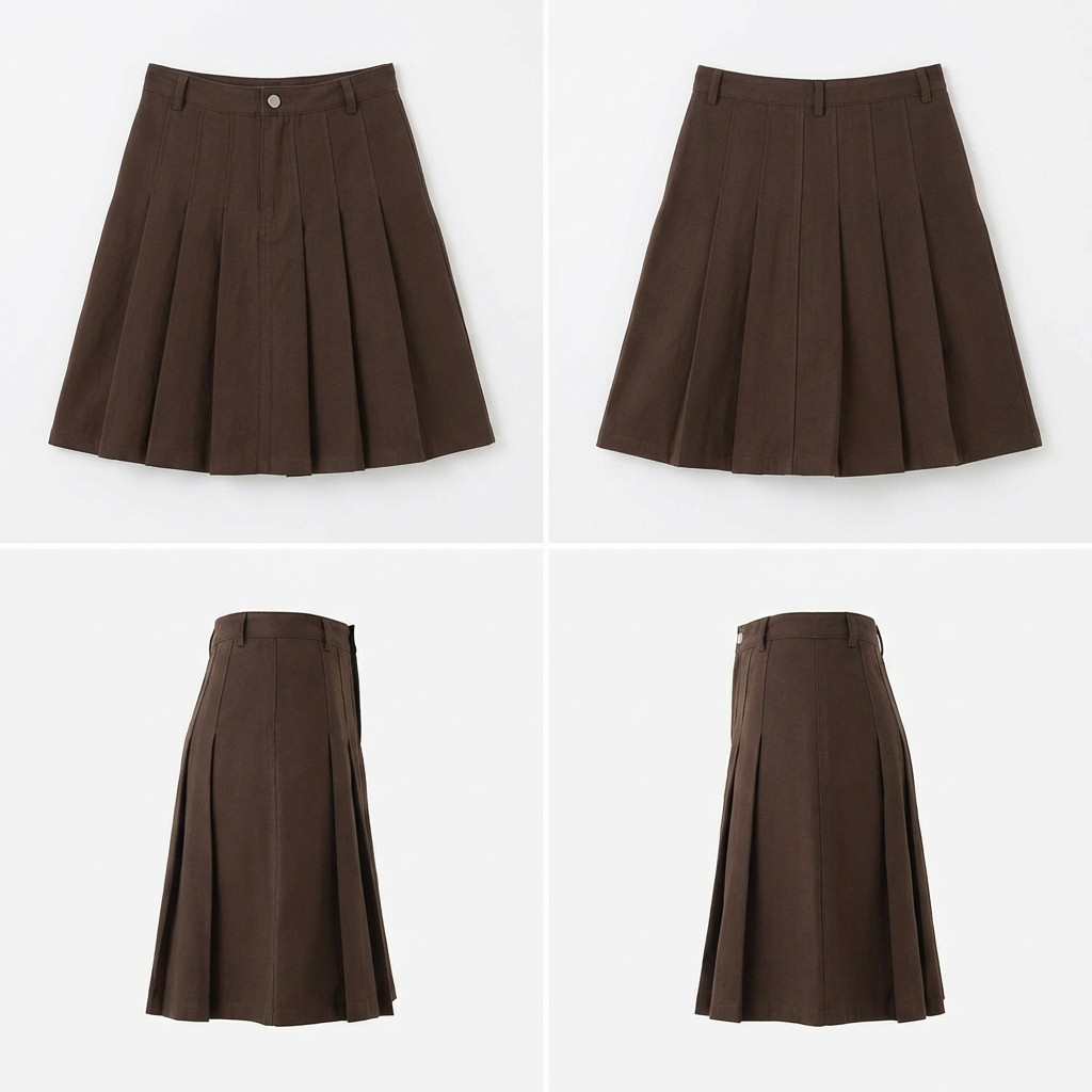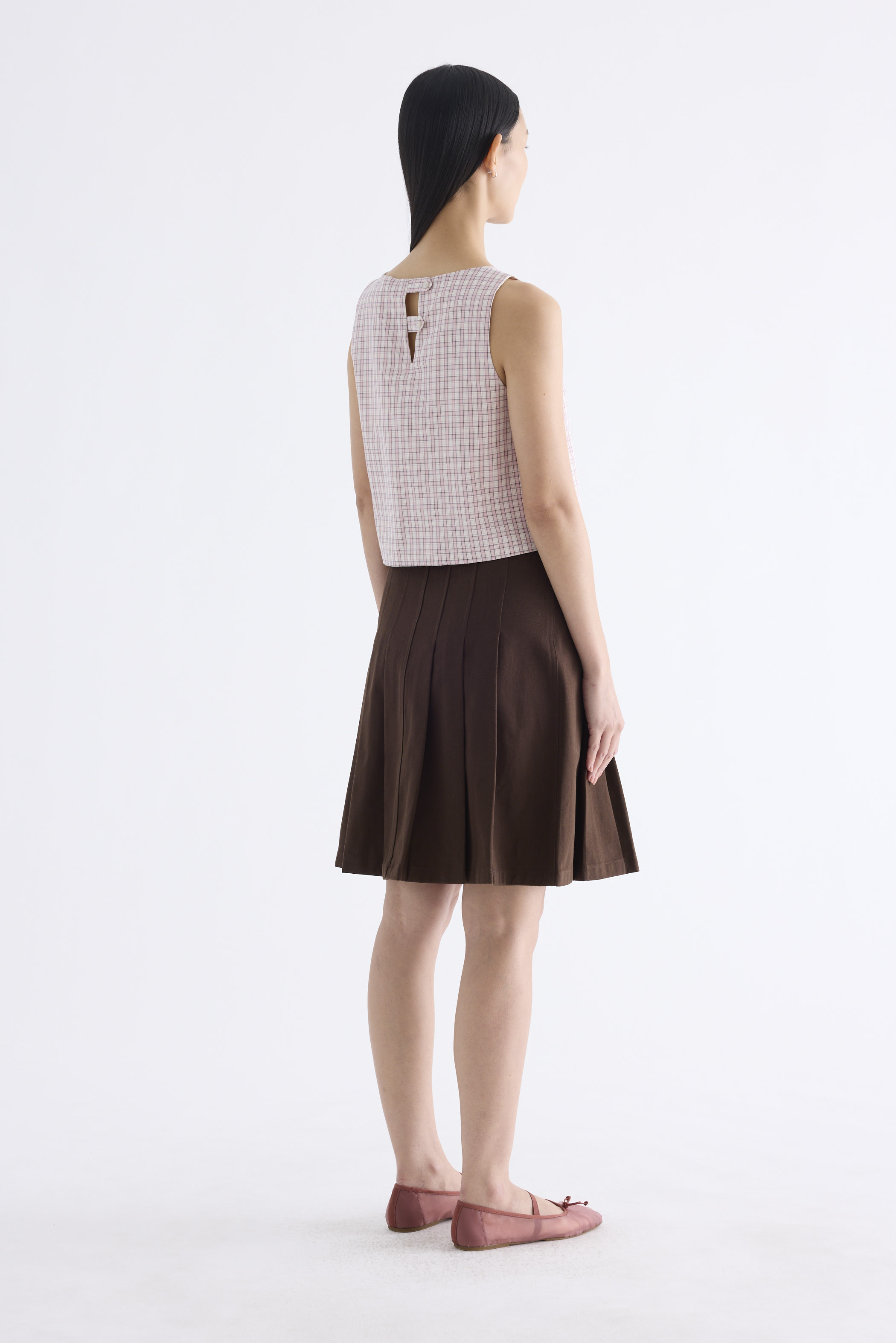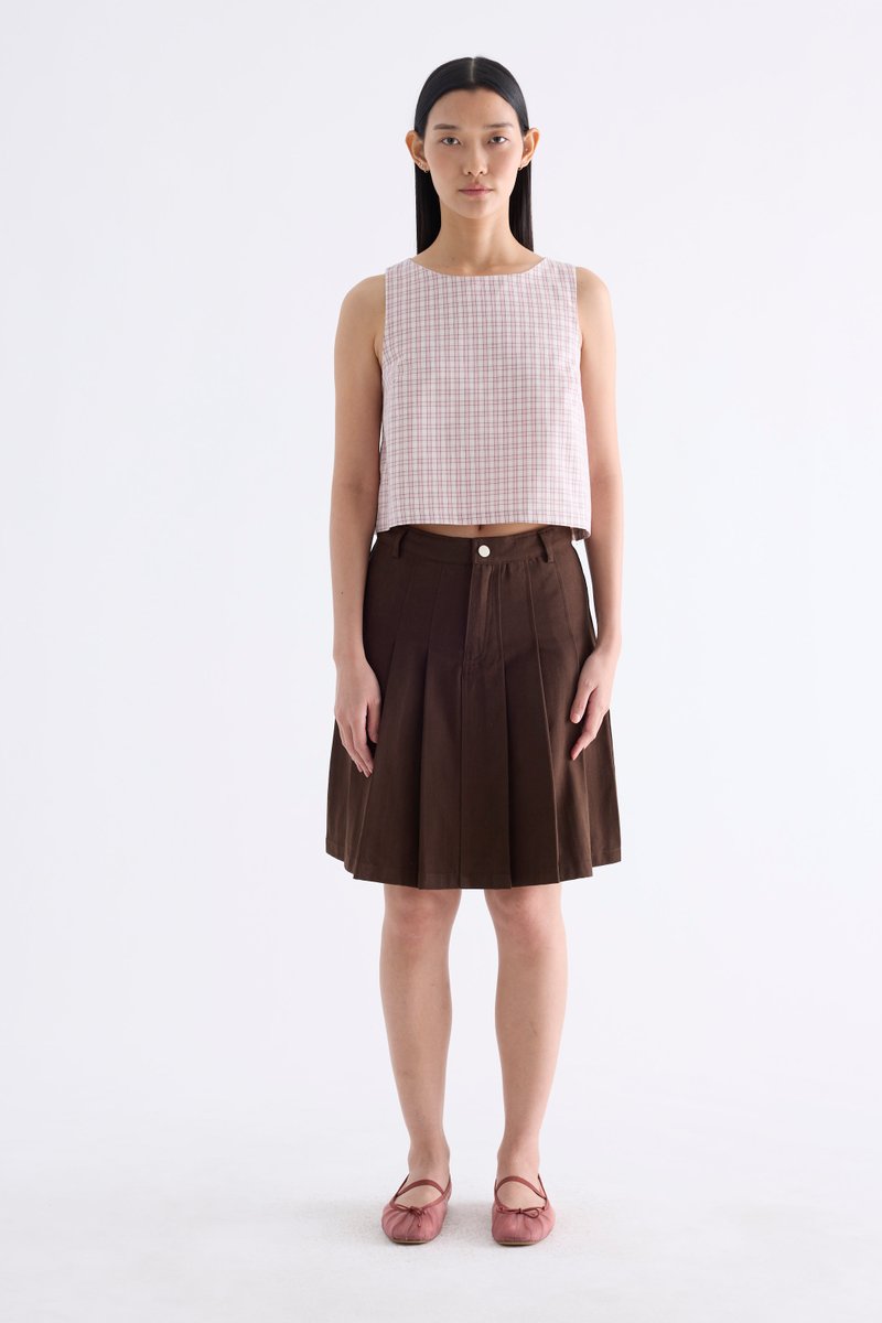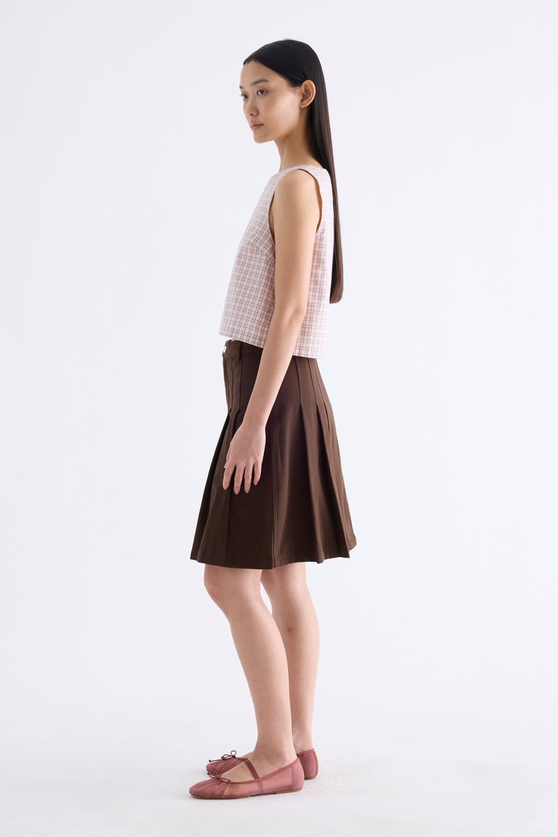 Feeling preppy. Made from softly structured cotton denim, this knee-length skirt features pleats, belt loops, and a front zip and button closure. Fits slim in an A-line silhouette.