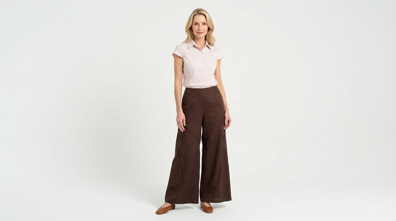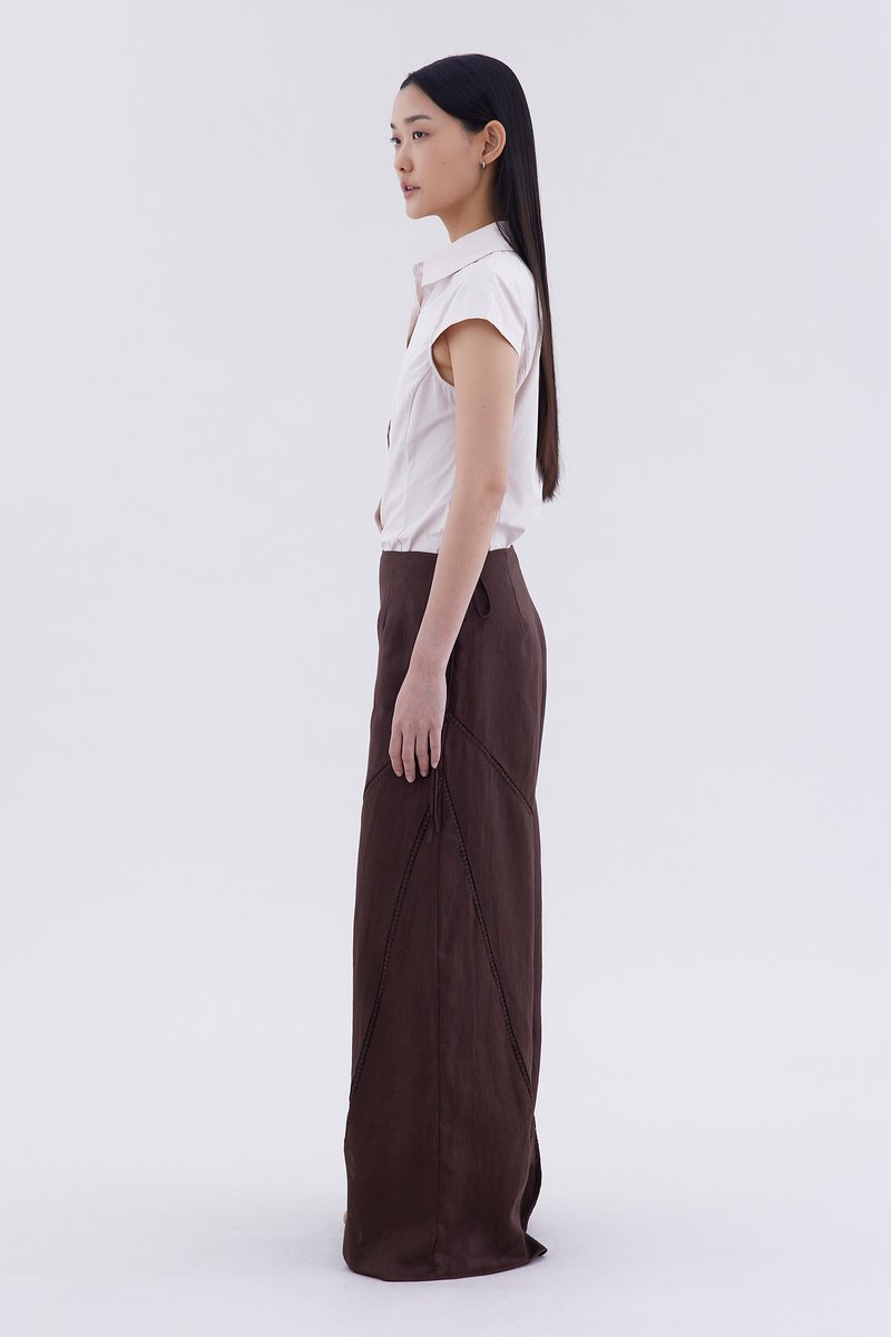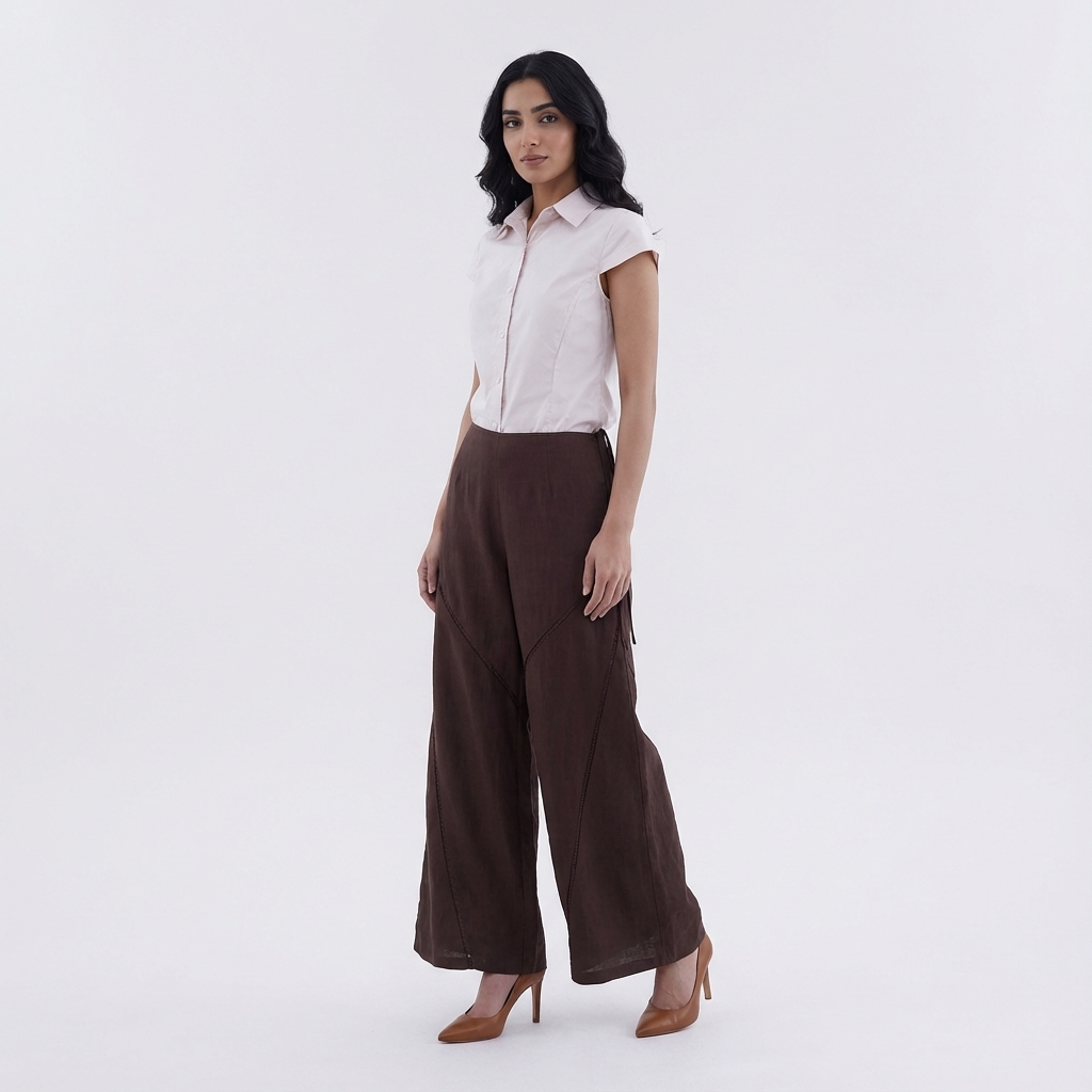 Details that count. Cut from airy and gently tailored 100% linen, these pants feature angled lace-trimmed panels, wide straight legs, as well as a seamless waist with a tie-strap and side zip closure.