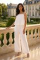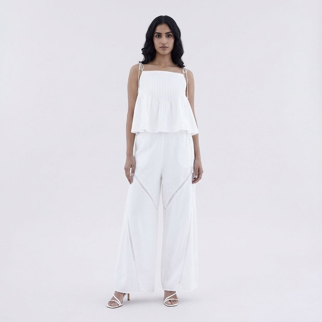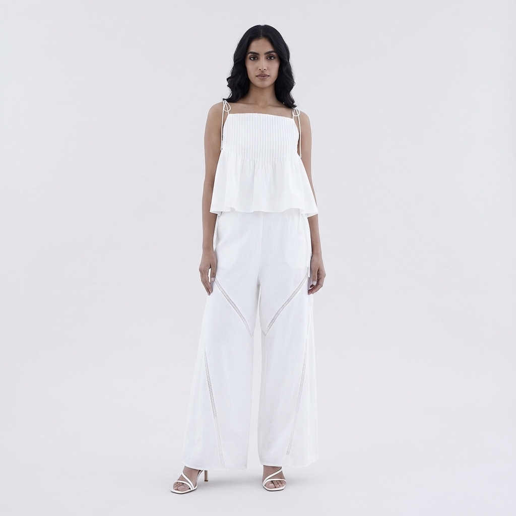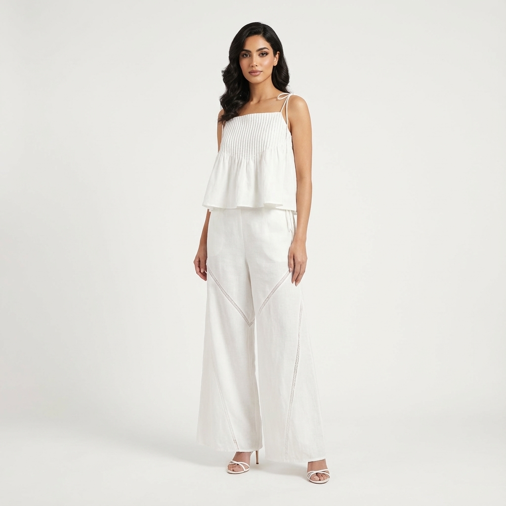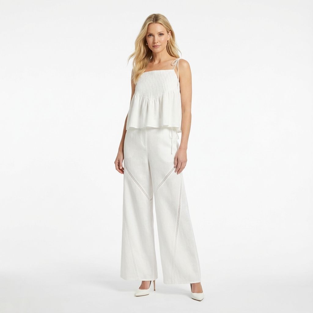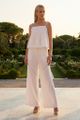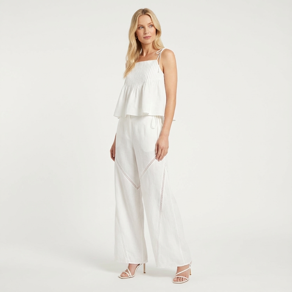 Details that count. Cut from airy and gently tailored 100% linen, these pants feature angled lace-trimmed panels, wide straight legs, as well as a seamless waist with a tie-strap and side zip closure.