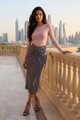 Statement details. Made from smooth and non-stretch fabric, this maxi skirt features a front twist, pleated waistband and back zip closure. Worn in a slim fit.