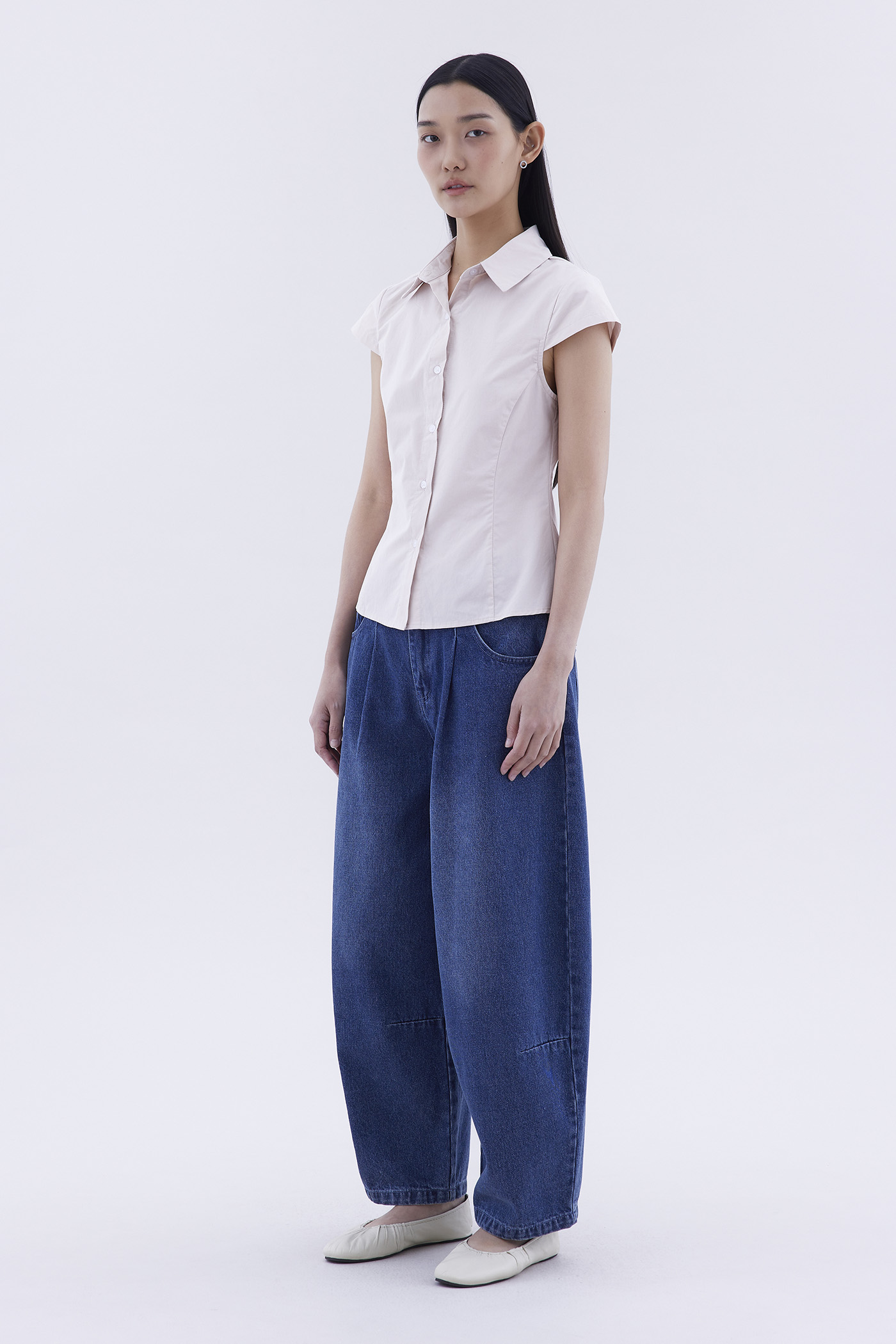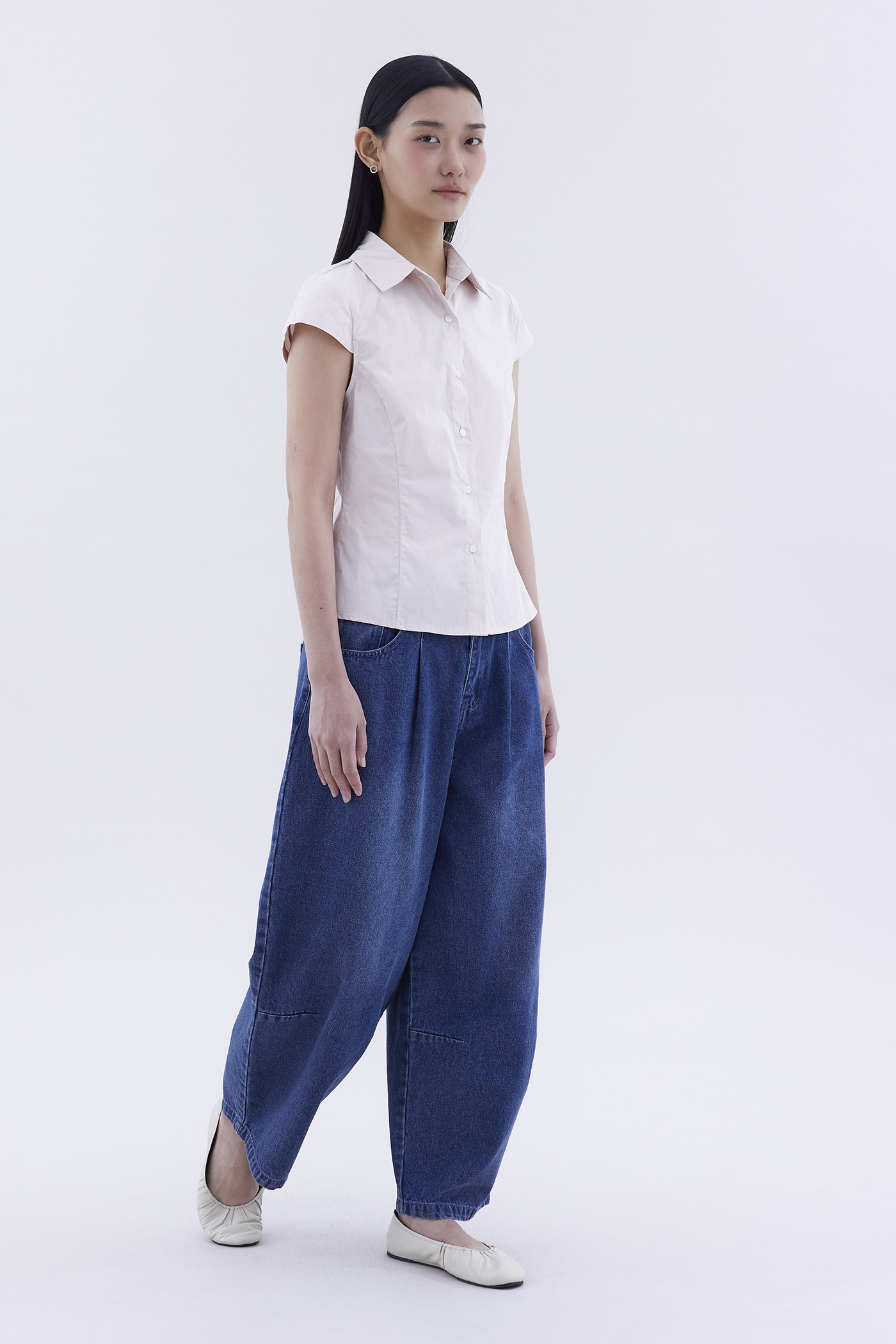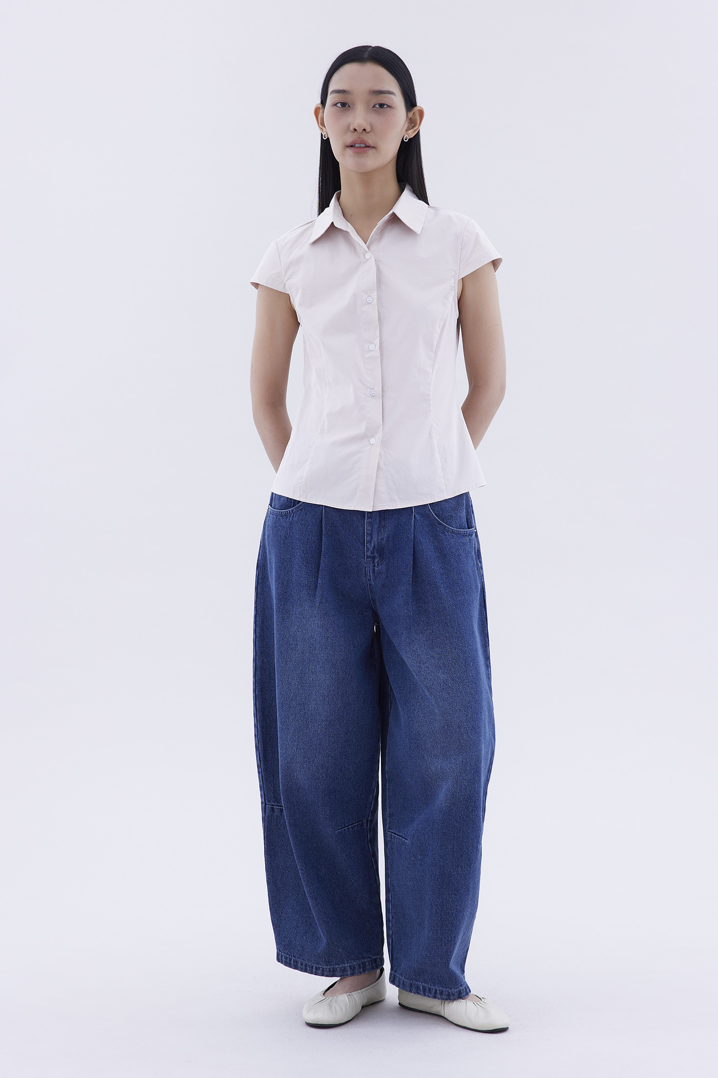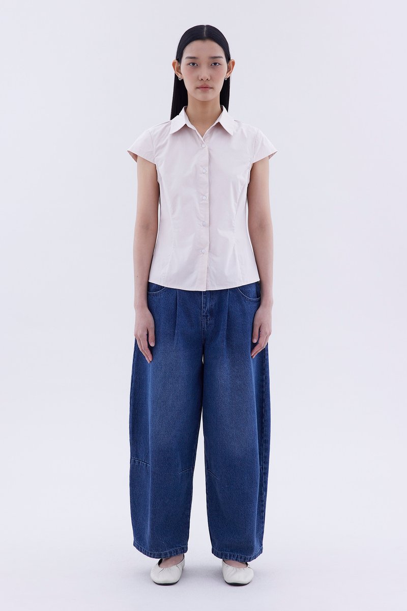 A round-the-clock staple. Made from crisp and gently tailored cotton, this collared shirt features short cap sleeves and a button-down front. Worn in a slim fit.