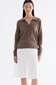 Snug enough. Made from soft and cosy knit, this sweater top features a collared V-neckline and slim fit.