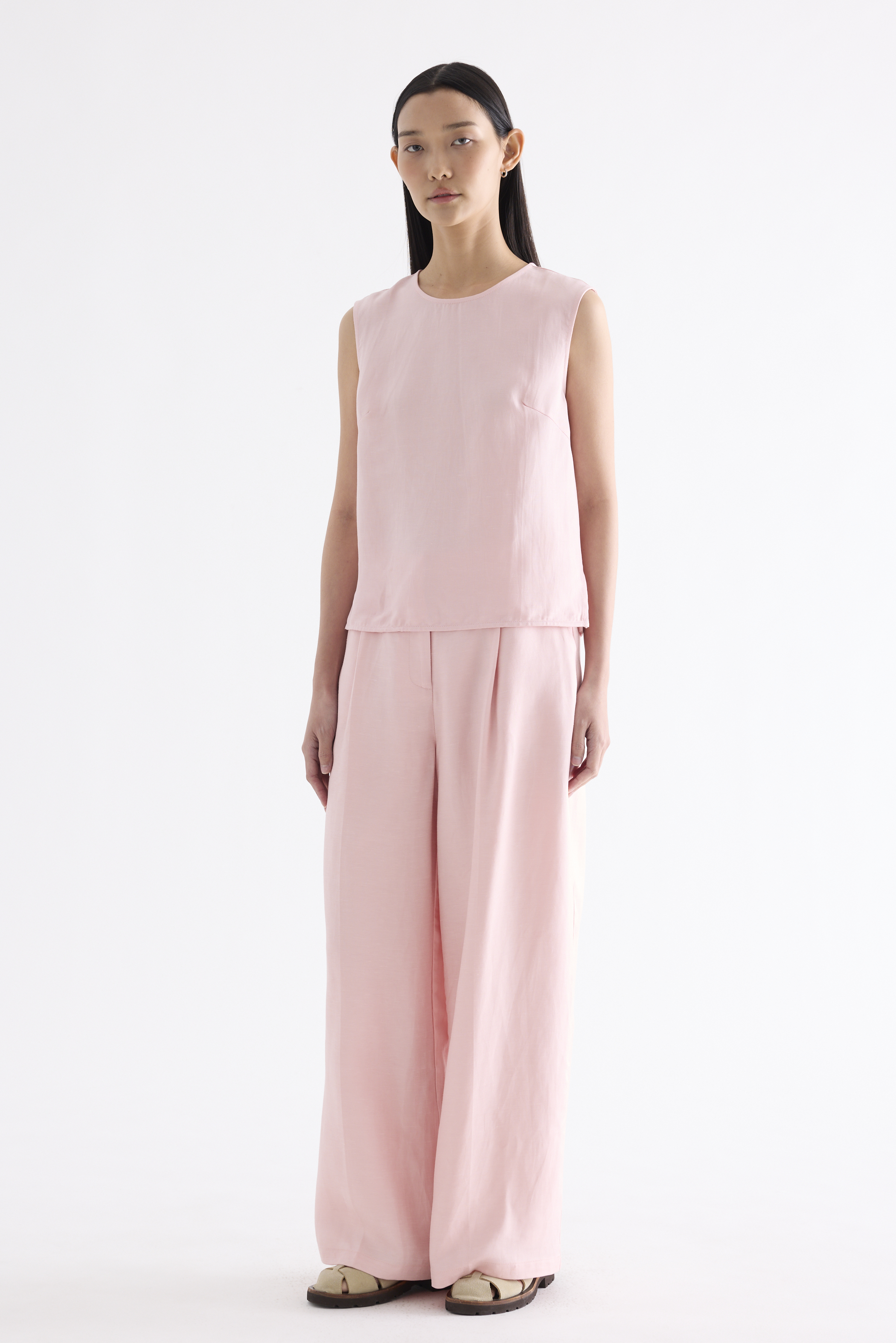 A mix-and-match favourite. Cut from light and softly tailored fabric, this sleeveless top features a round neckline, side splits and a back keyhole opening with a tie-strap closure. Worn in a relaxed fit.