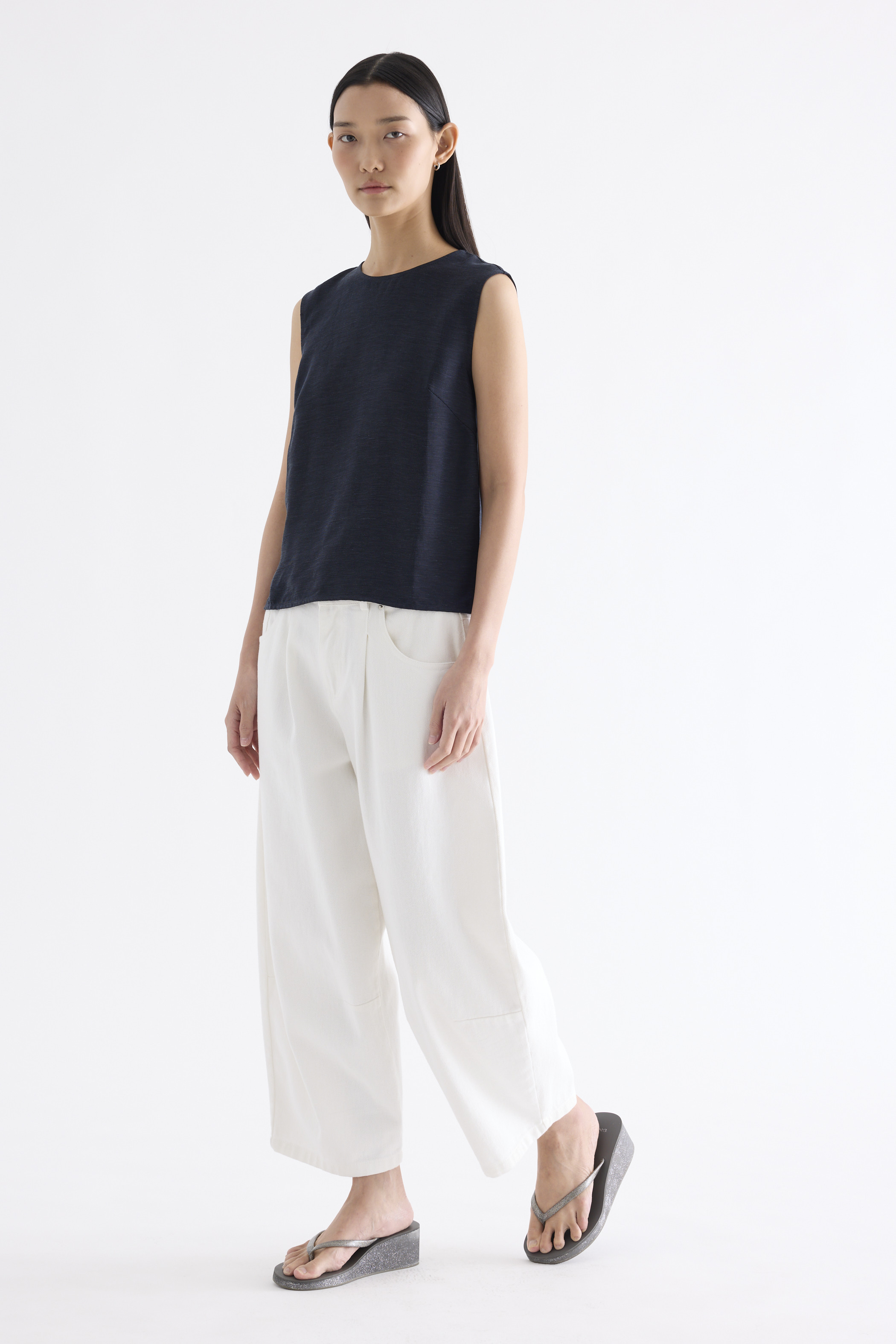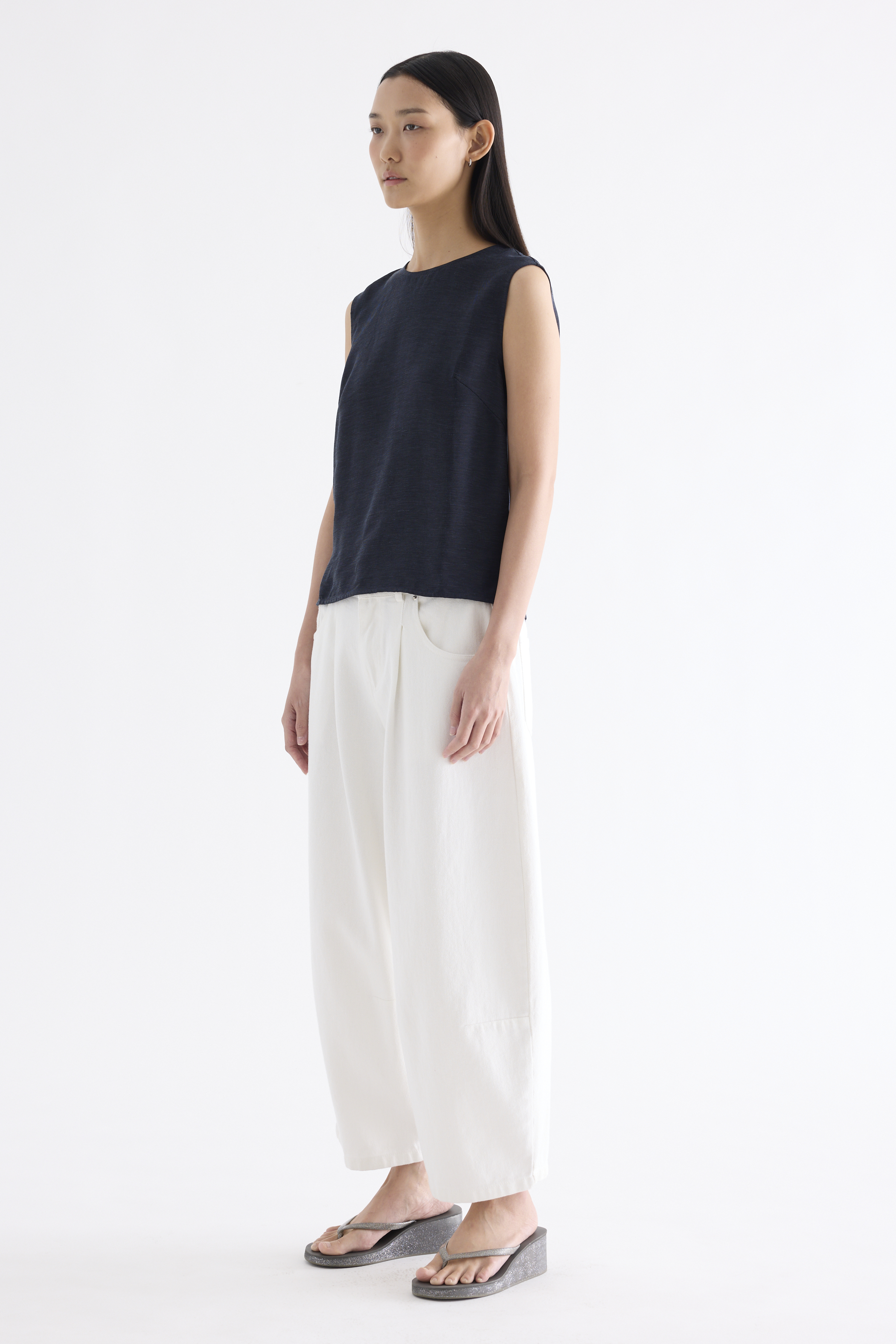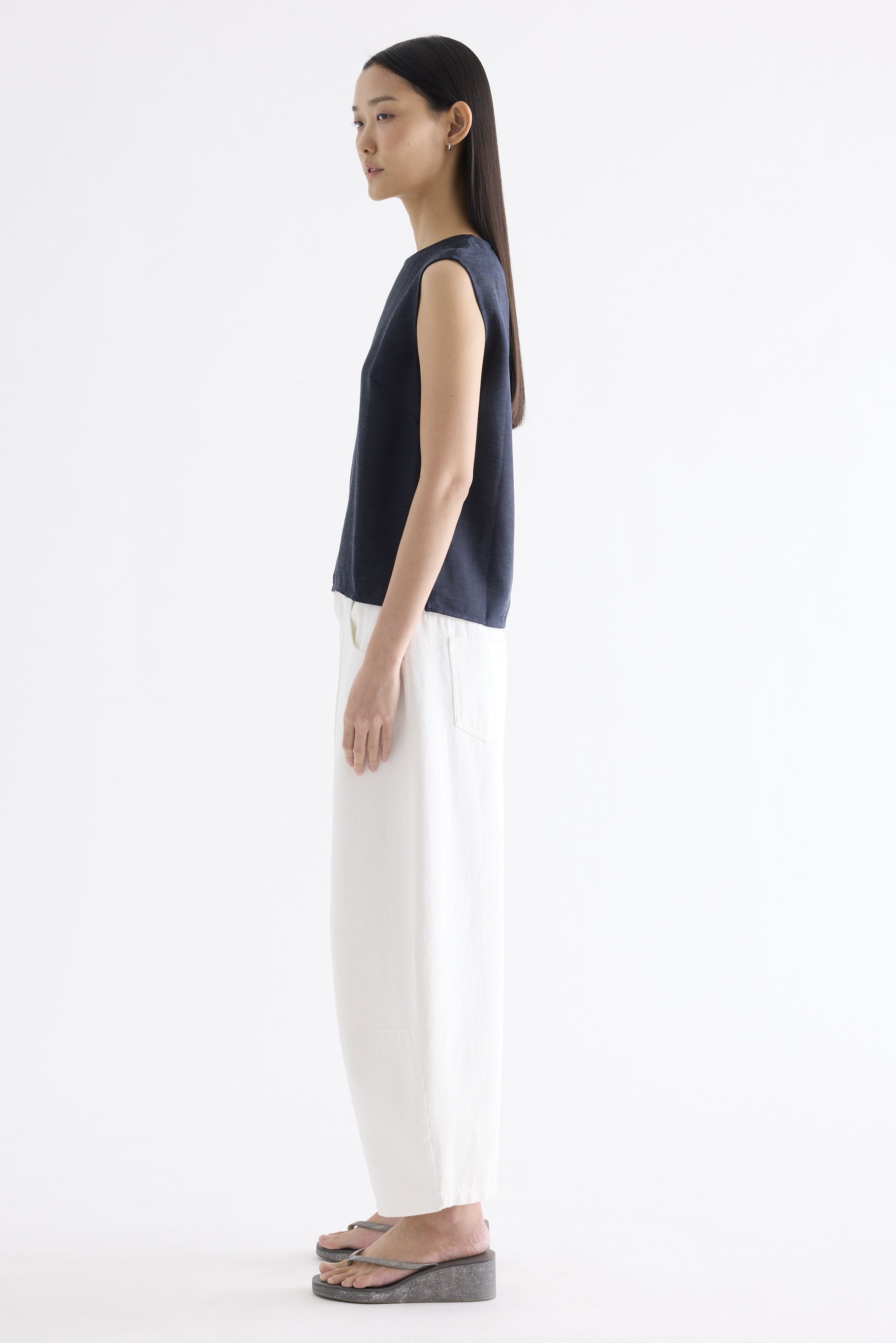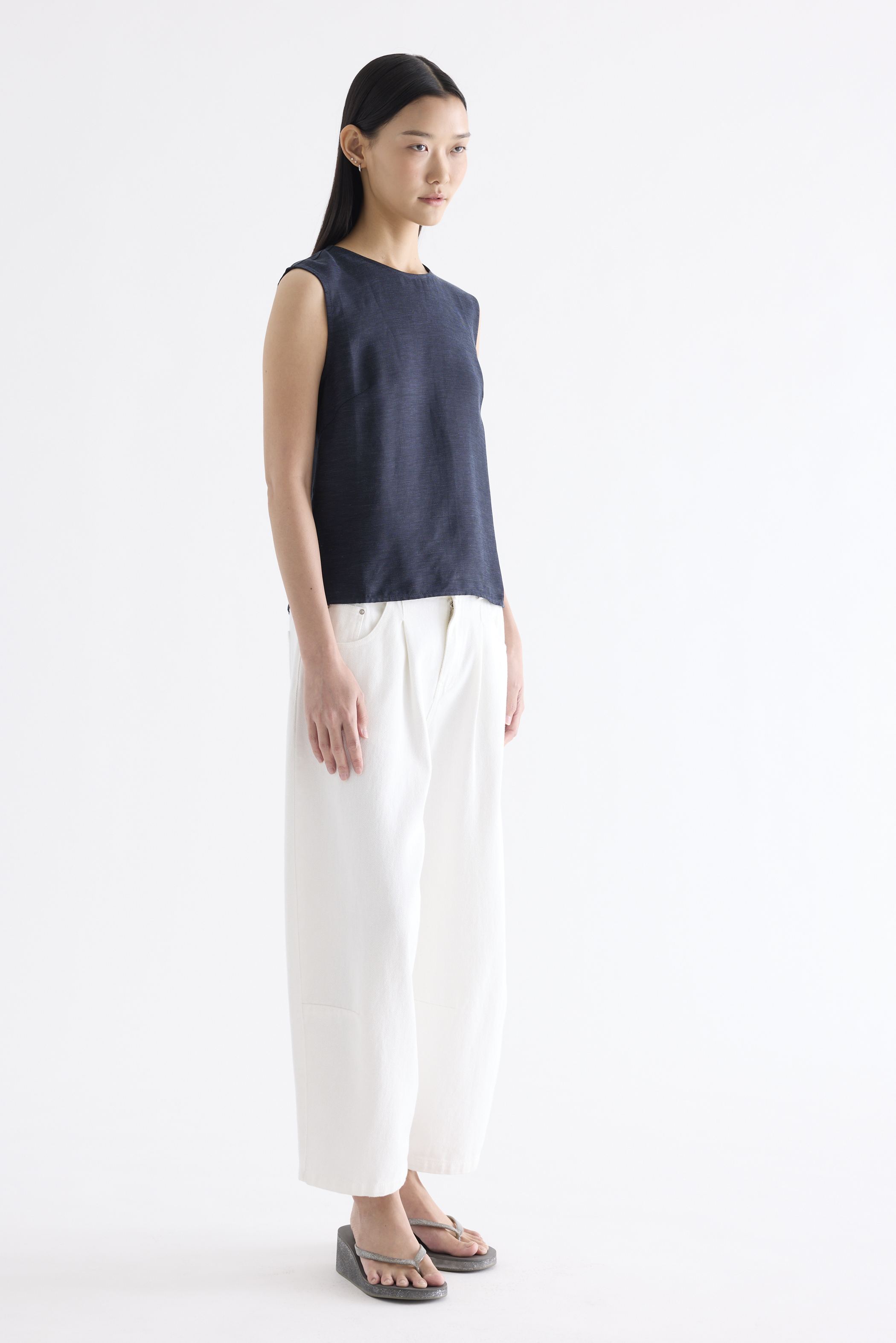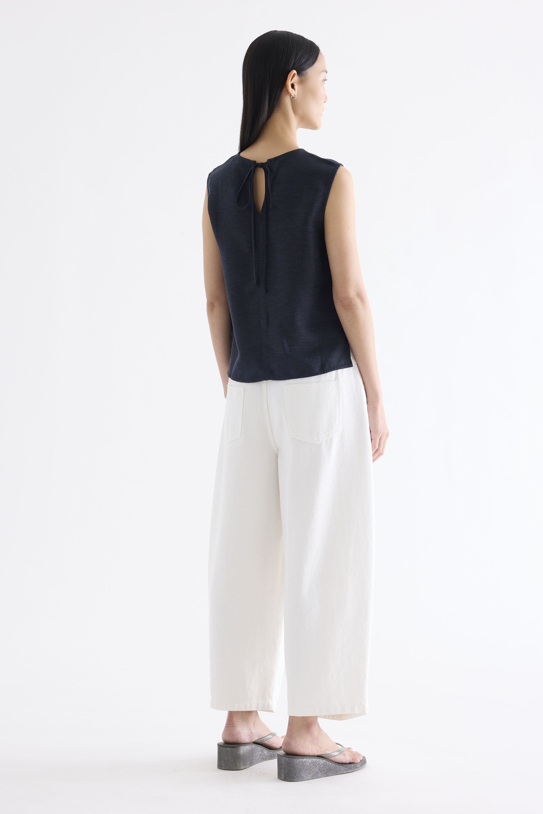 A mix-and-match favourite. Cut from light and softly tailored fabric, this sleeveless top features a round neckline, side splits and a back keyhole opening with a tie-strap closure. Worn in a relaxed fit.