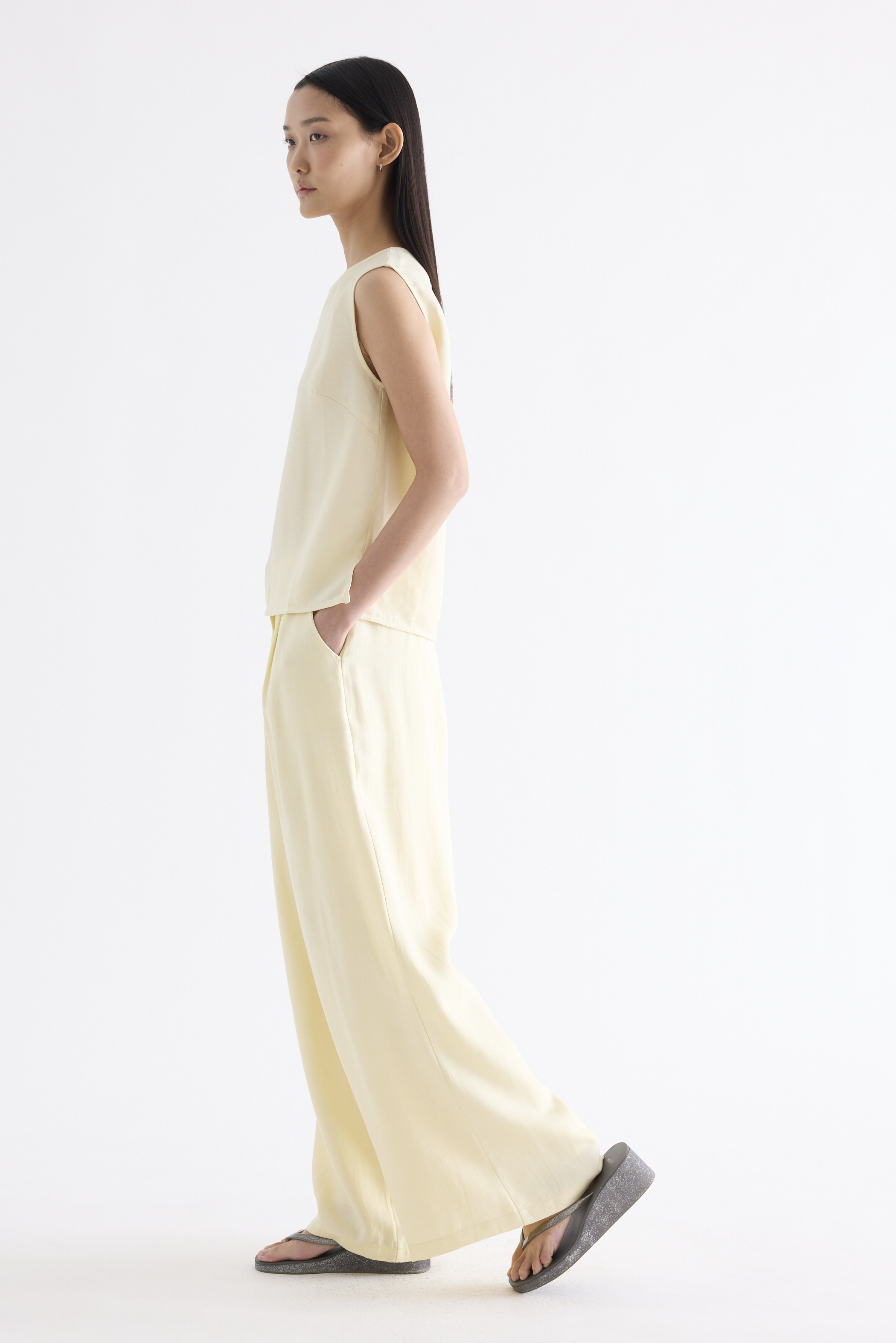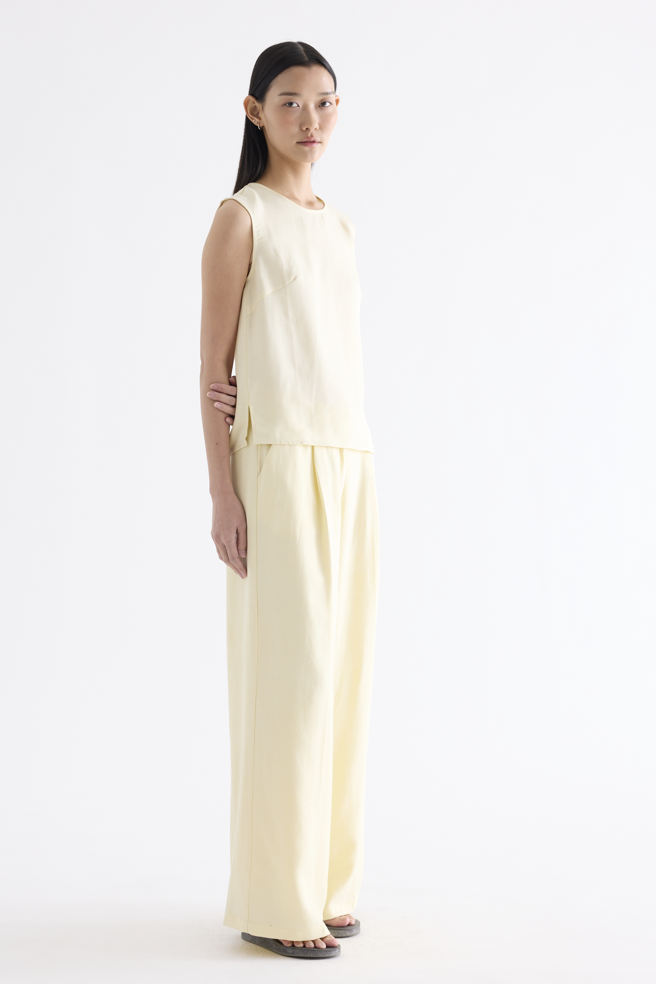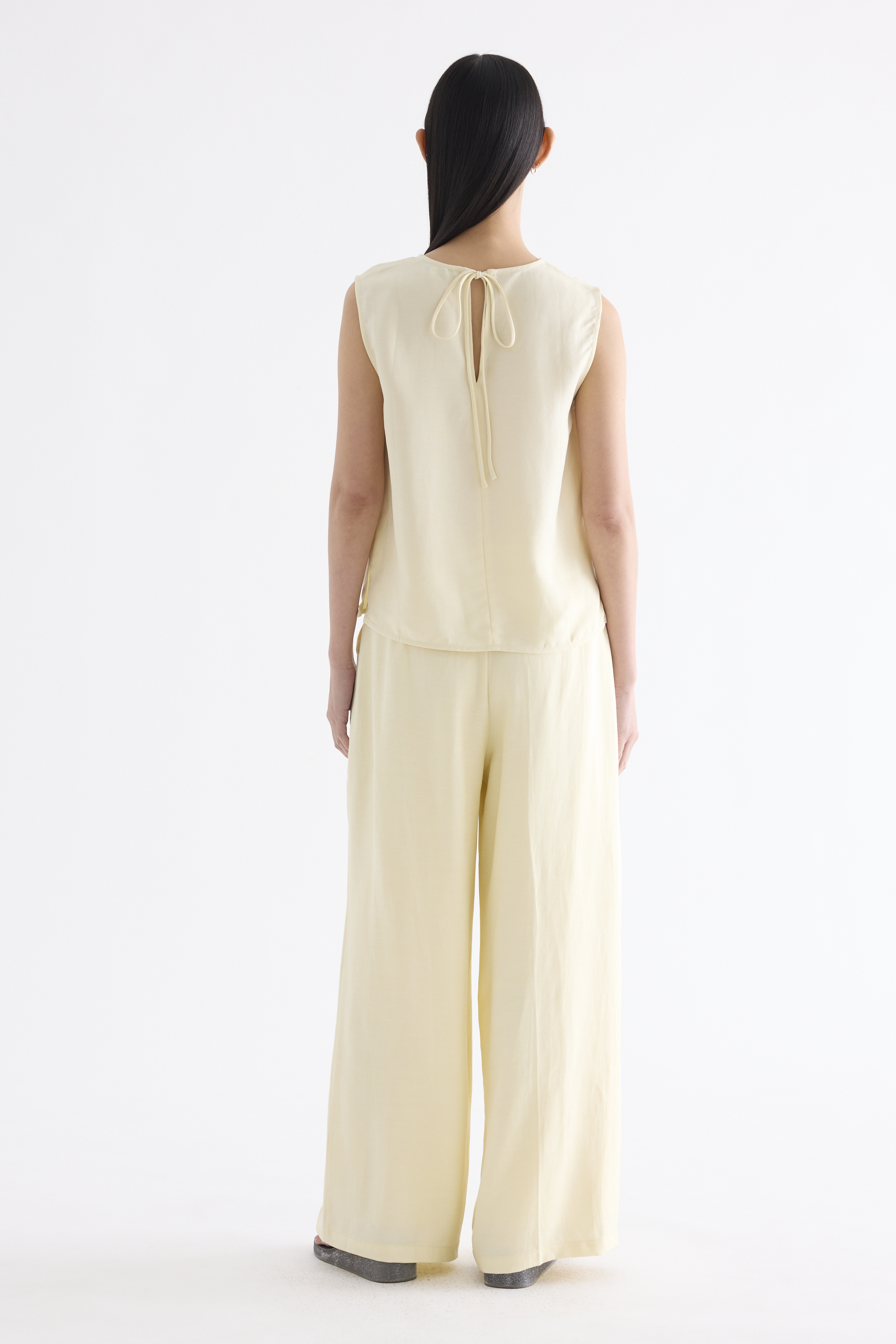 A mix-and-match favourite. Cut from light and softly tailored fabric, this sleeveless top features a round neckline, side splits and a back keyhole opening with a tie-strap closure. Worn in a relaxed fit.