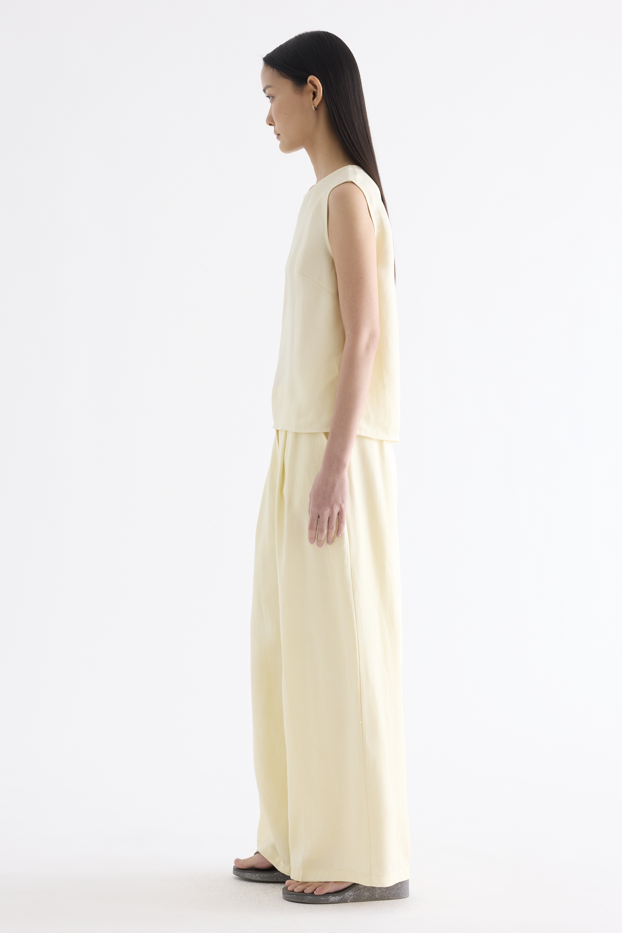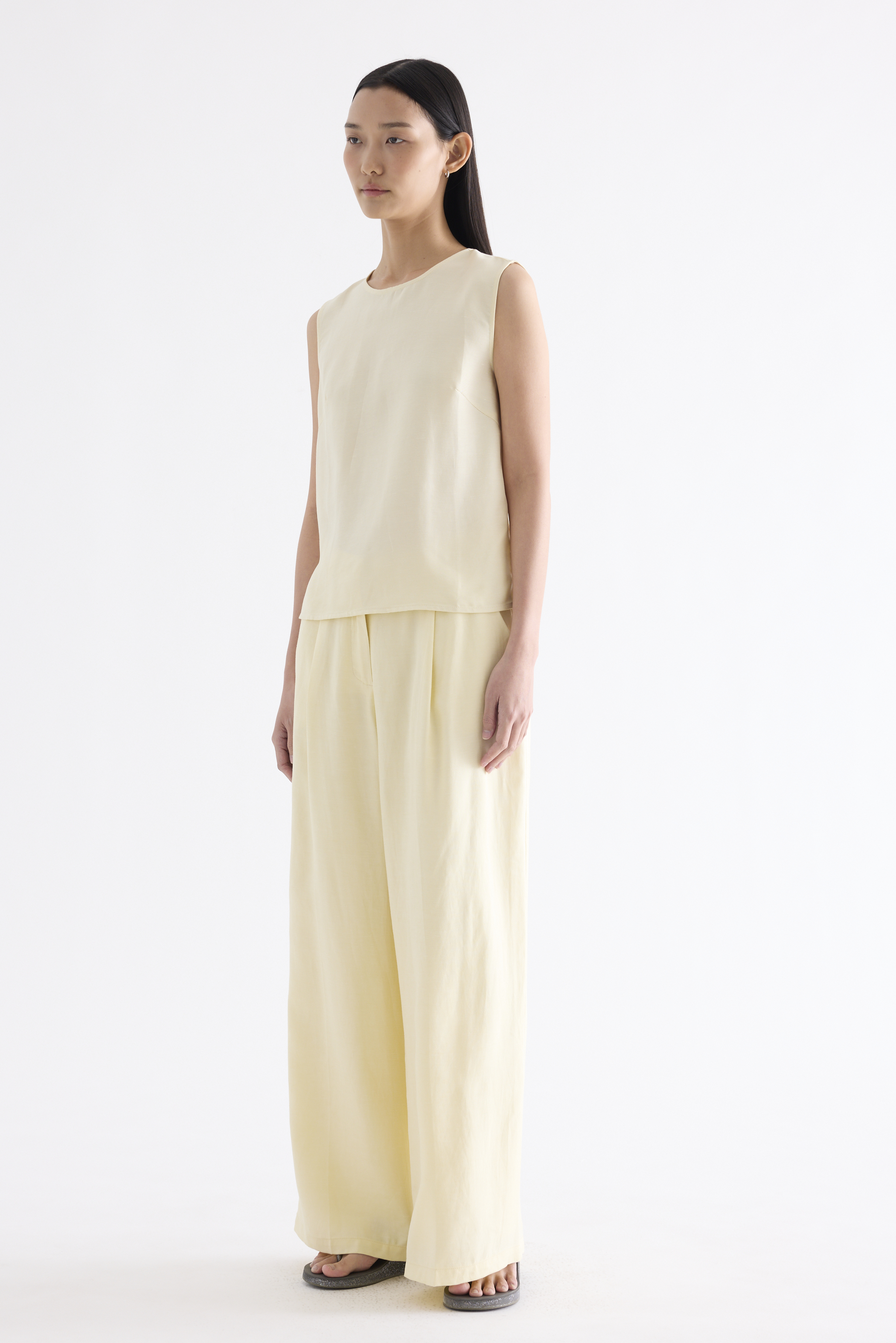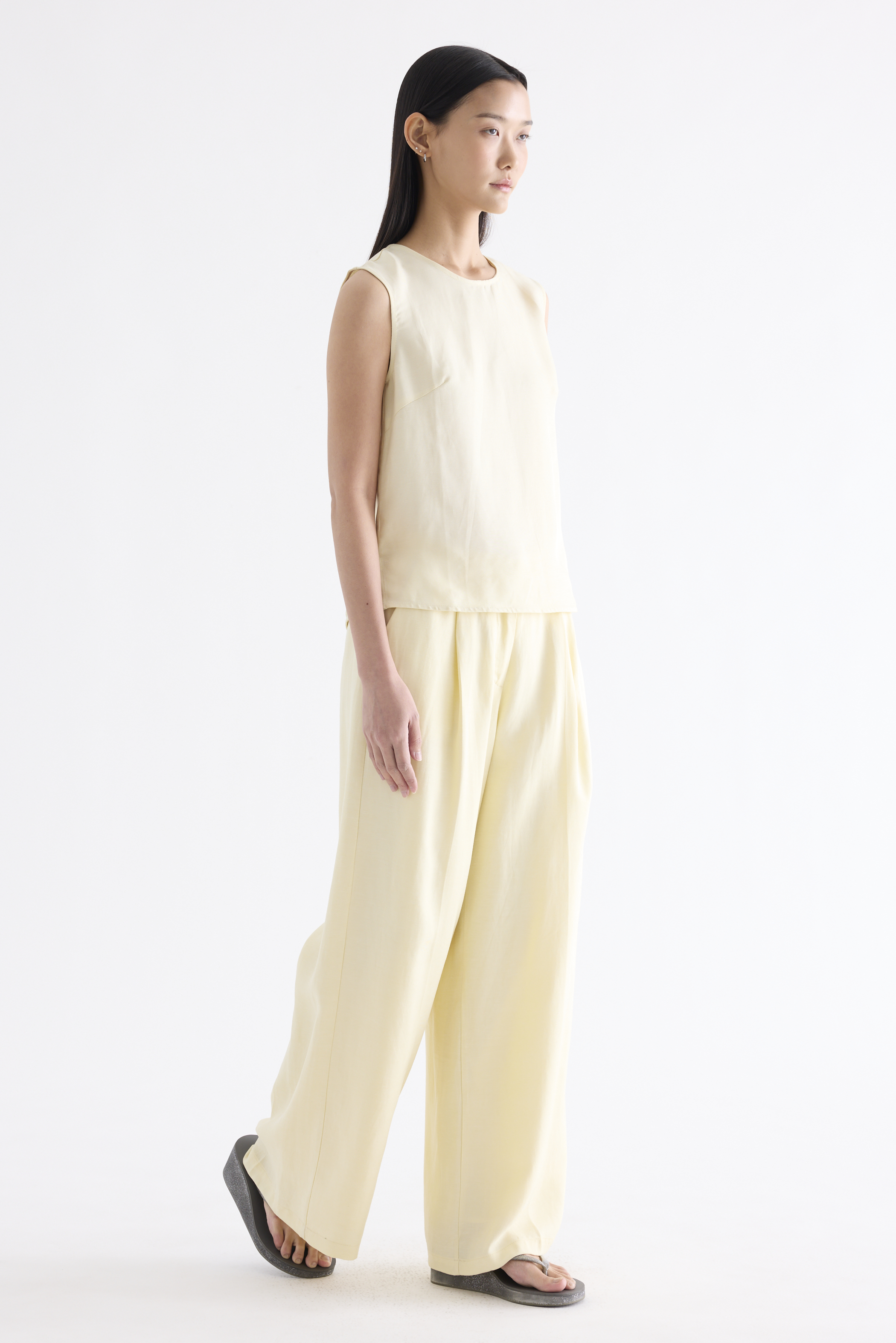 A mix-and-match favourite. Cut from light and softly tailored fabric, this sleeveless top features a round neckline, side splits and a back keyhole opening with a tie-strap closure. Worn in a relaxed fit.