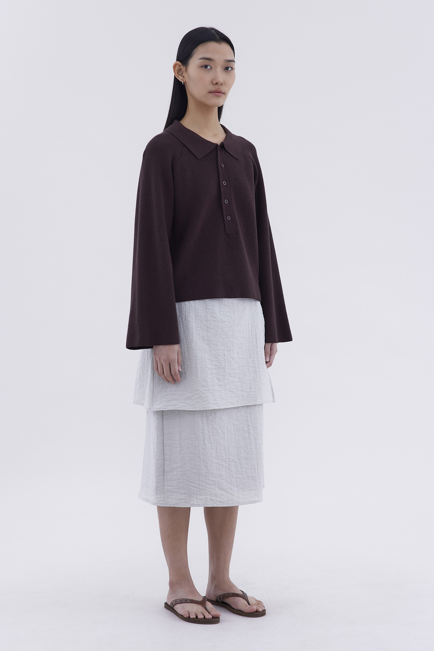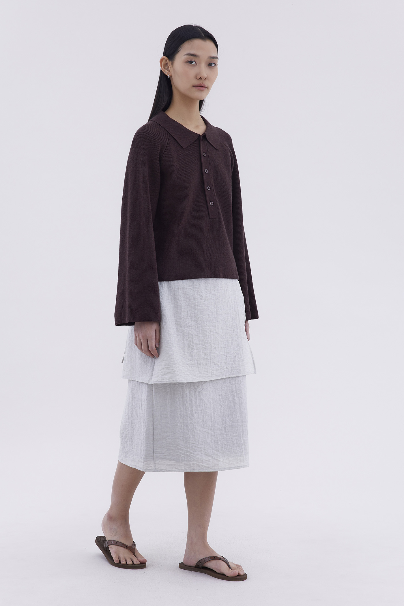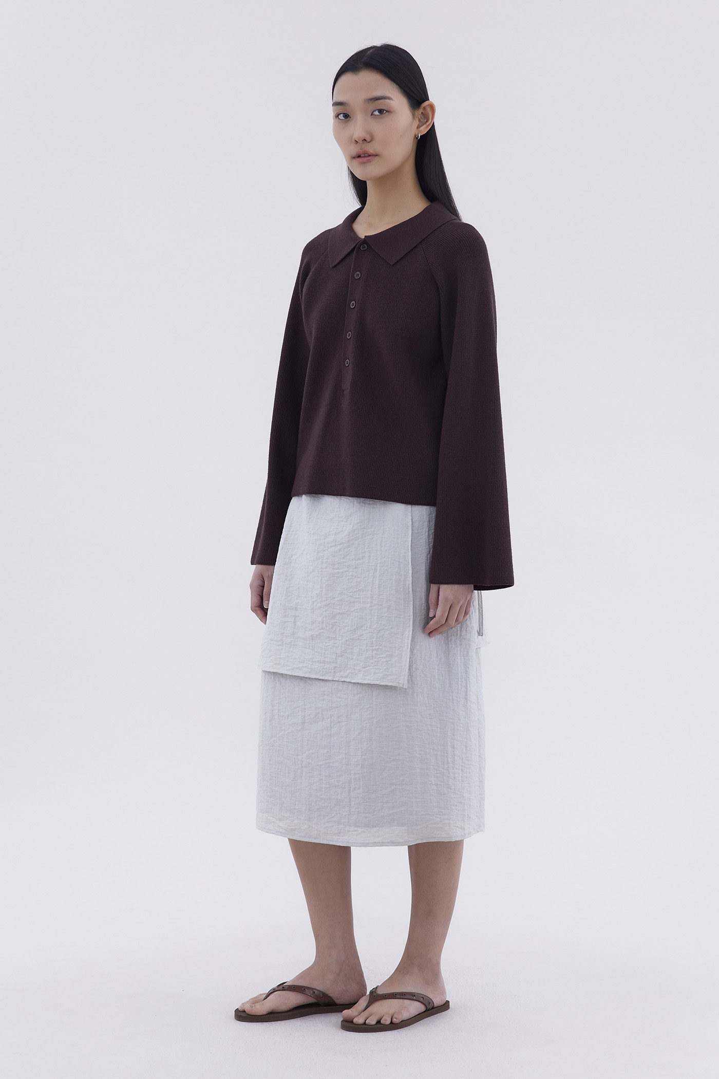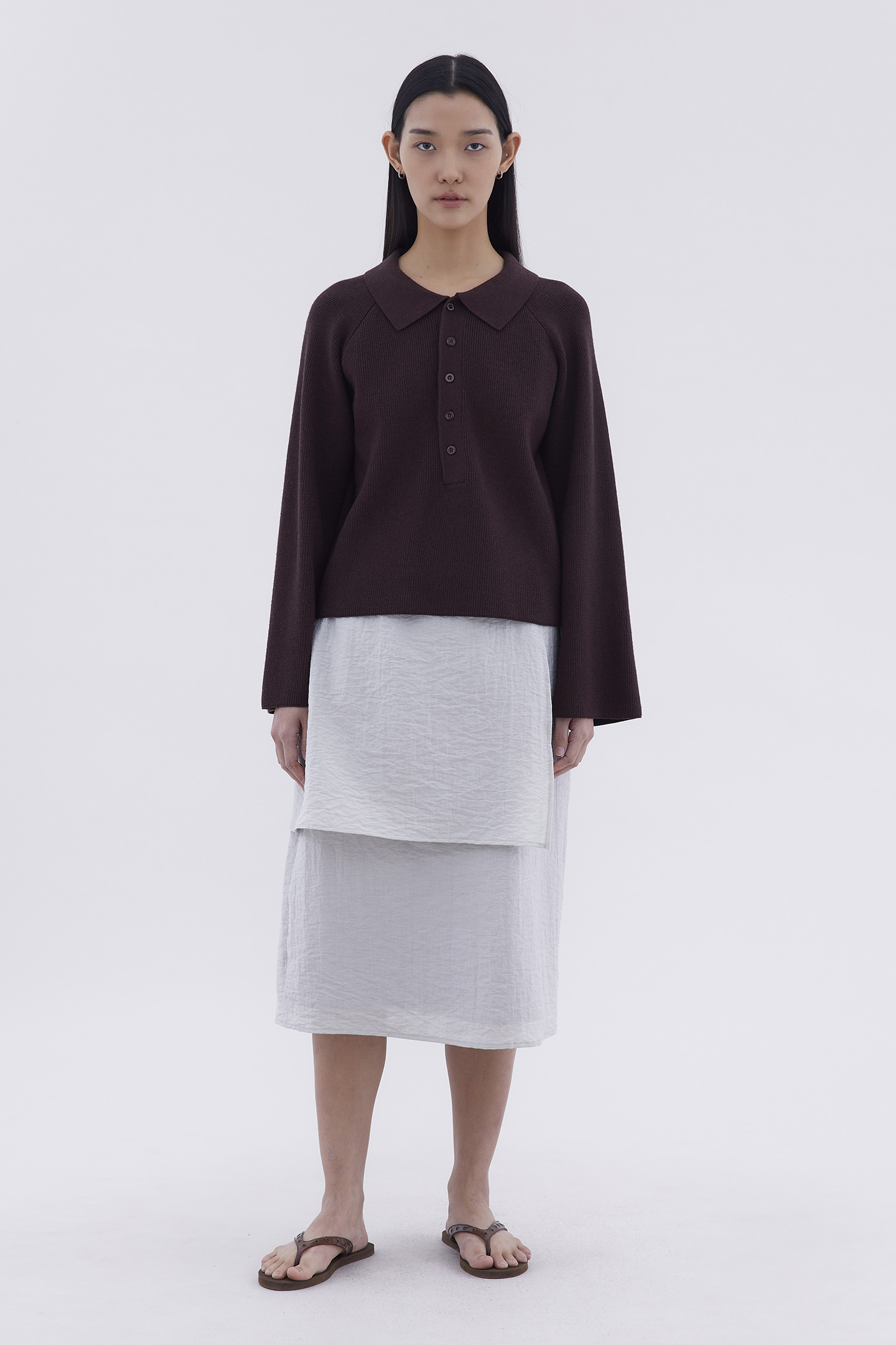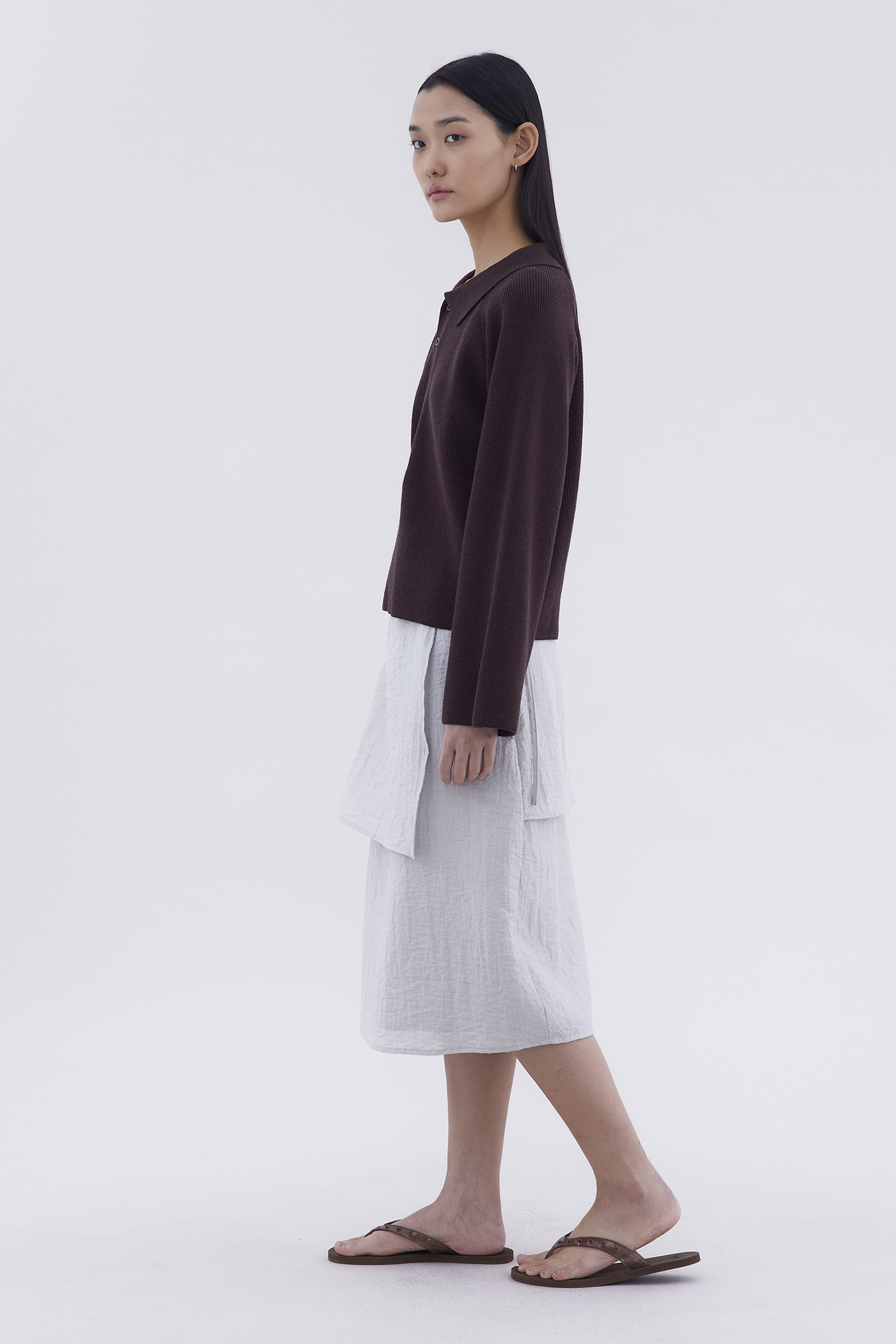 Bundle up. Made from soft and cosy knit, this sweater features a collared neckline and front buttons. Worn in an oversized fit.