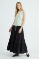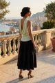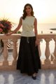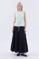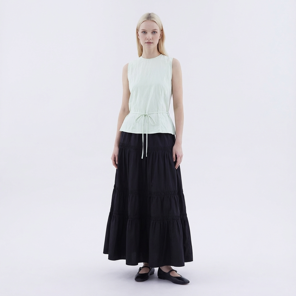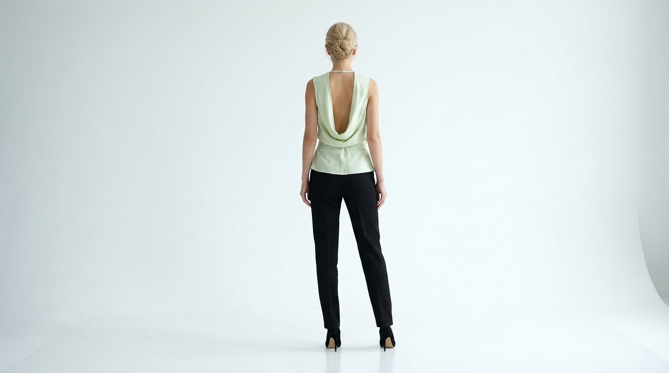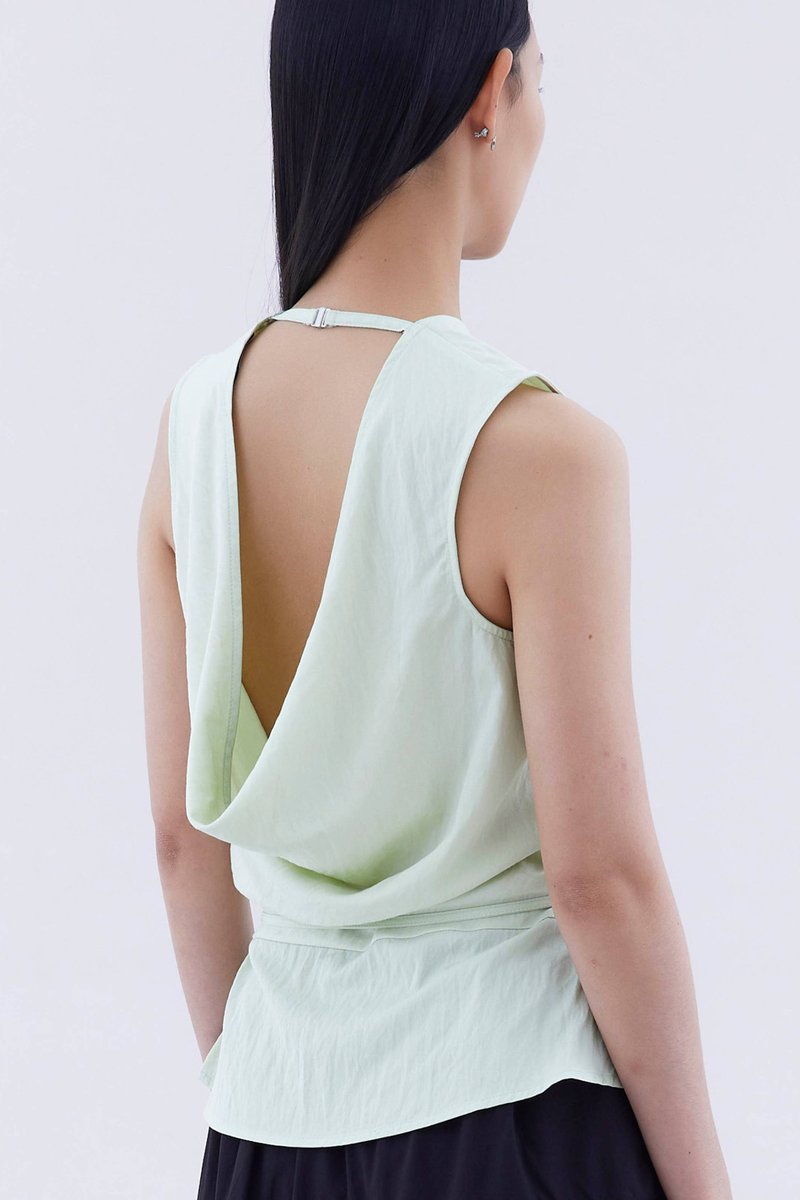 One top, two sides. Made from smooth and airy fabric, this sleeveless top features a round neckline, waist tie-strap, as well as a drapey back opening with a connecting strap. Worn in a relaxed silhouette.