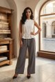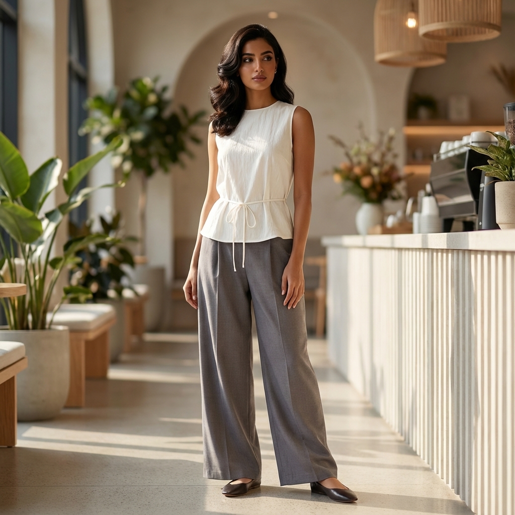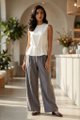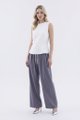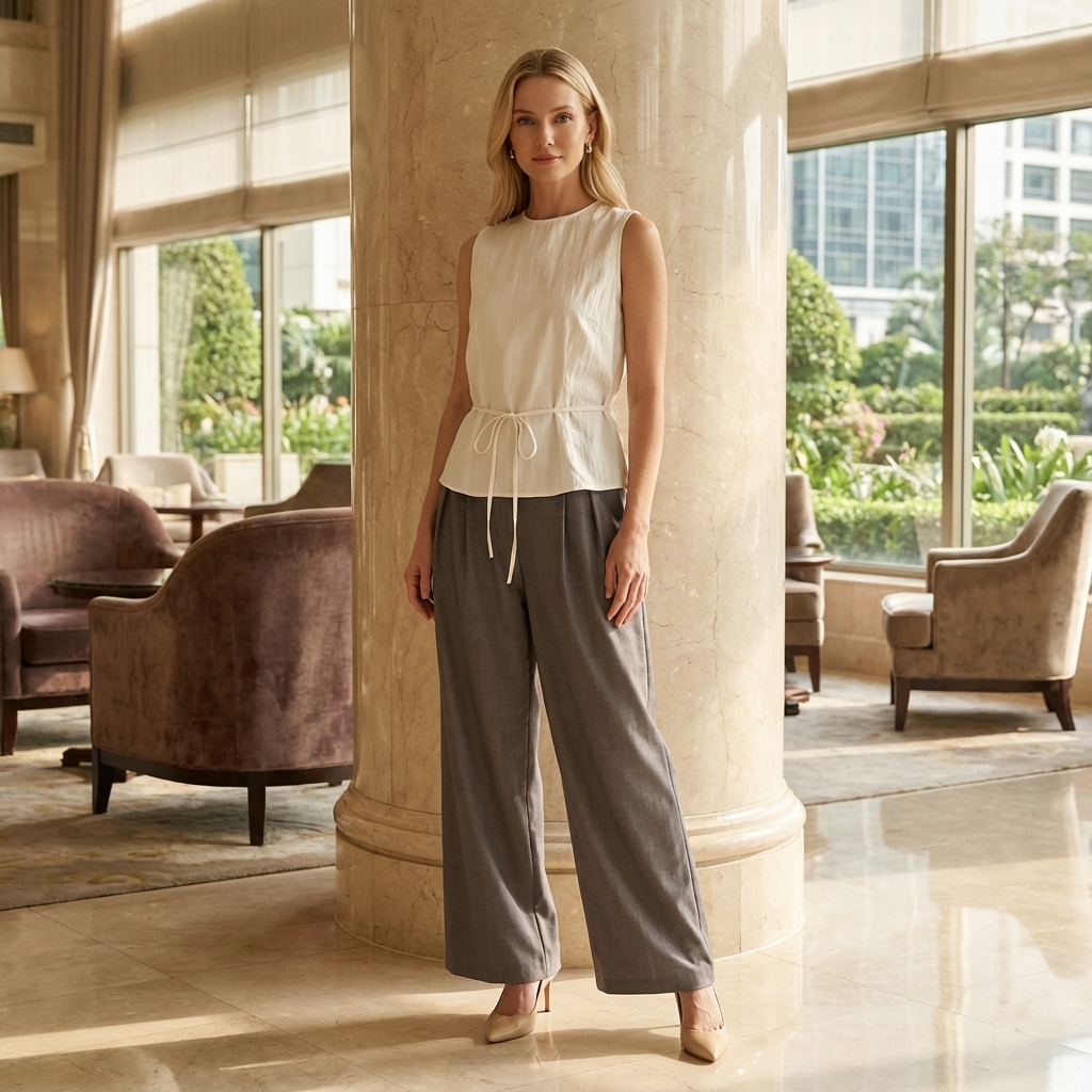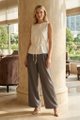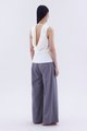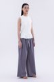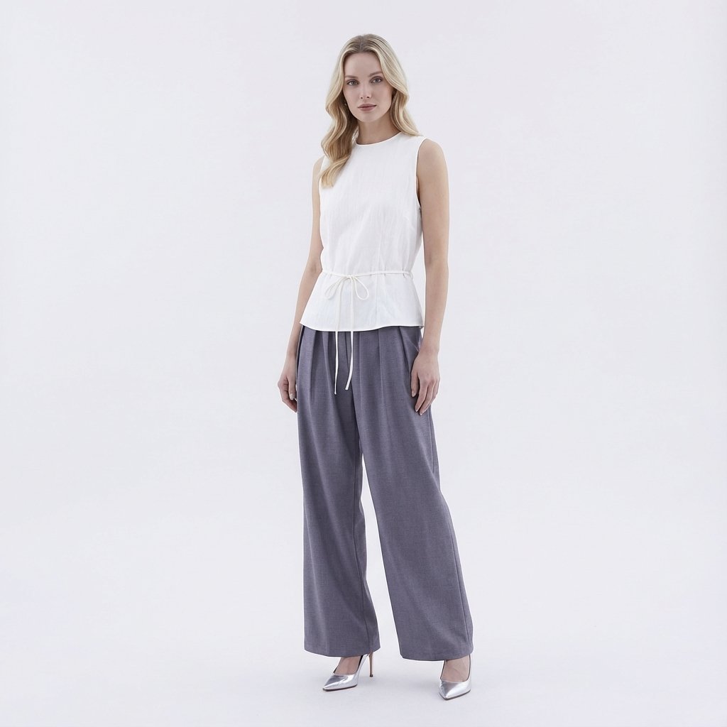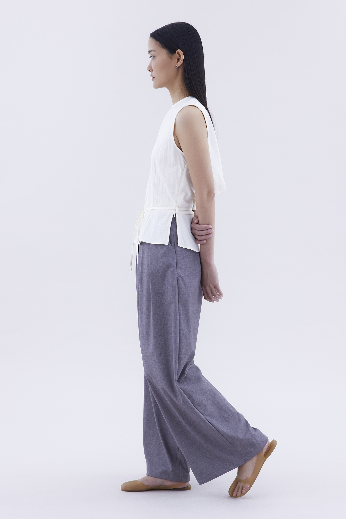 One top, two sides. Made from smooth and airy fabric, this sleeveless top features a round neckline, waist tie-strap, as well as a drapey back opening with a connecting strap. Worn in a relaxed silhouette.