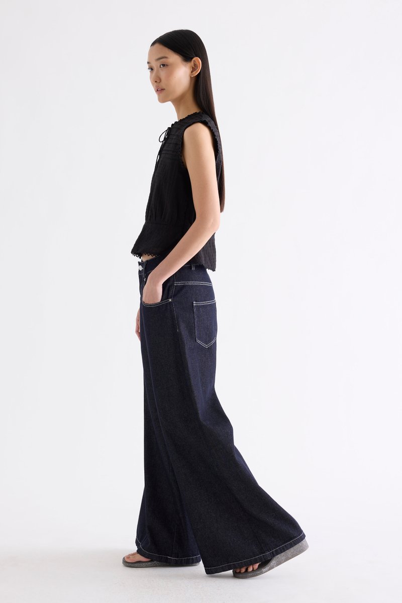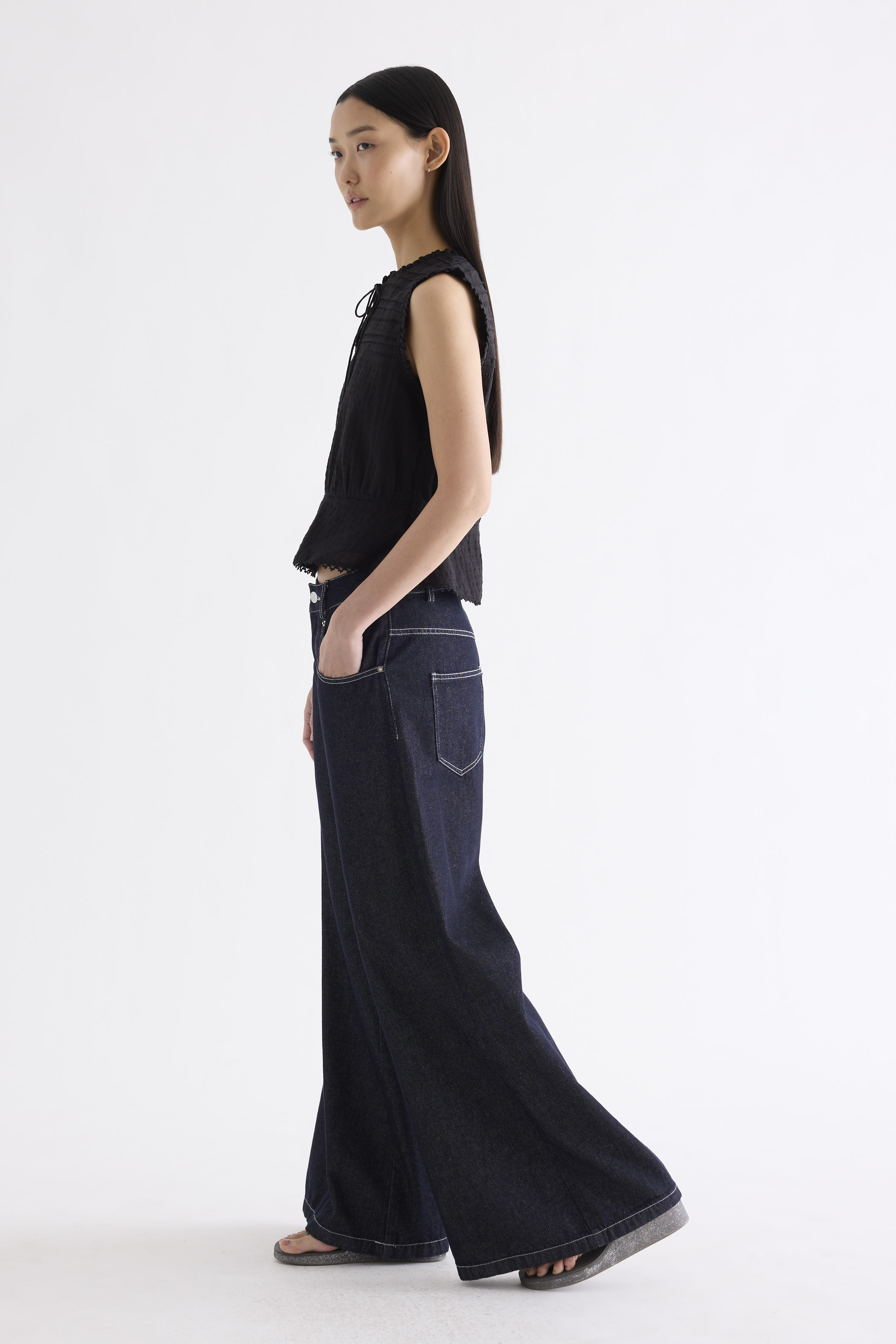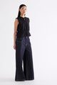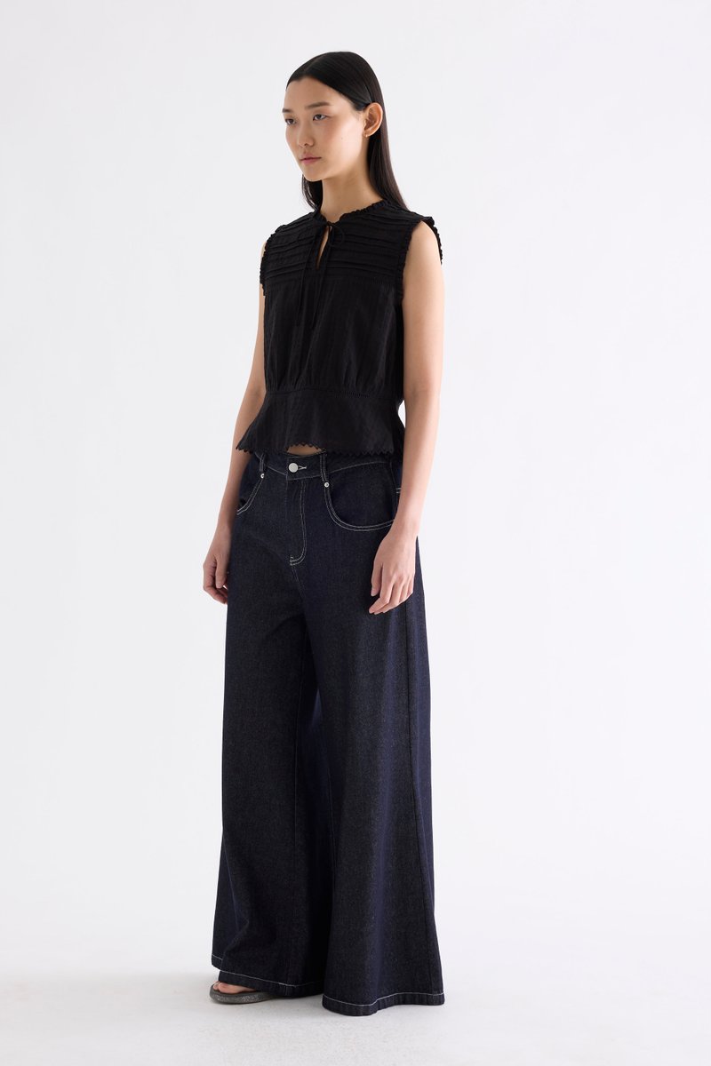 Warm-weather approved. Cut from airy and softly structured seersucker cotton, this top features a frill-trimmed neckline, front keyhole opening with tie-strap, pleat and lace detailing, as well as a lace-trimmed hem. Worn in a slim fit with a side zip closure.