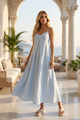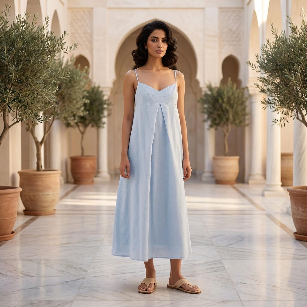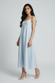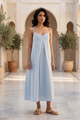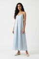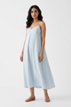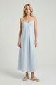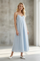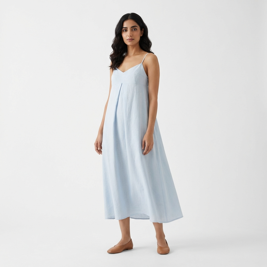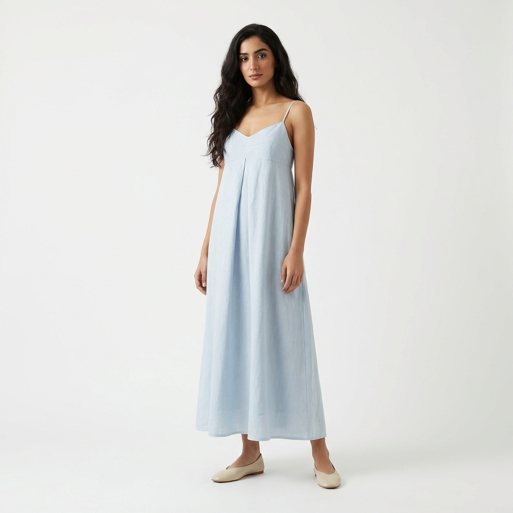 Warm-weather essential. Made from airy and gently tailored 100% linen, this sleeveless maxi dress features a dipped neckline, a front pleat, a panelled bust, slim adjustable shoulder straps, a partially elasticated back and a side zip closure. Worn in a slim fit.