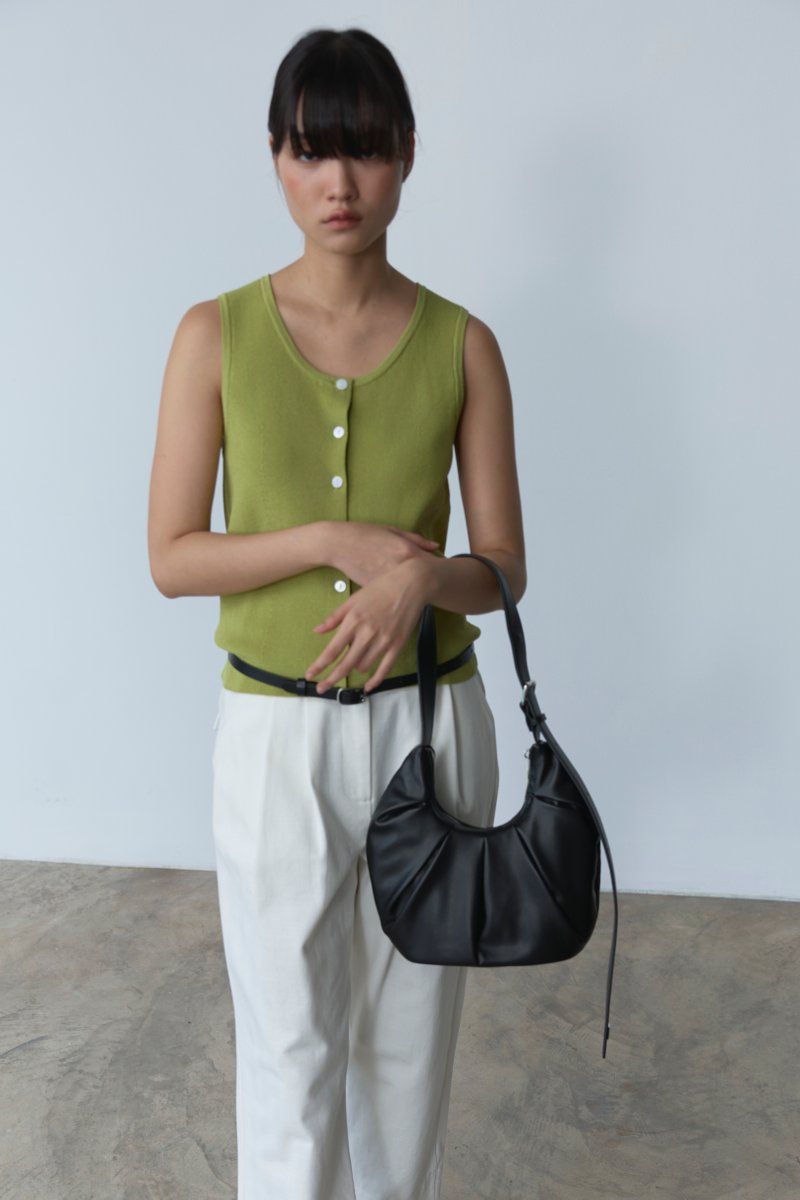 An essential shape. Made from smooth and fully lined vegan leather, our Park Bag shows off a compact, rounded hobo silhouette with statement pleats and enough space for everyday essentials, including larger items like an umbrella and water bottle. Also features a reinforced base, a top zip closure, an inner slot pocket with a brand label, as well as an adjustable buckle strap for toting on the shoulder or across the body.