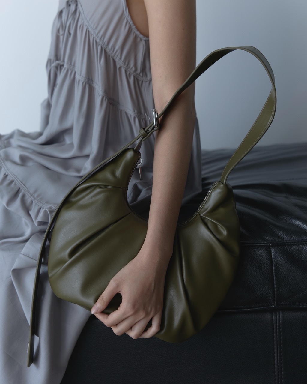 An essential shape. Made from smooth and fully lined vegan leather, our Park Bag shows off a compact, rounded hobo silhouette with statement pleats and enough space for everyday essentials, including larger items like an umbrella and water bottle. Also features a reinforced base, a top zip closure, an inner slot pocket with a brand label, as well as an adjustable buckle strap for toting on the shoulder or across the body.