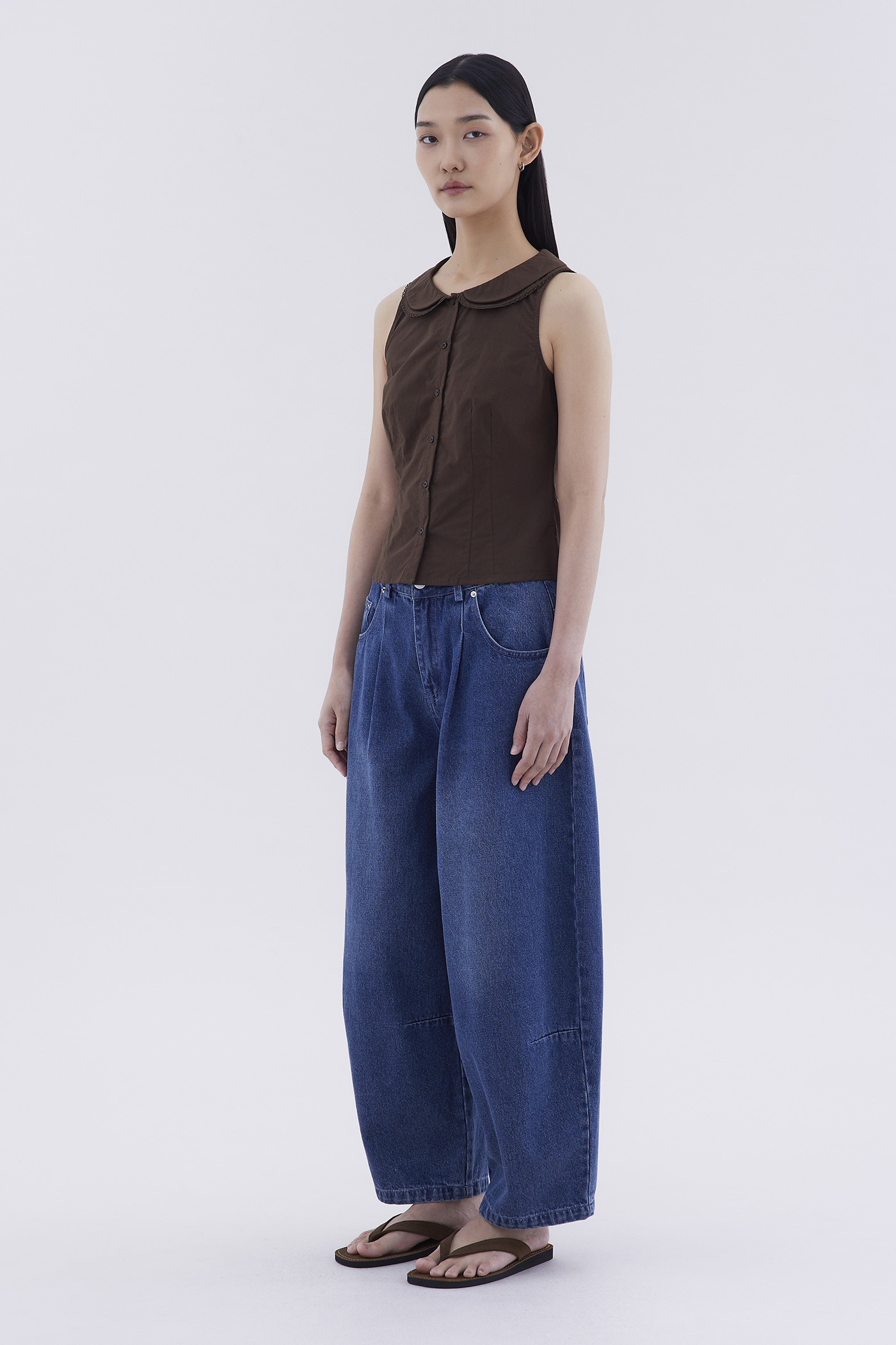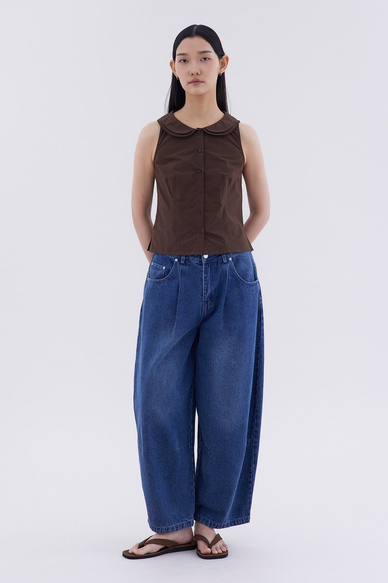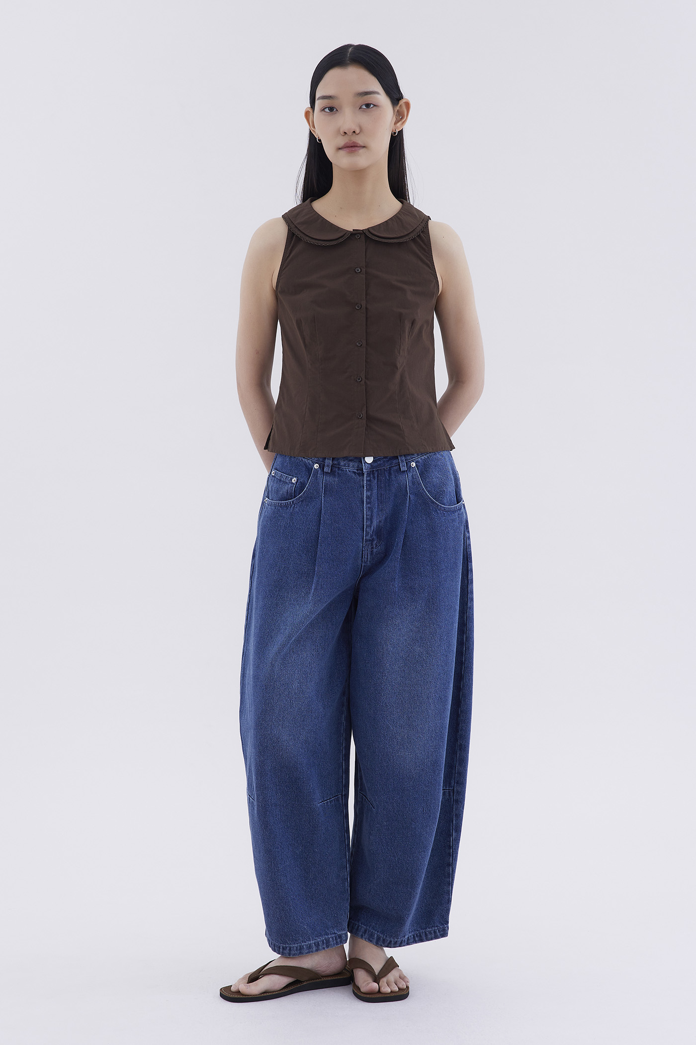 Playful touches. Made from crisp and softly structured cotton, this sleeveless shirt features layered, lace-trimmed collars, a round neckline, panelled construction and button-down front. Worn in a slim fit.